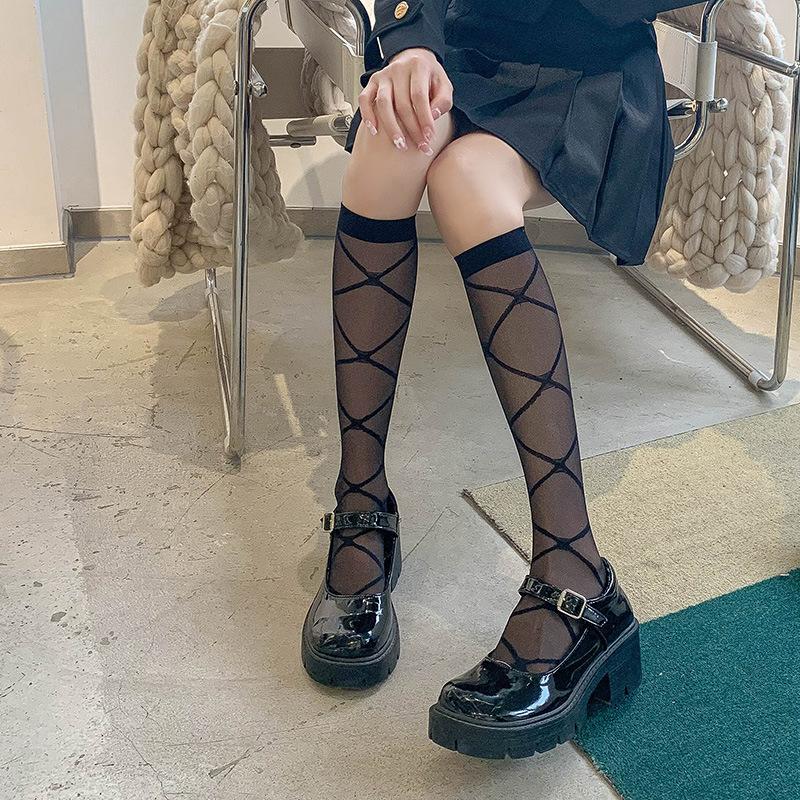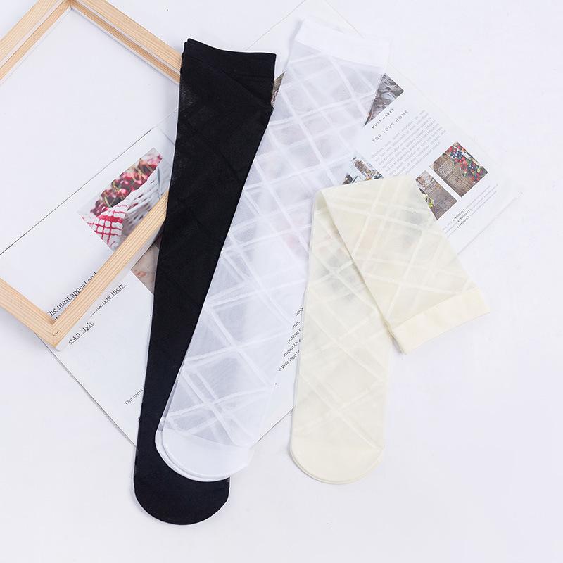 Medias de pantorrilla para mujer, finas, transparentes, con diamantes, de moda, populares en Internet, a cuadros, blancas, largas, estilo japonés, para estudiantes, medias altas.