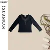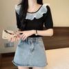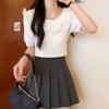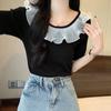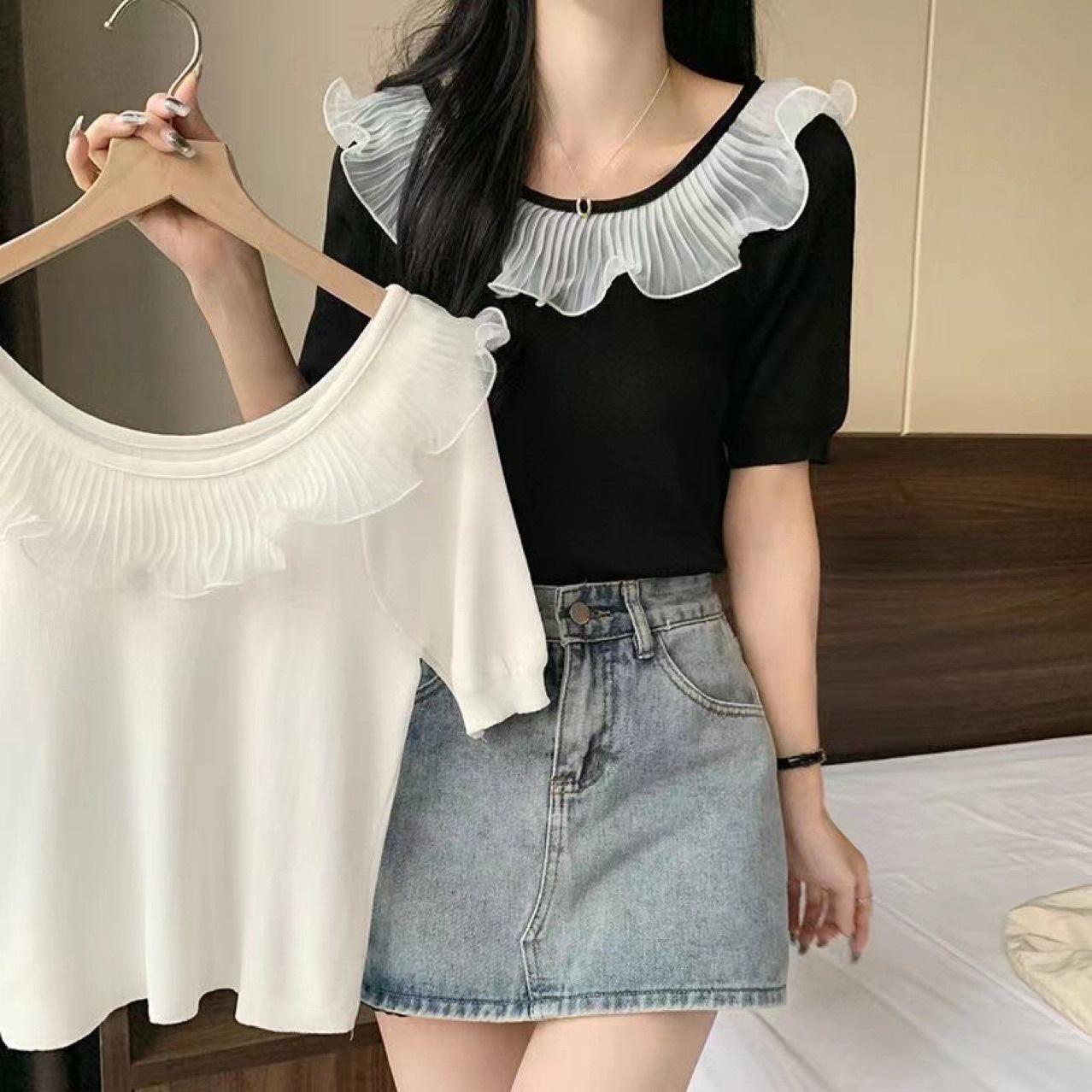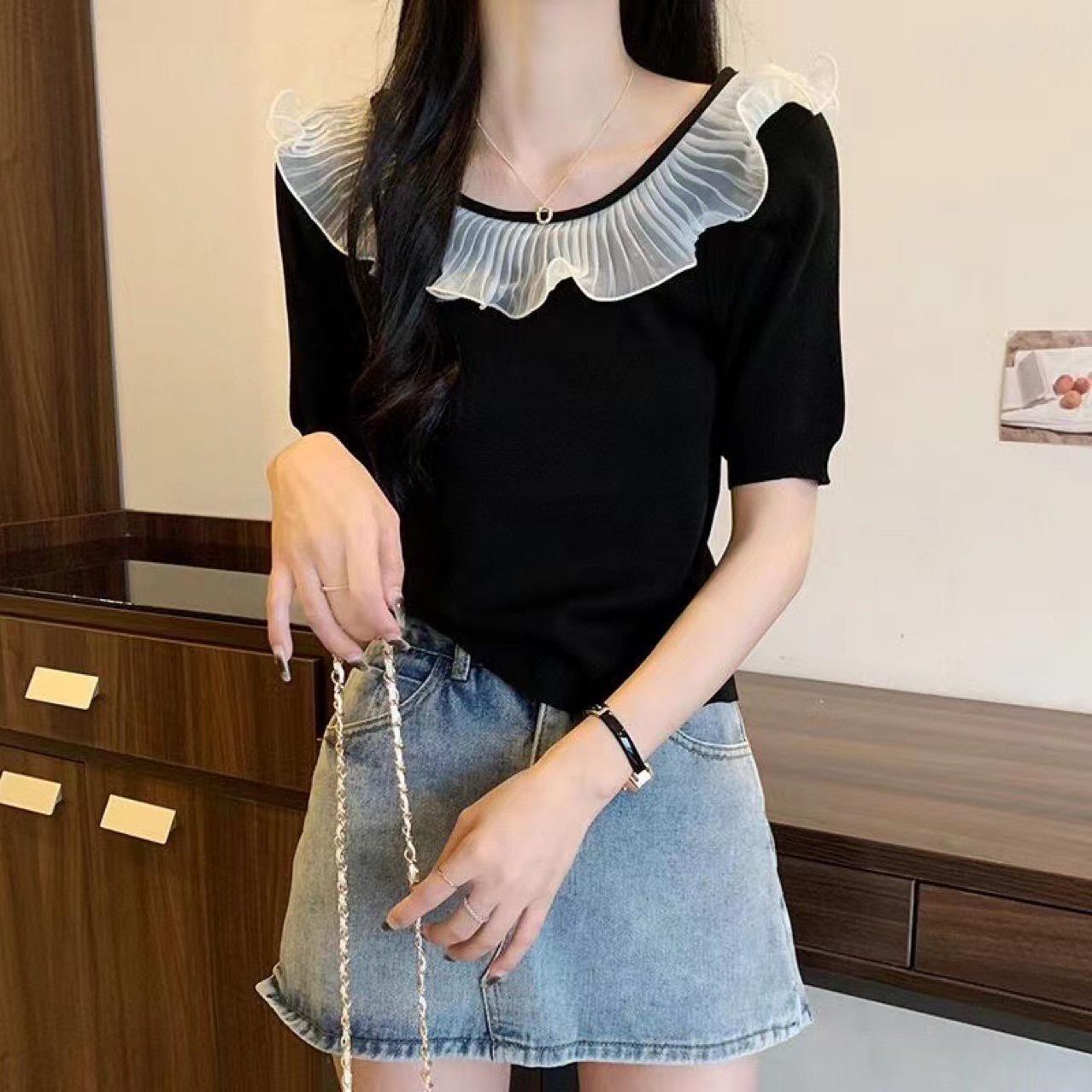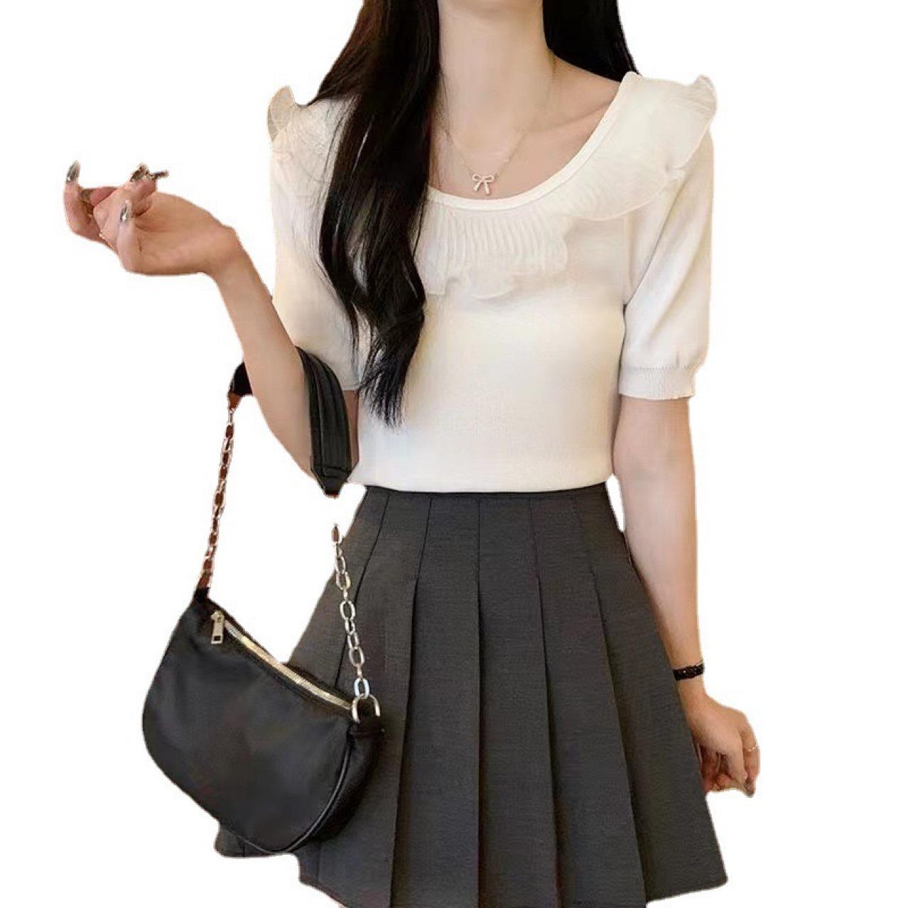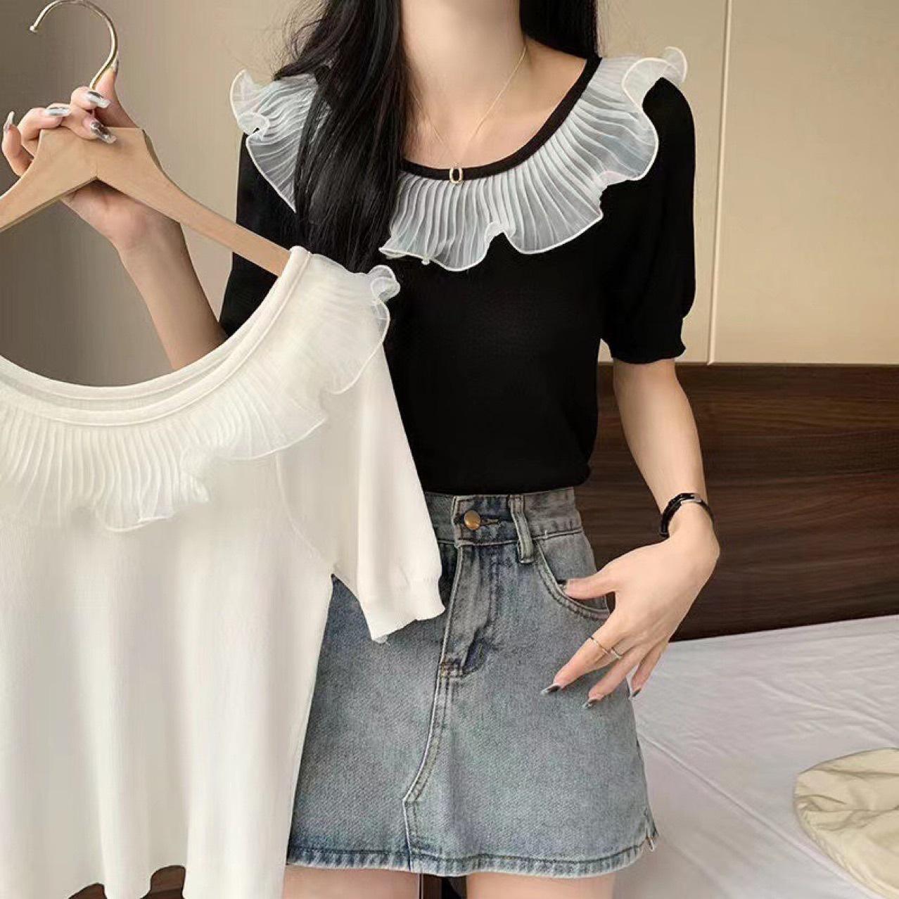 Suéter con volantes y costuras para mujer, nuevo diseño de verano, estilo nicho, adelgazante, versátil, top corto, moda femenina