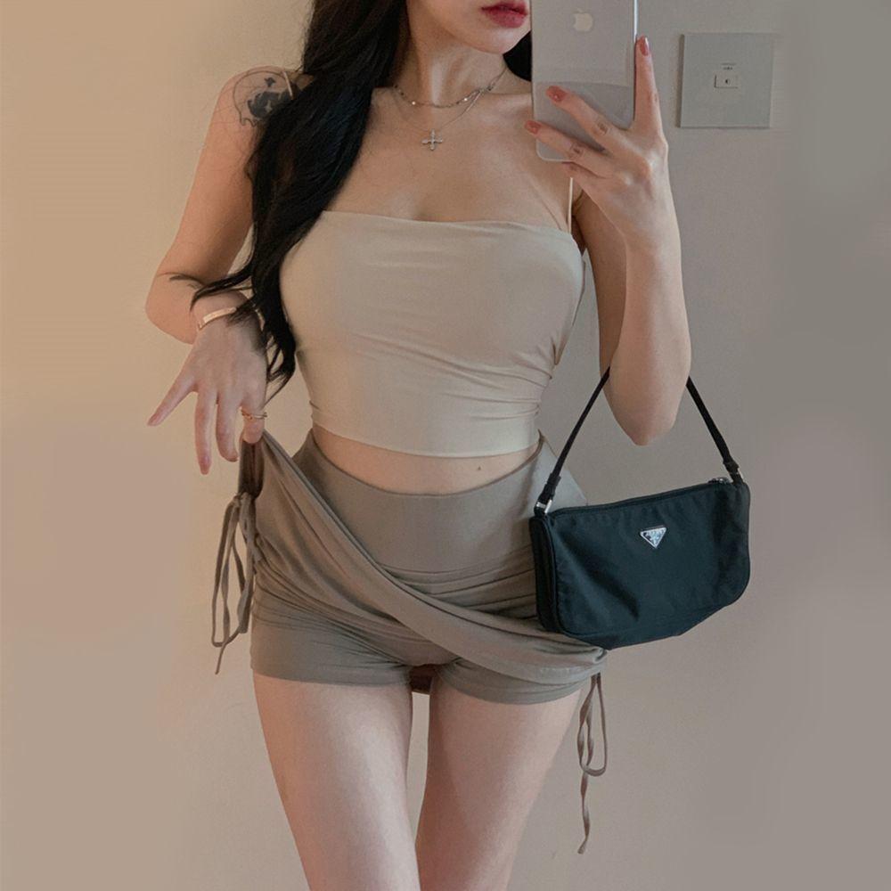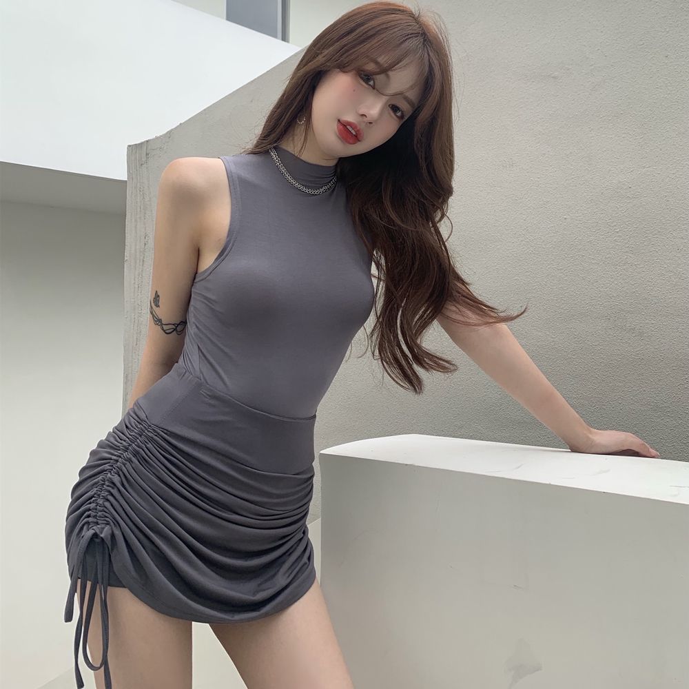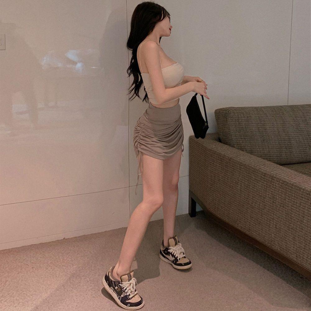 Falda Nueva 2025 Cubre Caderas con Cordón Cintura Alta Plisada Línea A Falda Corta