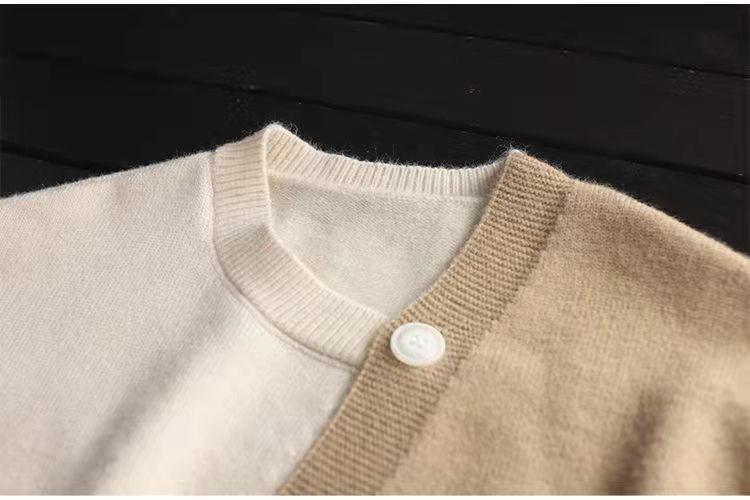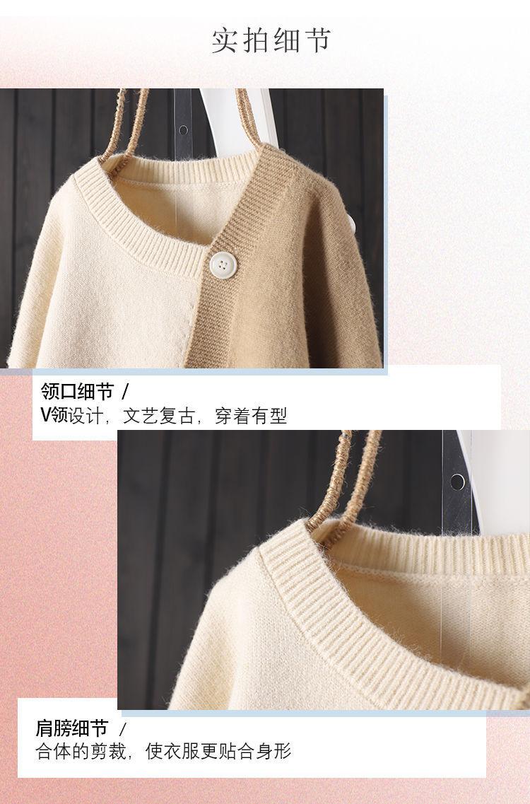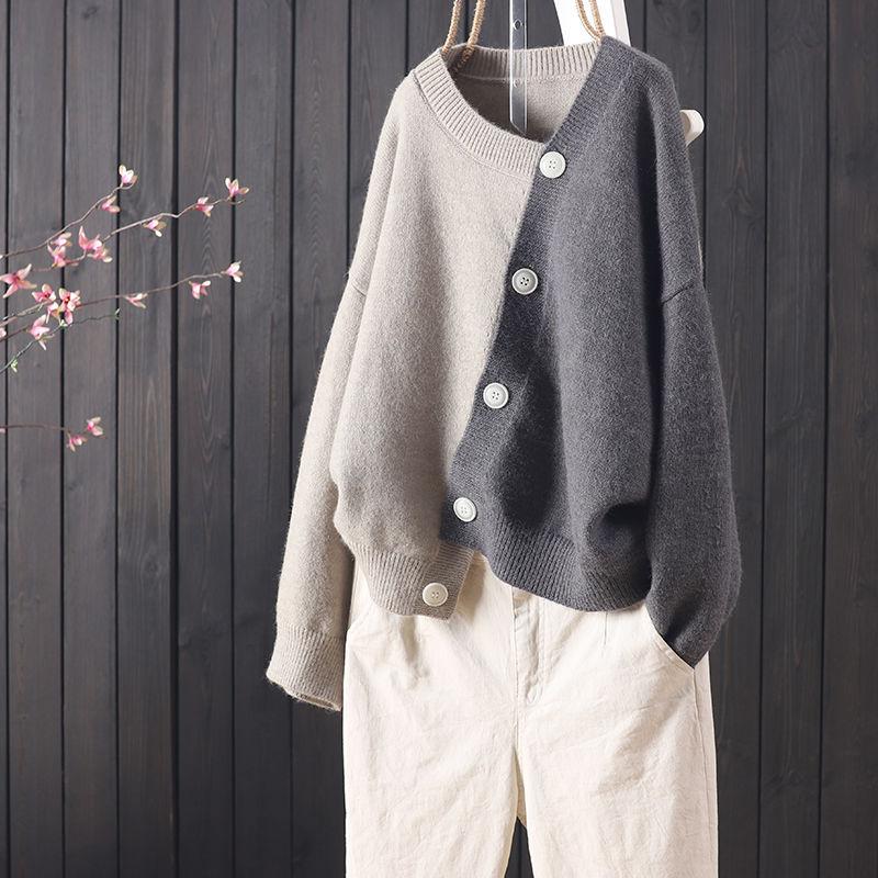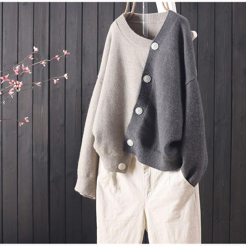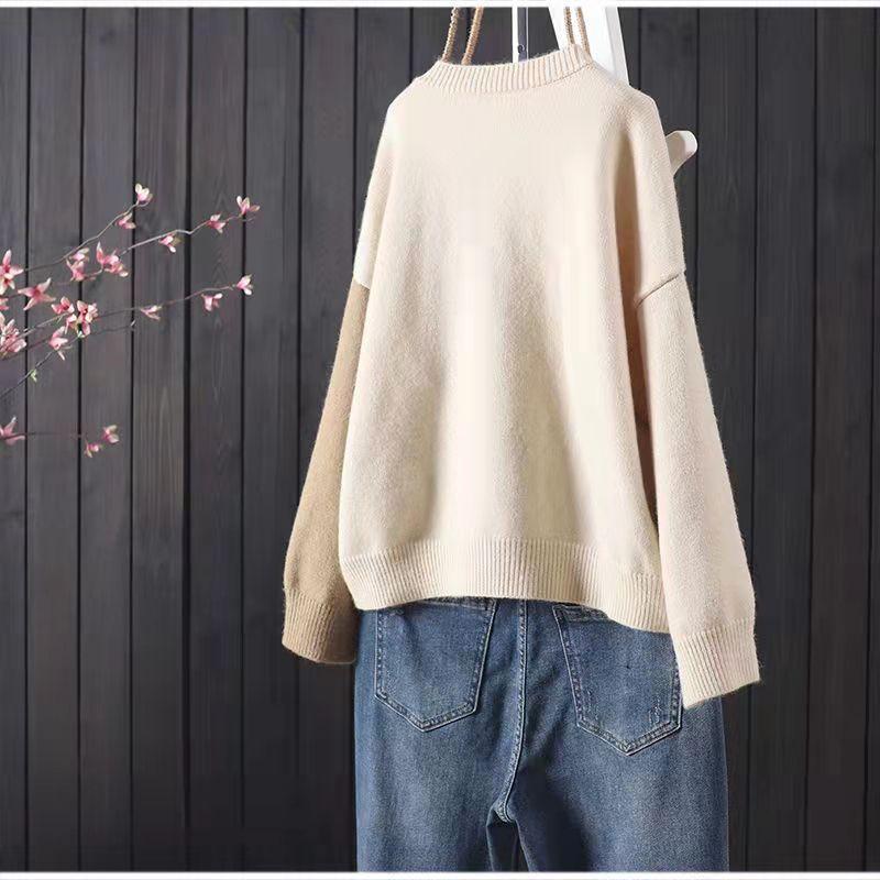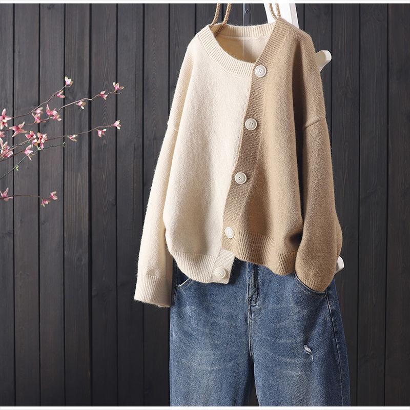 Suéter de punto de comercio exterior de exportación para mujer, holgado, combinable, informal, con contraste de colores irregulares, estilo extranjero, primavera y otoño