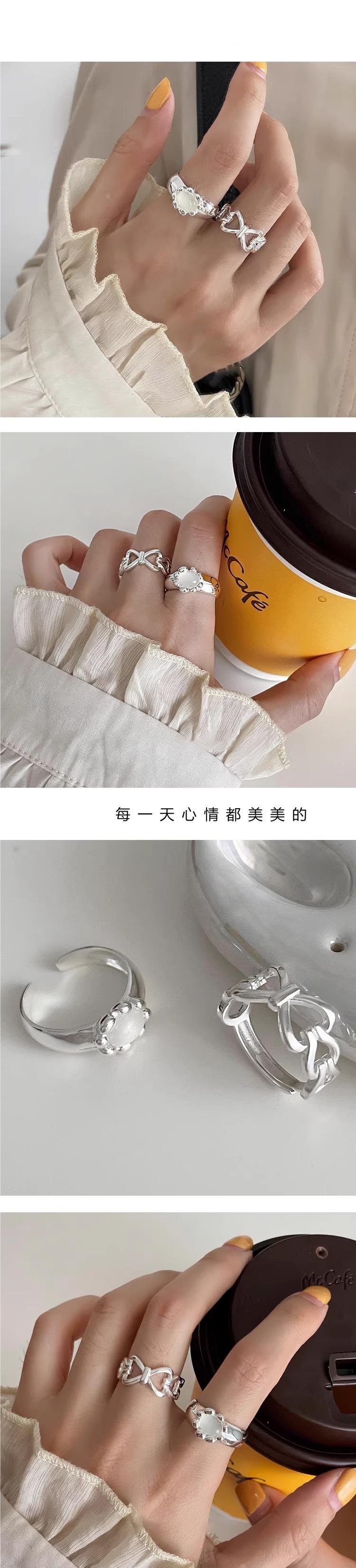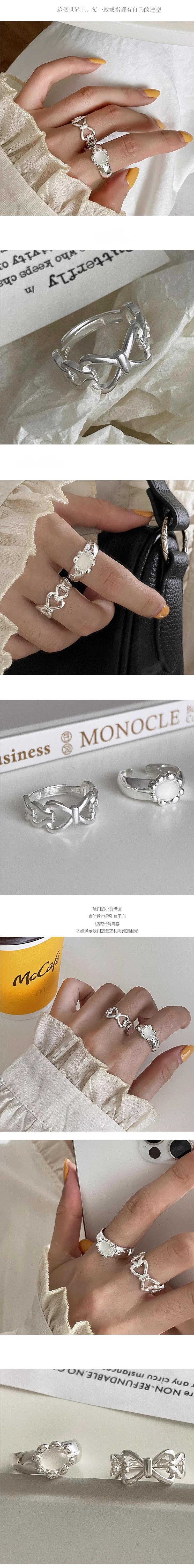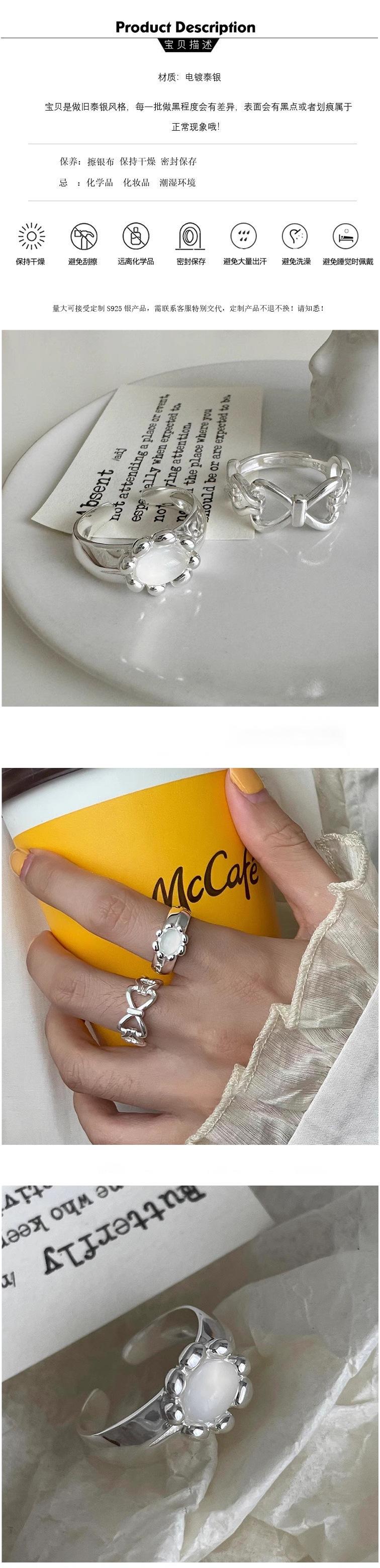 Anillo de Lazo Hueco para Mujer, Dulce, Genial, a la Moda y Exquisito Circonio Plateado en Plata S925 Anillo Abierto Estilo Ins Anillo para el Dedo Índice