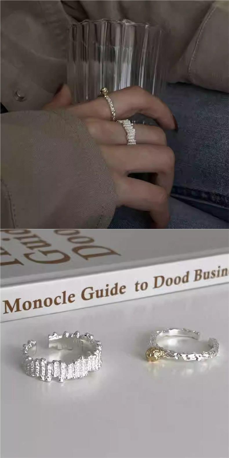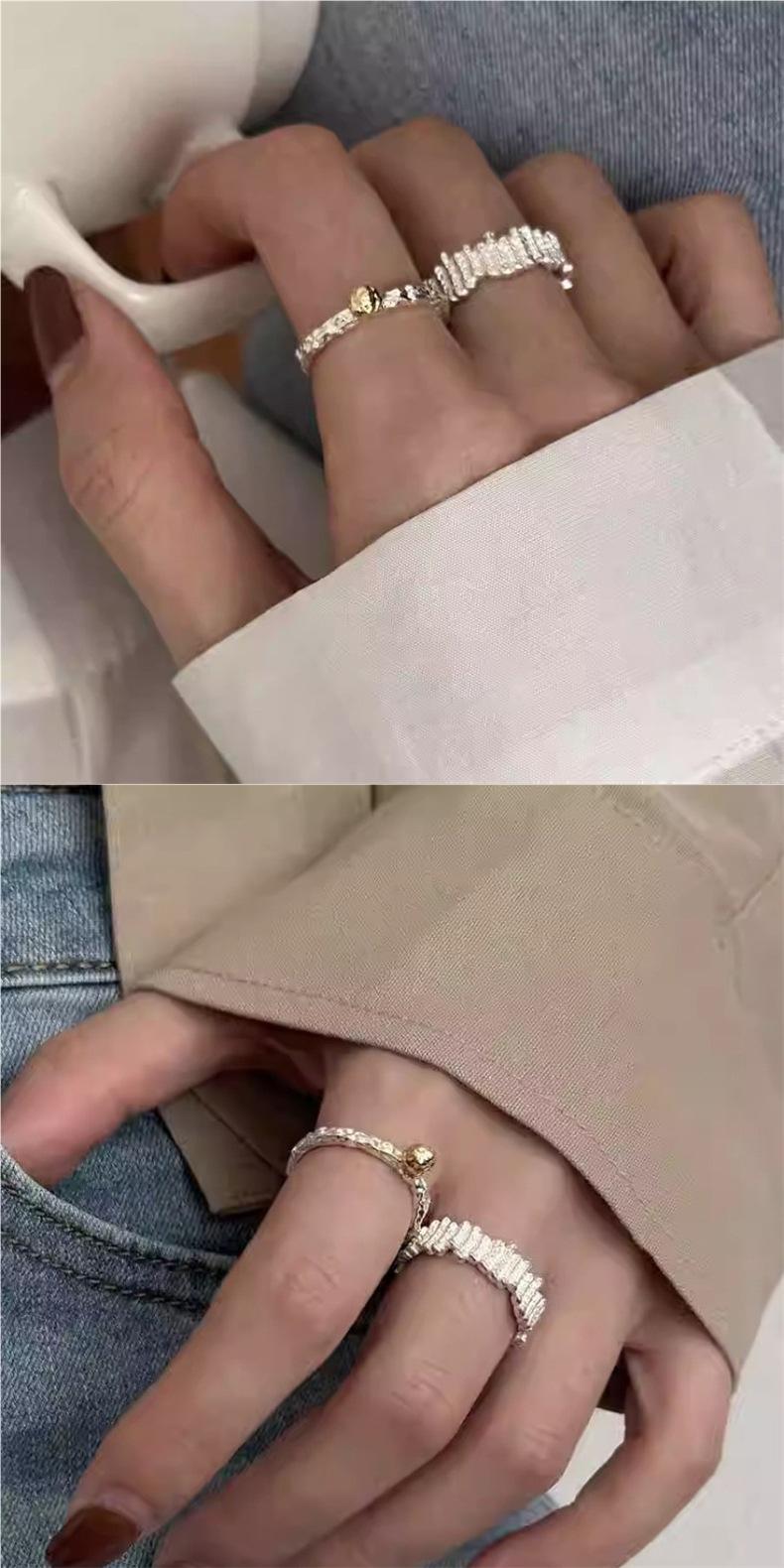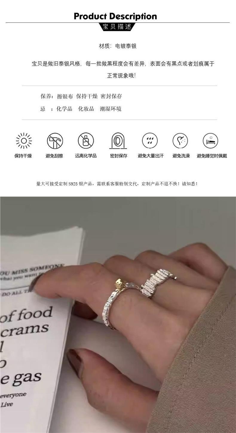 Anillo de Textura de Lava con Bloques de Color para Mujer Moda Versátil Geométrico Irregular Plata S925 Plateada Anillo Abierto Anillo para Dedo Índice Moderno