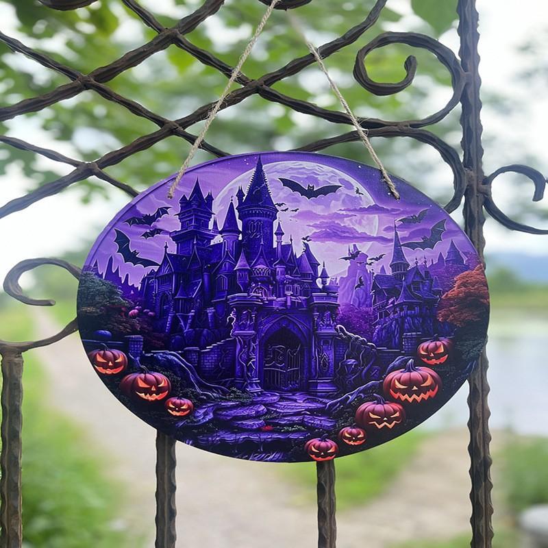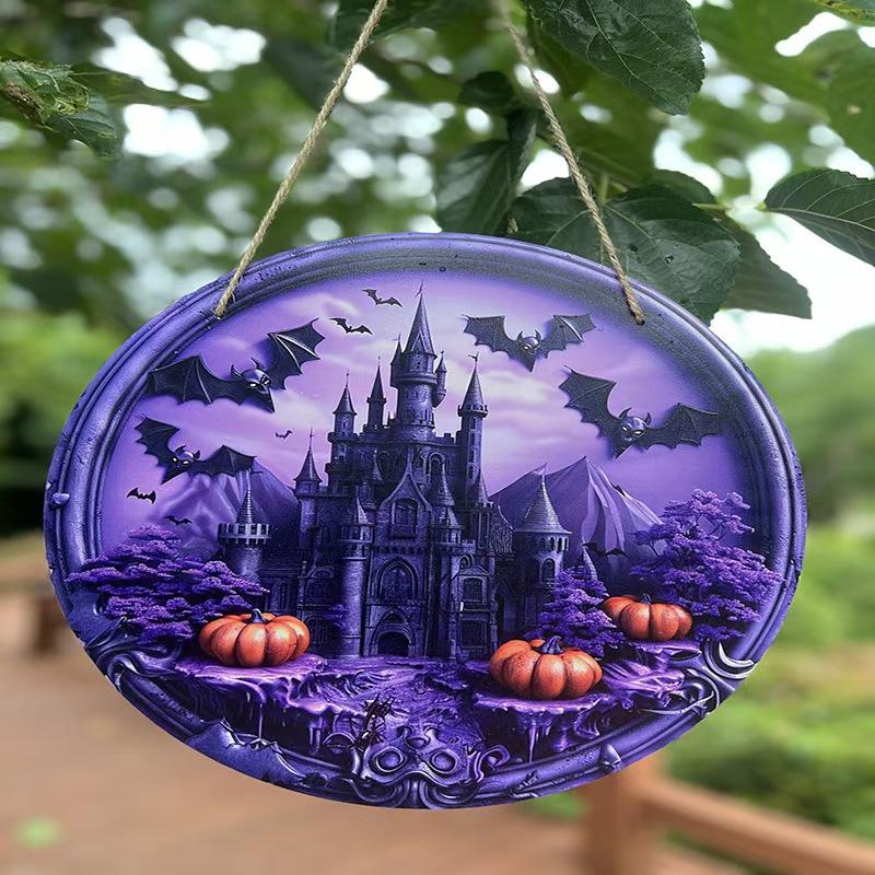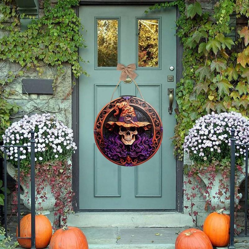 Nueva Puerta Transfronteriza Madera Halloween Gato Cuervo Castillo Patio Decoración Hogar Bar Colgante de Pared Puerta