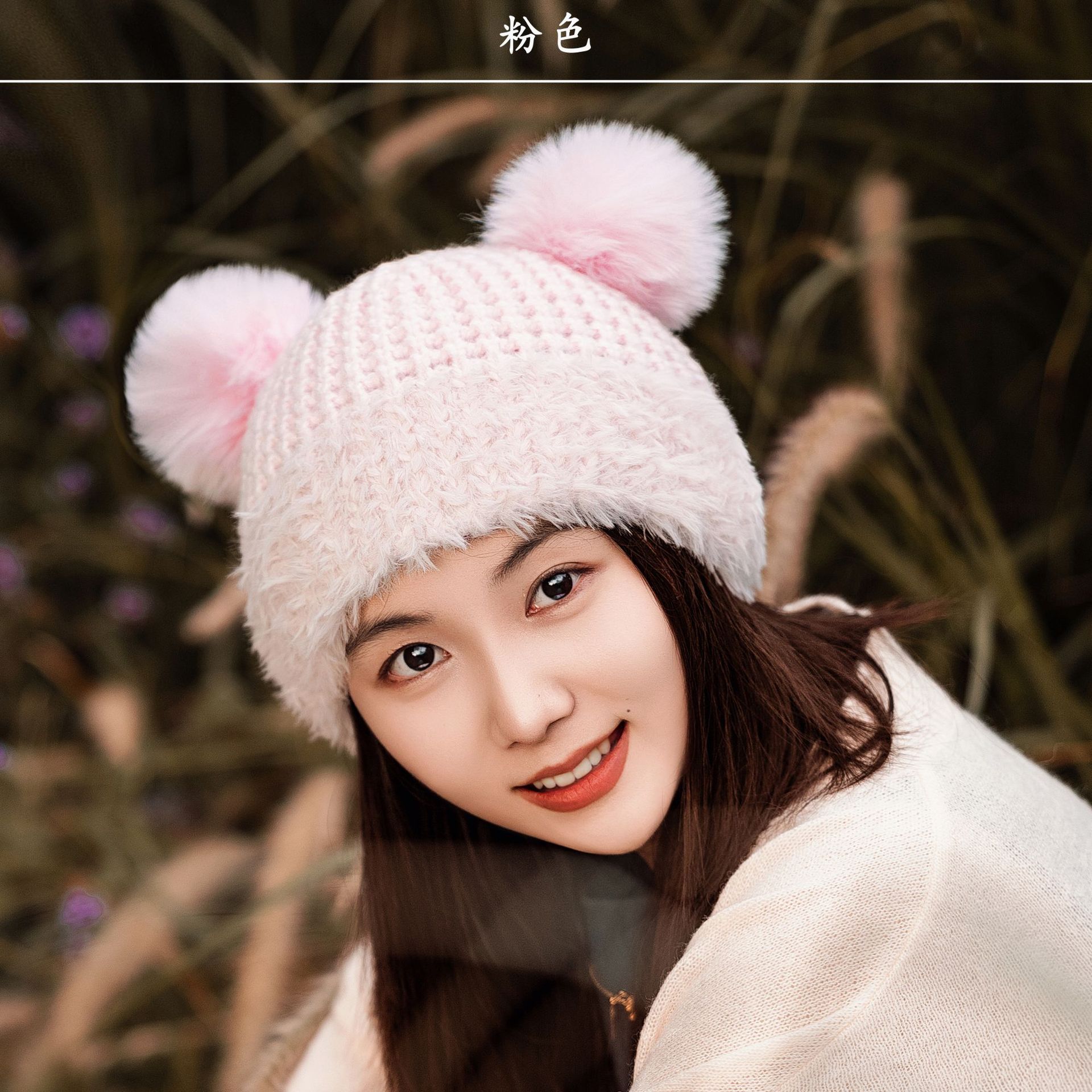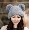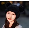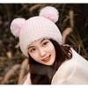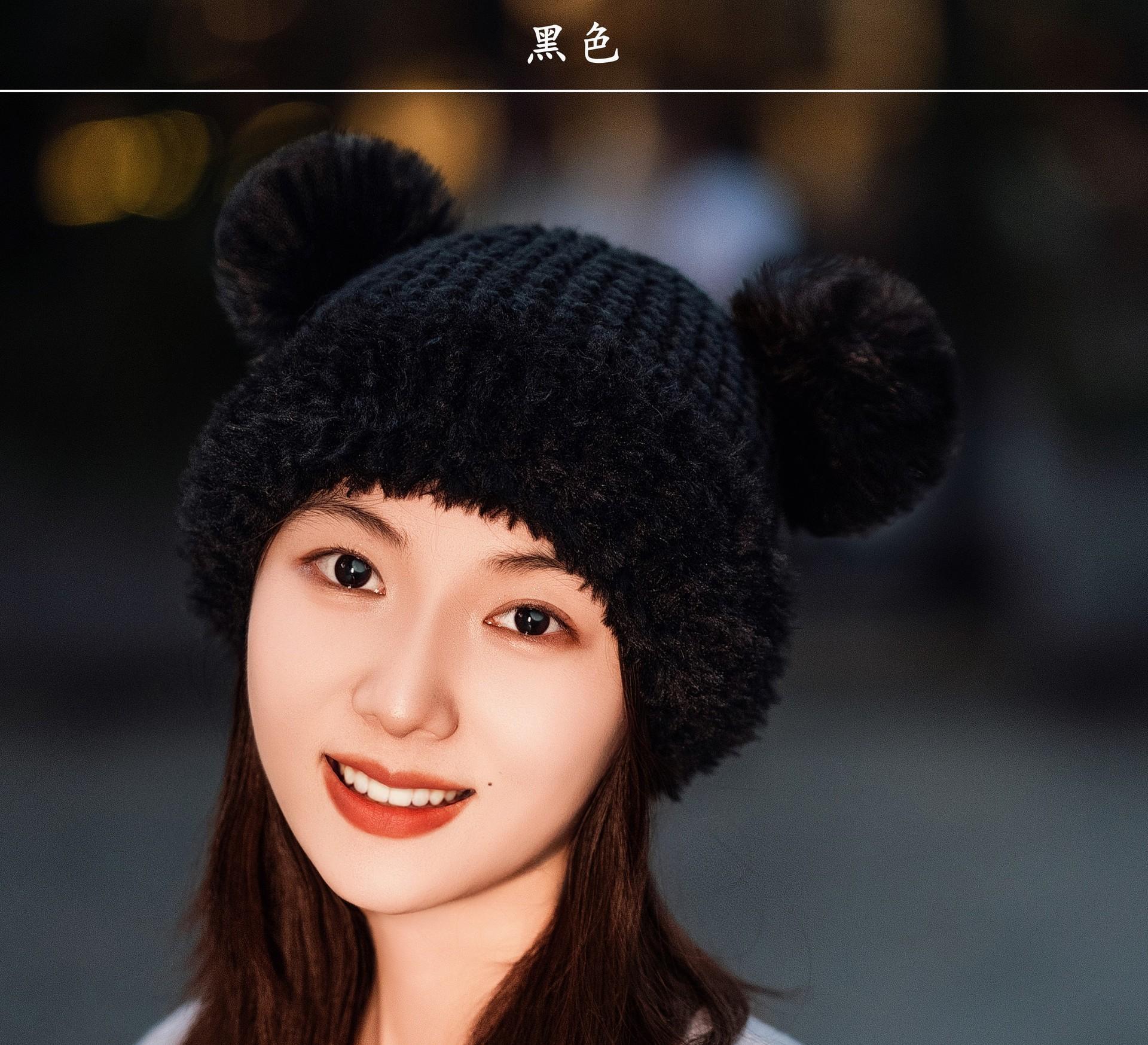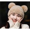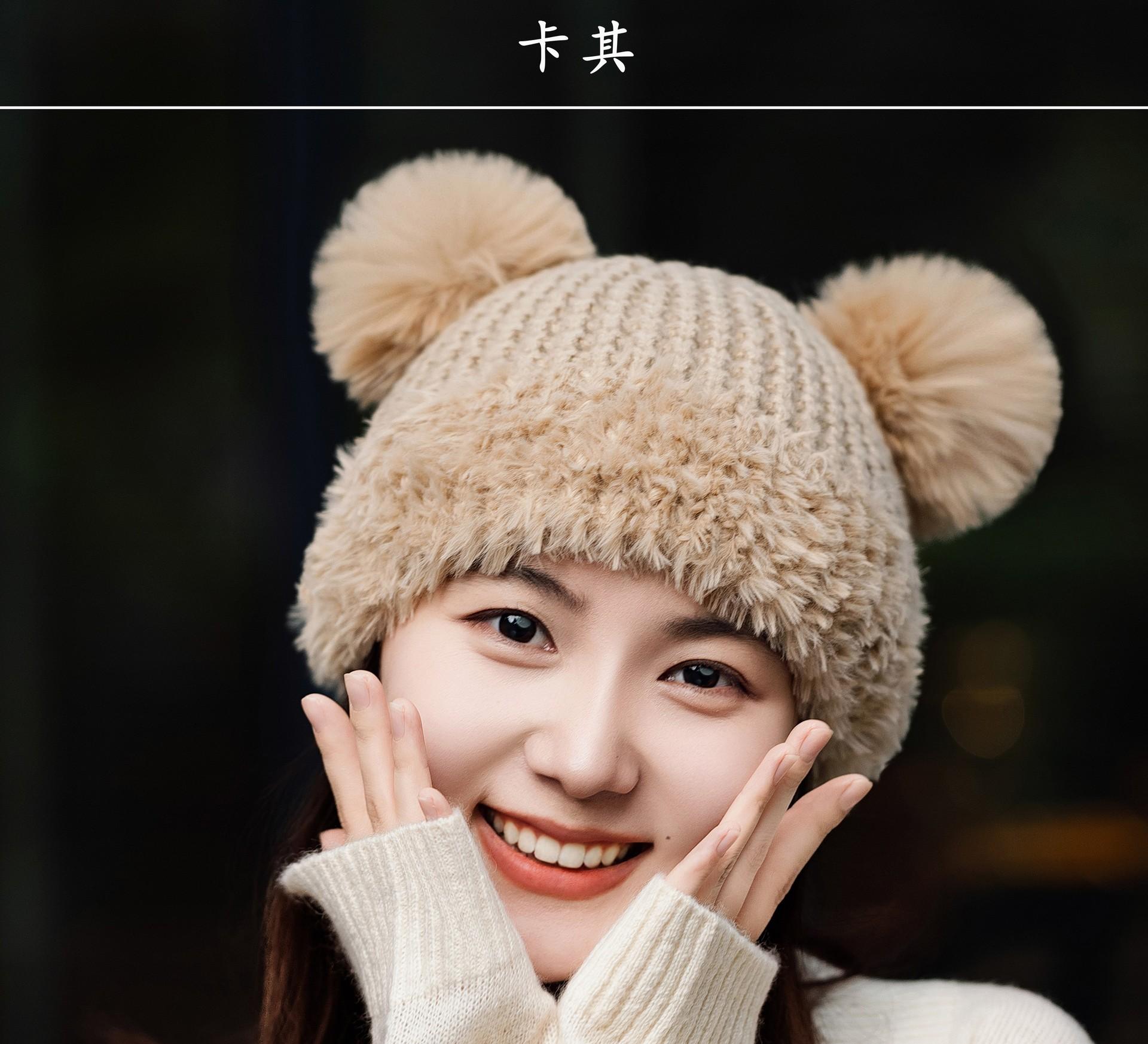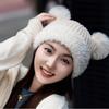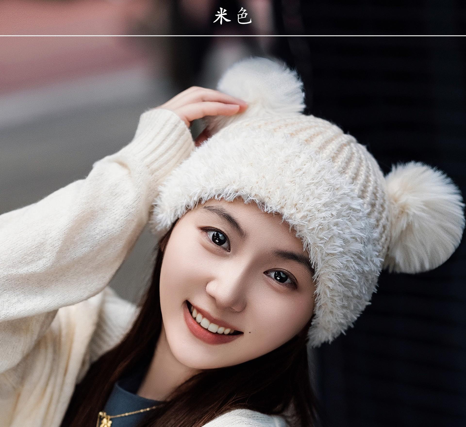 Nuevo Invierno Lindo Gorro Tejido con Bola de Pelo para Mujer, Exterior, Borde Afelpado Reductor de Edad, Protección para las Orejas, Gorro de Lana Combinable, Cálido