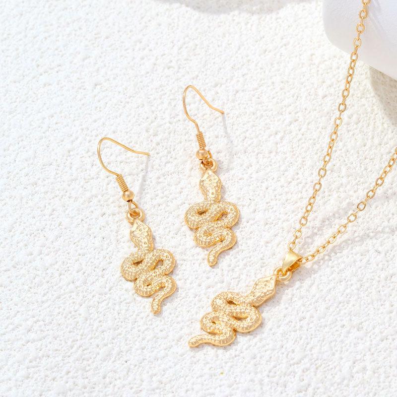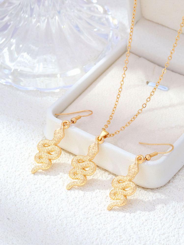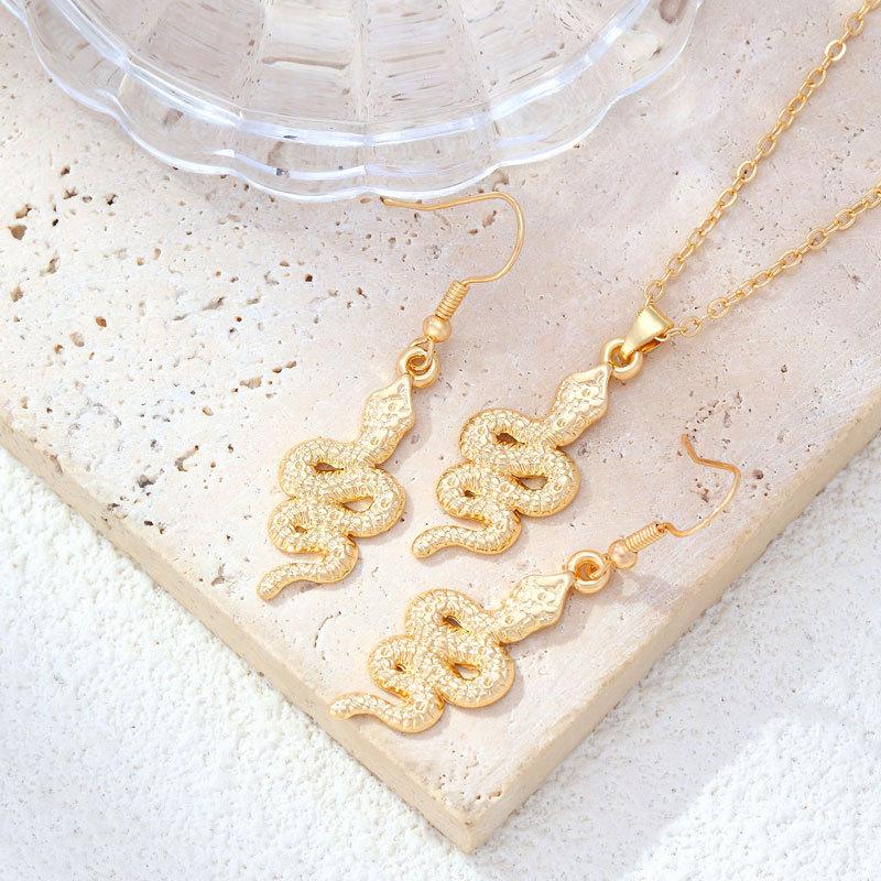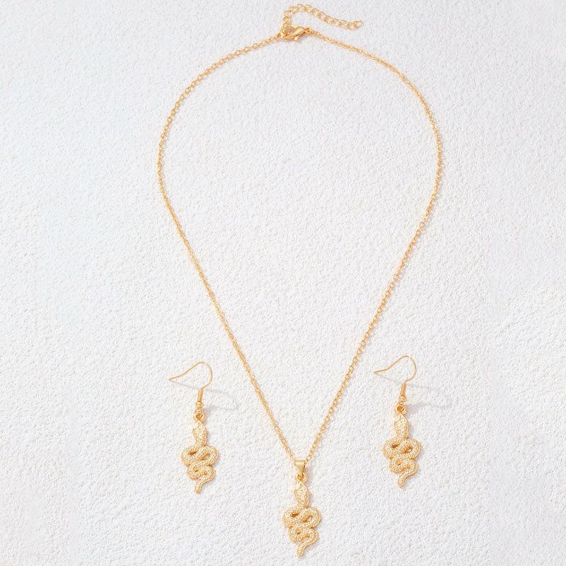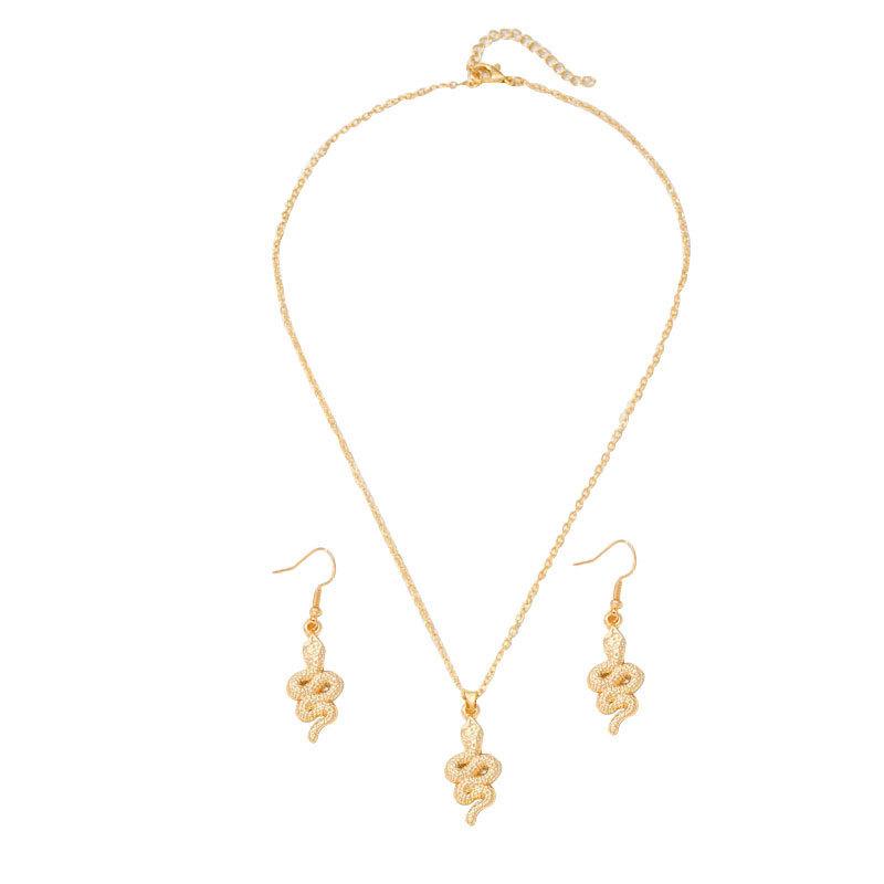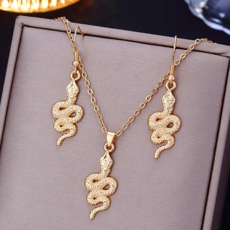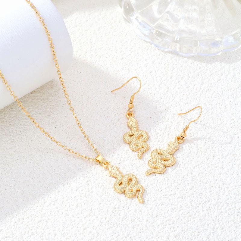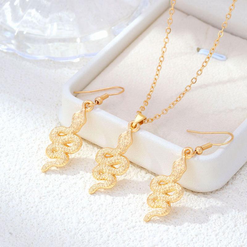 Cdd Diseño de Moda Oro Elemento Serpiente Aleación Collar y Aretes Set Venta Caliente Fábrica de Origen
