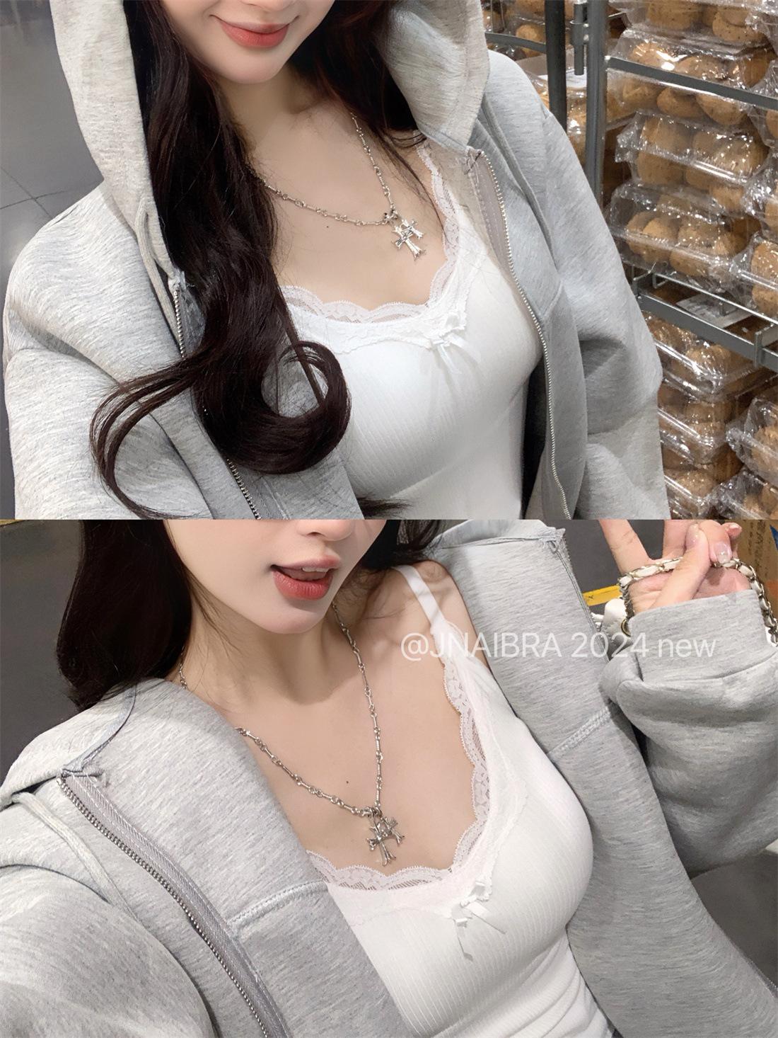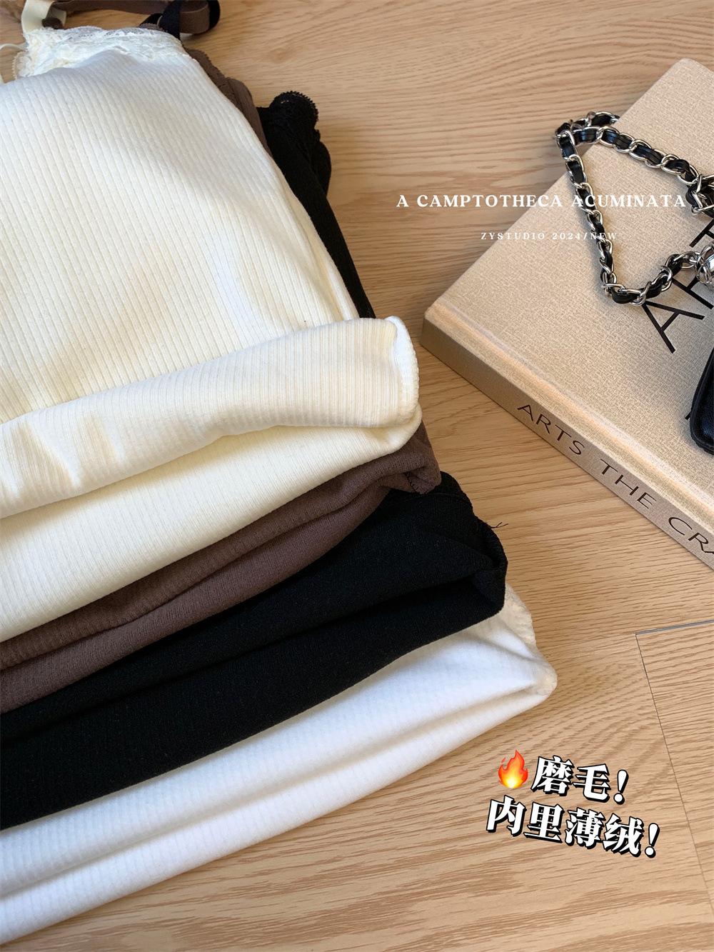 Camisola Térmica de Encaje de Cachemira para Otoño e Invierno para Mujer con Almohadilla Fija en el Pecho, Ropa Térmica Interior Gruesa, Ajustada