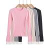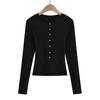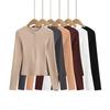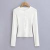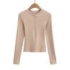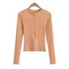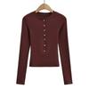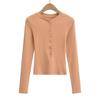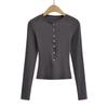 2024 Primavera Nuevo Cuello Henley Lana Camiseta Básica Slim Hebilla Concha Adelgazante Alta Elástica Delgada Suéter Manga Larga
