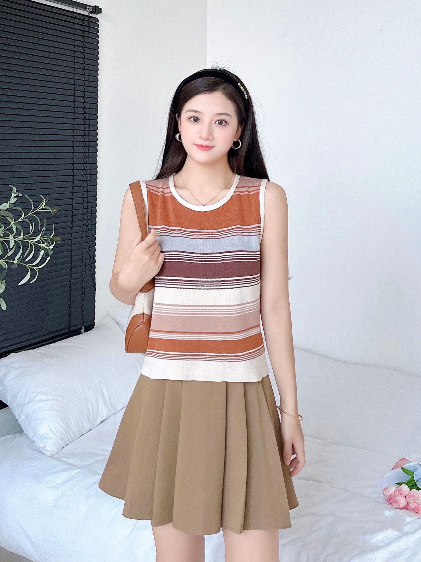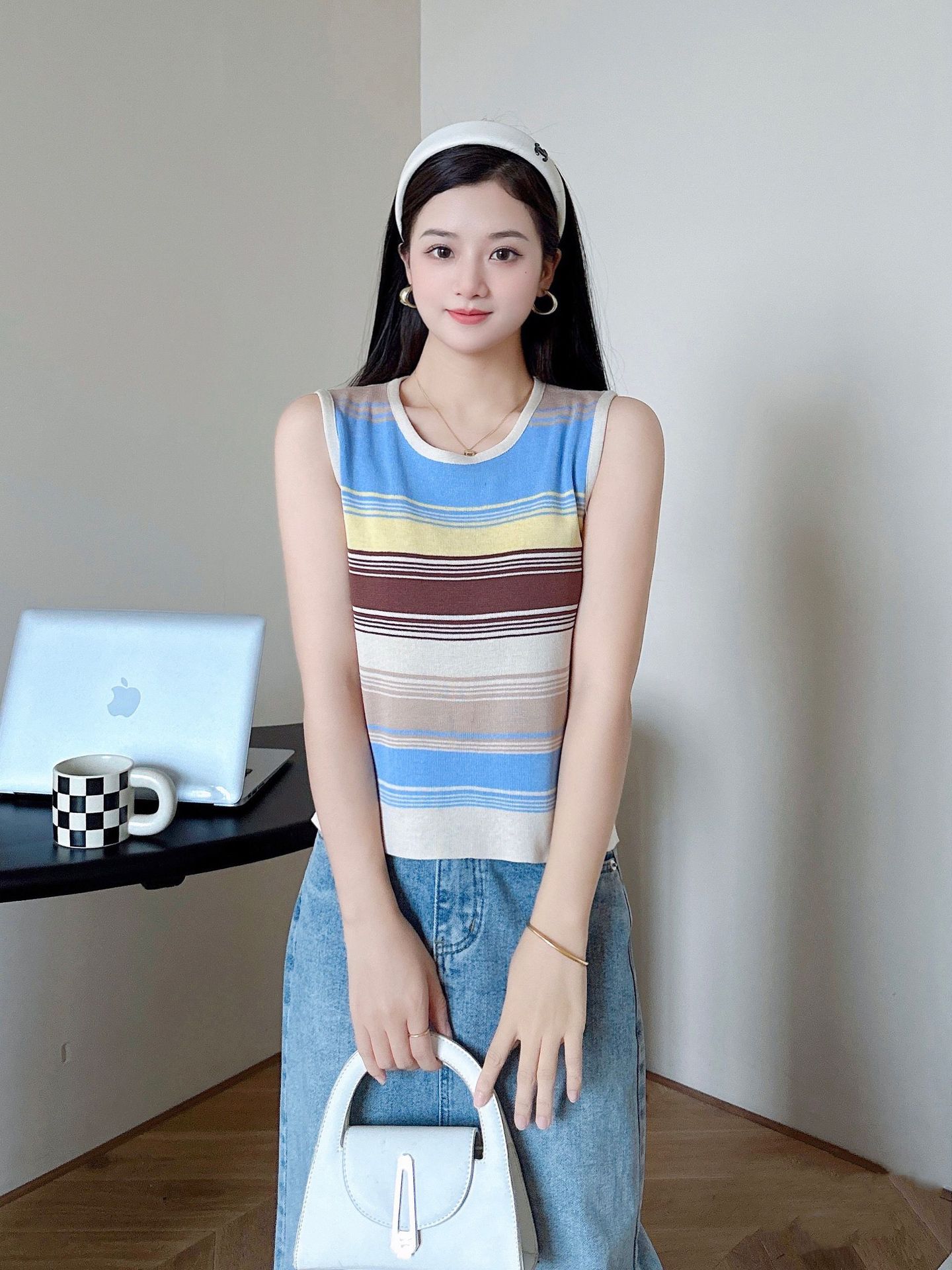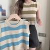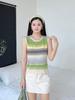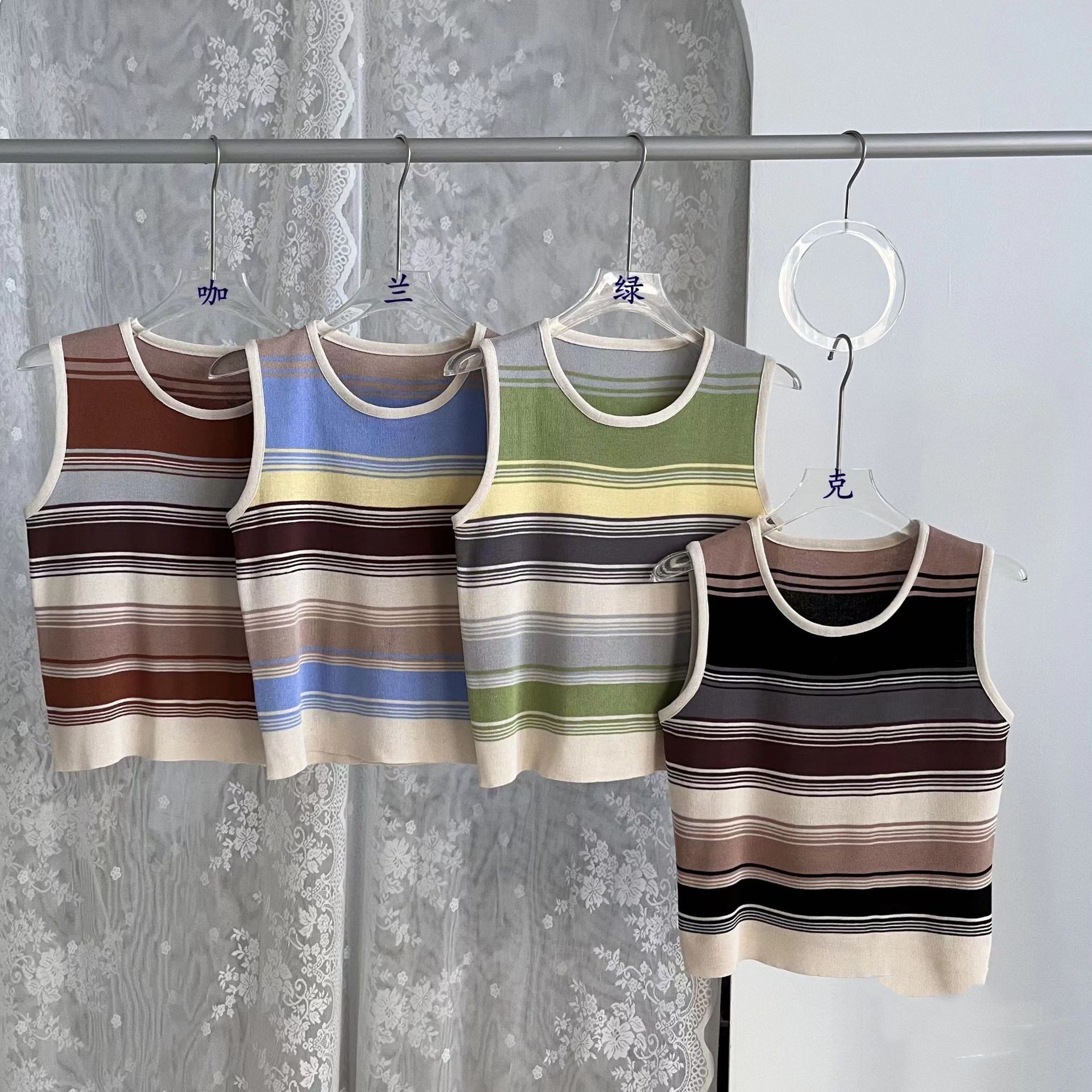 Camisola de punto a rayas con contraste de color francés para mujer, nueva llegada de verano, top corto sin mangas combinable