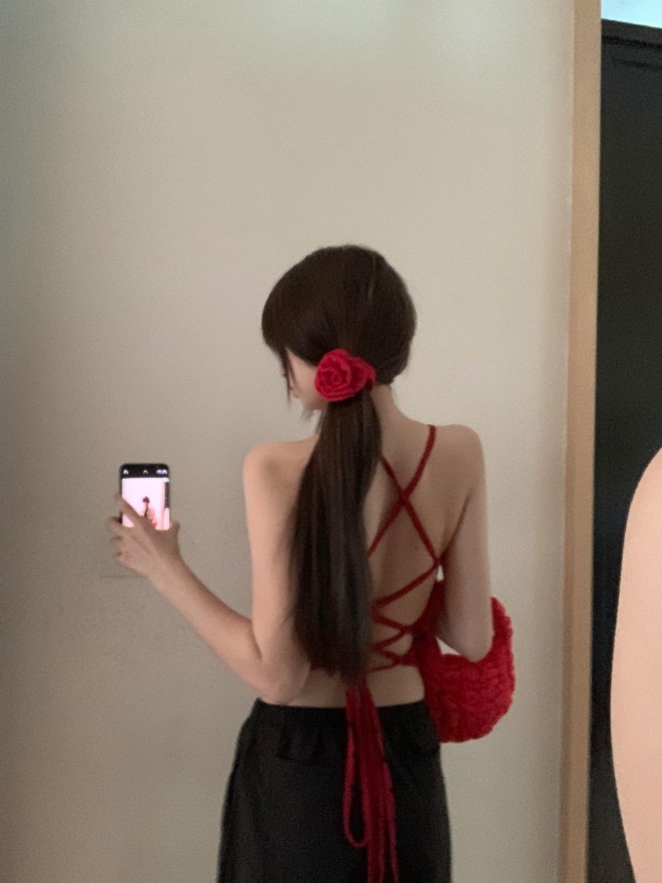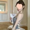 Conjunto de Verano para Mujer Estilo Thai Sweet Spice Girl Sexy Top Strapless Cruzado sin Espalda