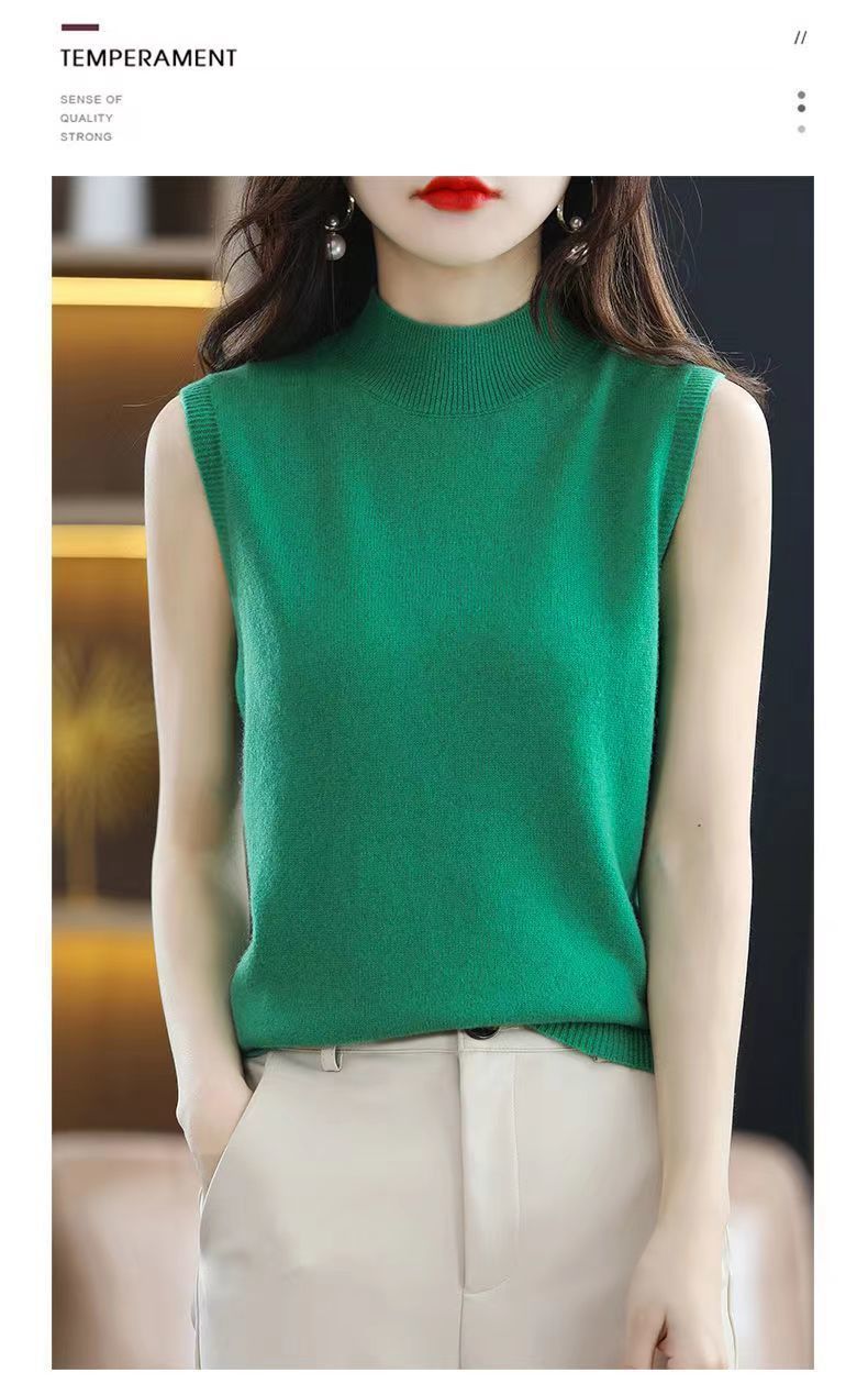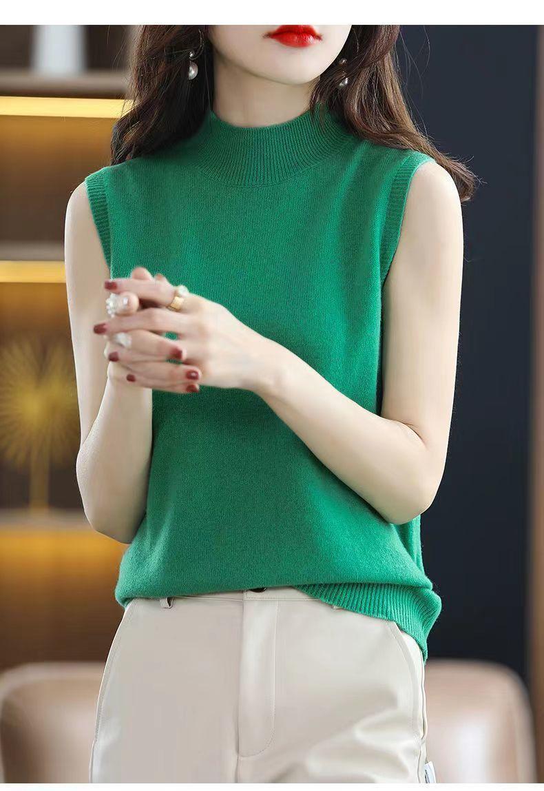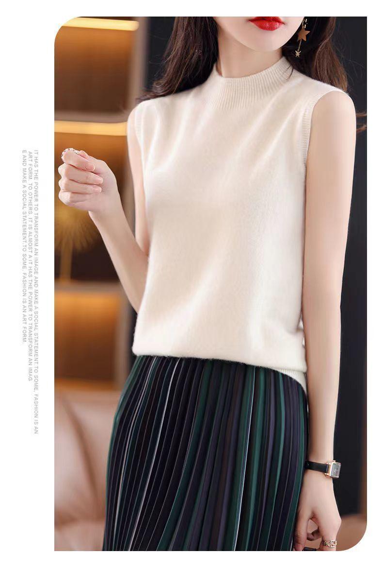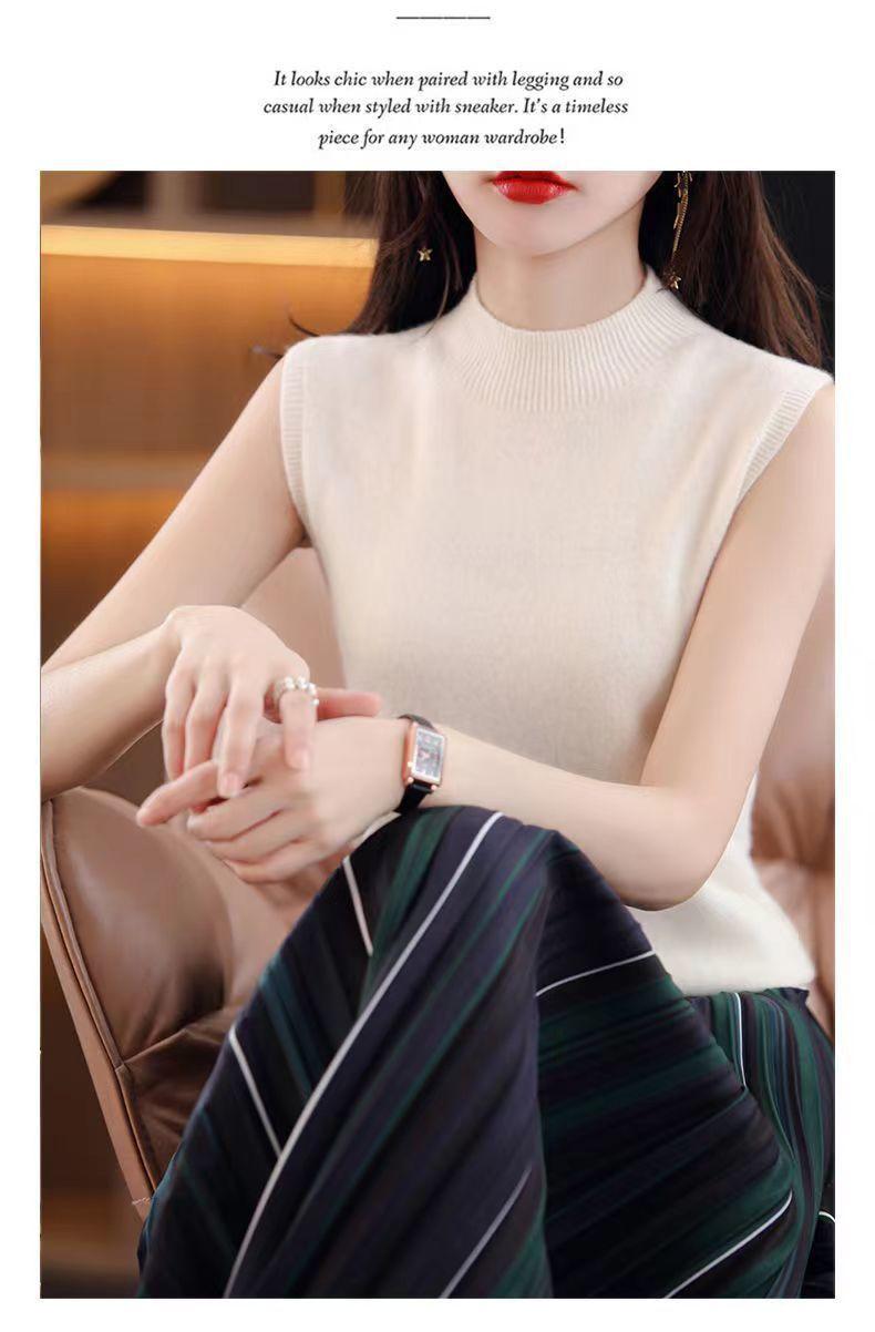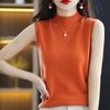 Chaleco sin mangas con cuello medio alto Tejido base para mujer Color sólido Ajustado Elegante Combinable Top interior exterior Camiseta