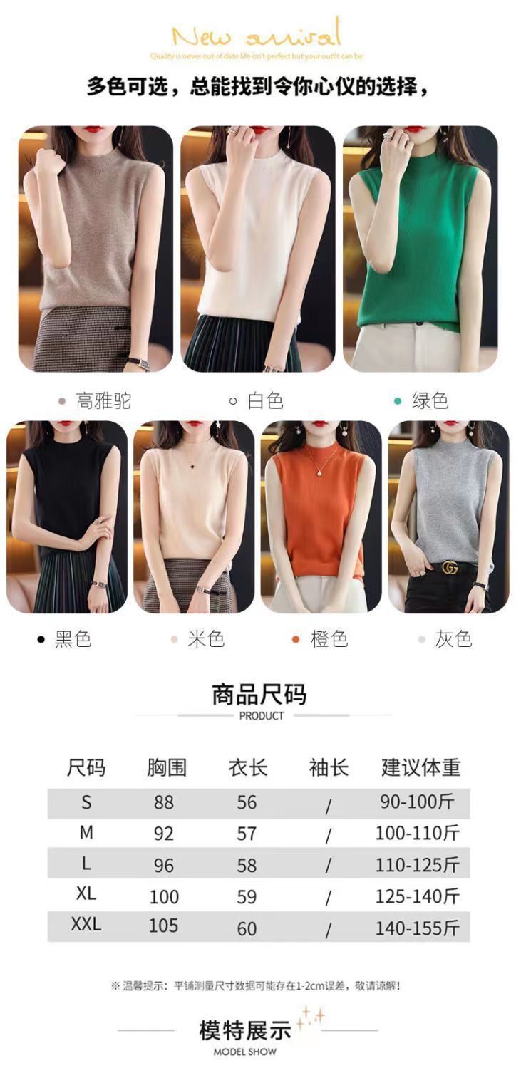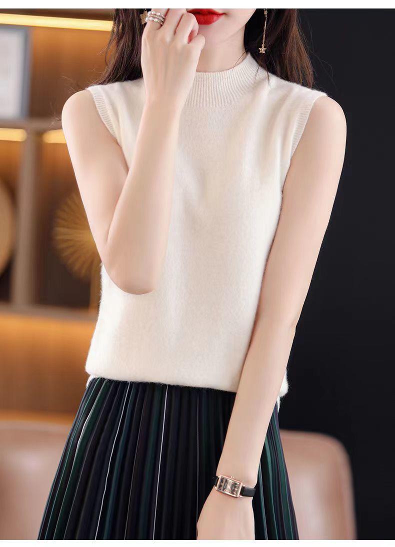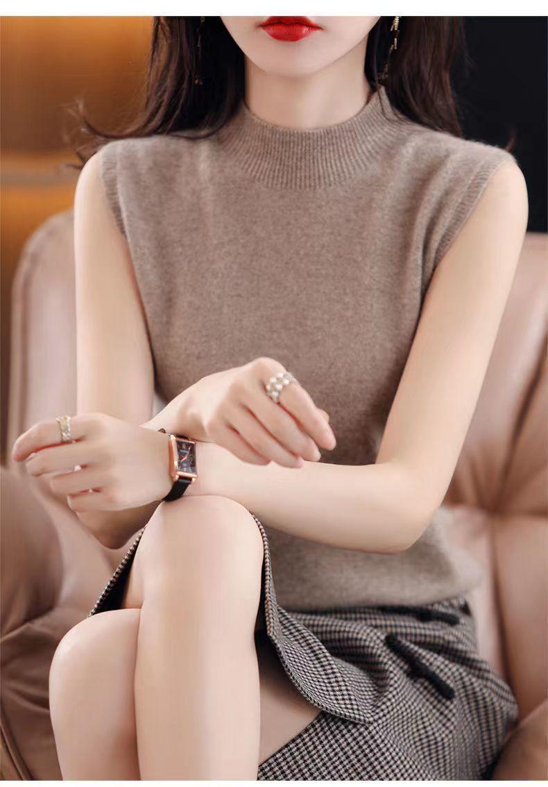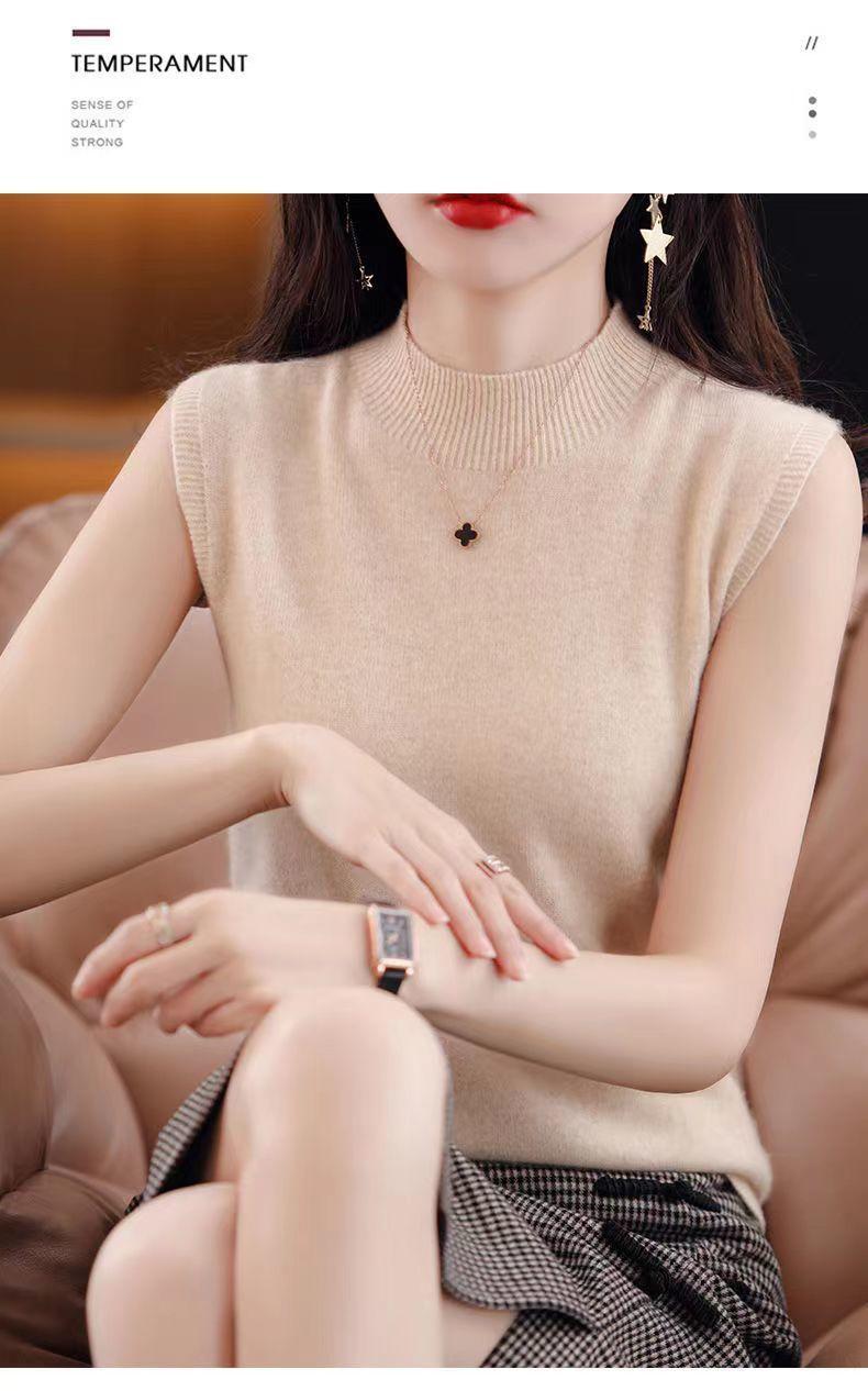 Chaleco sin mangas con cuello medio alto Tejido base para mujer Color sólido Ajustado Elegante Combinable Top interior exterior Camiseta