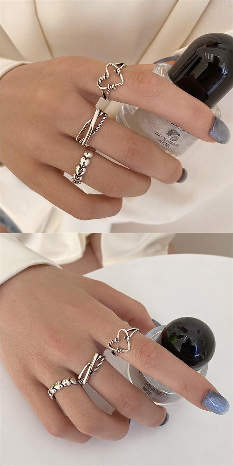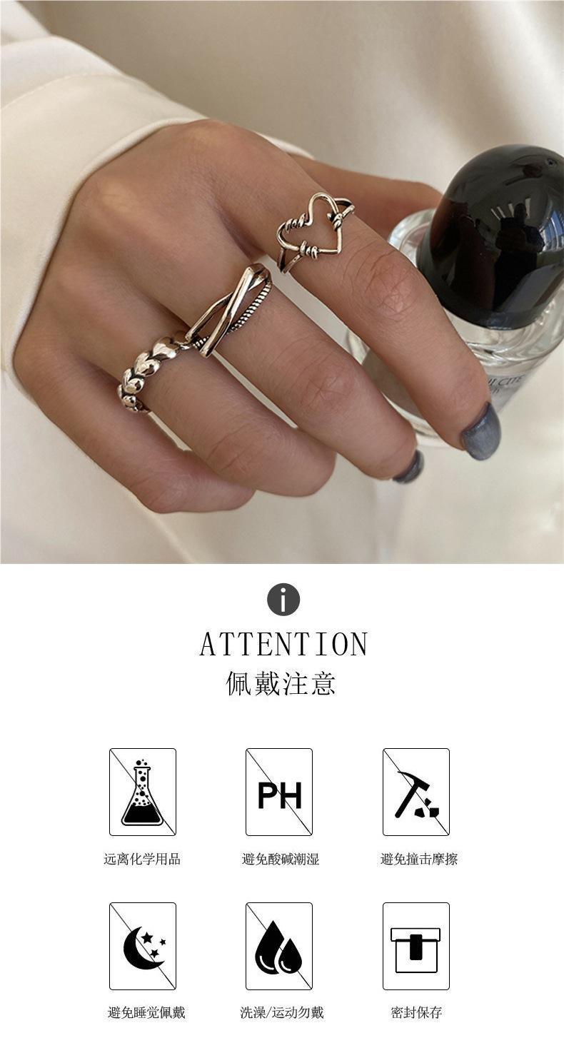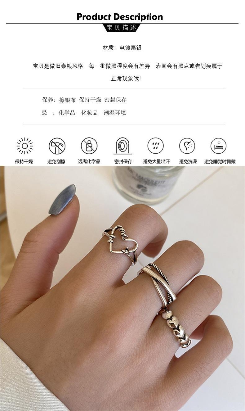 Anillo Sencillo de Corazón Hueco de Plata S925 Versión Coreana para Mujer Moda Retro Tejido Corazón de Durazno Anillo Abierto Anillo para Dedo Índice Moderno