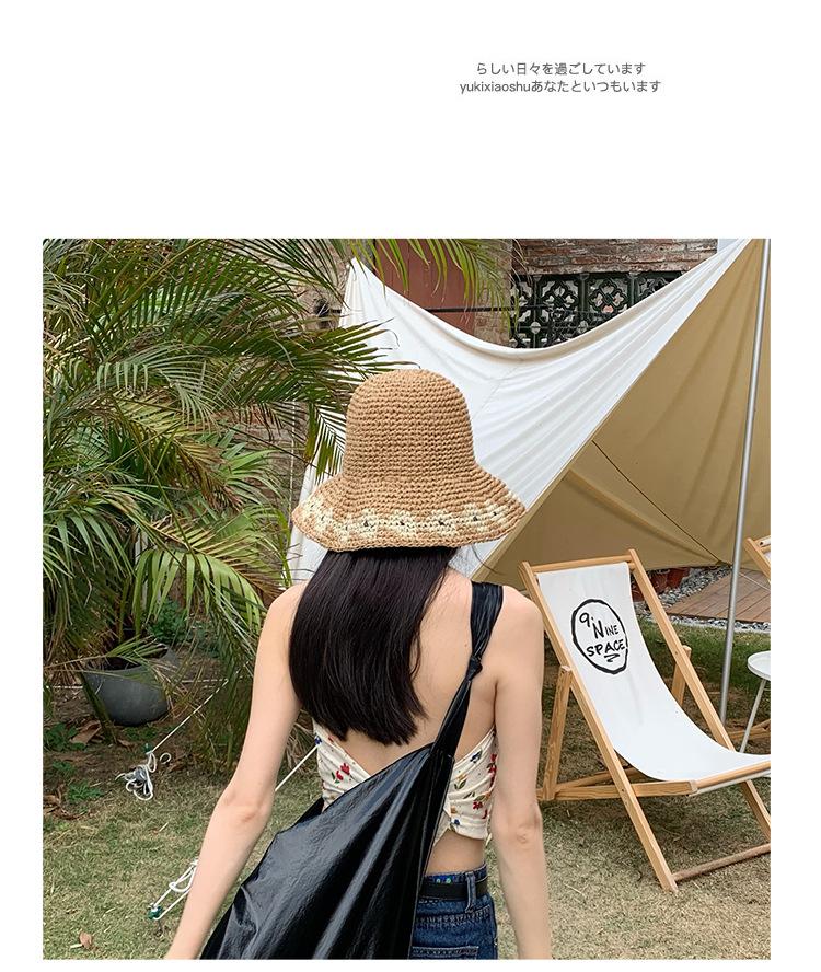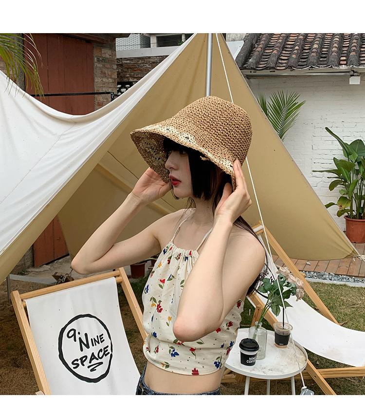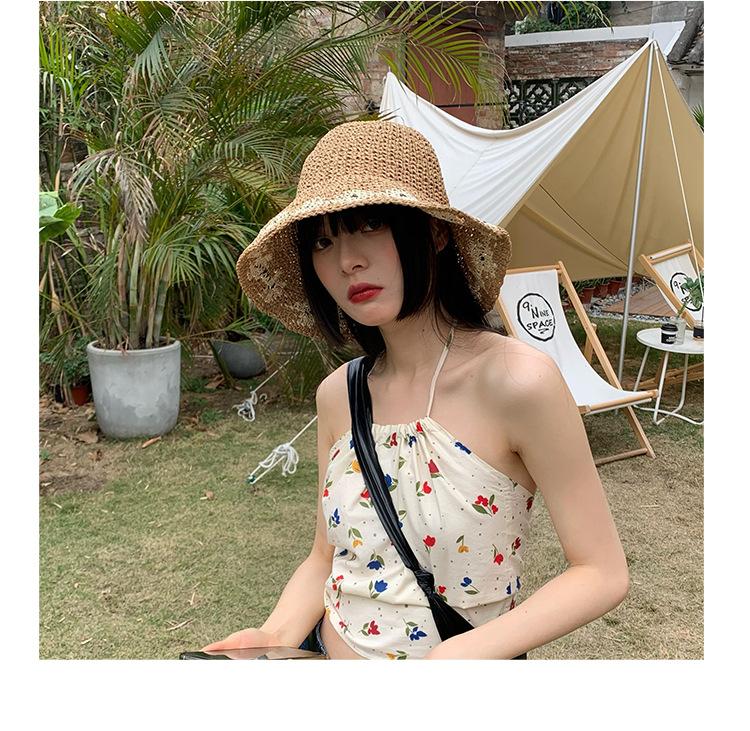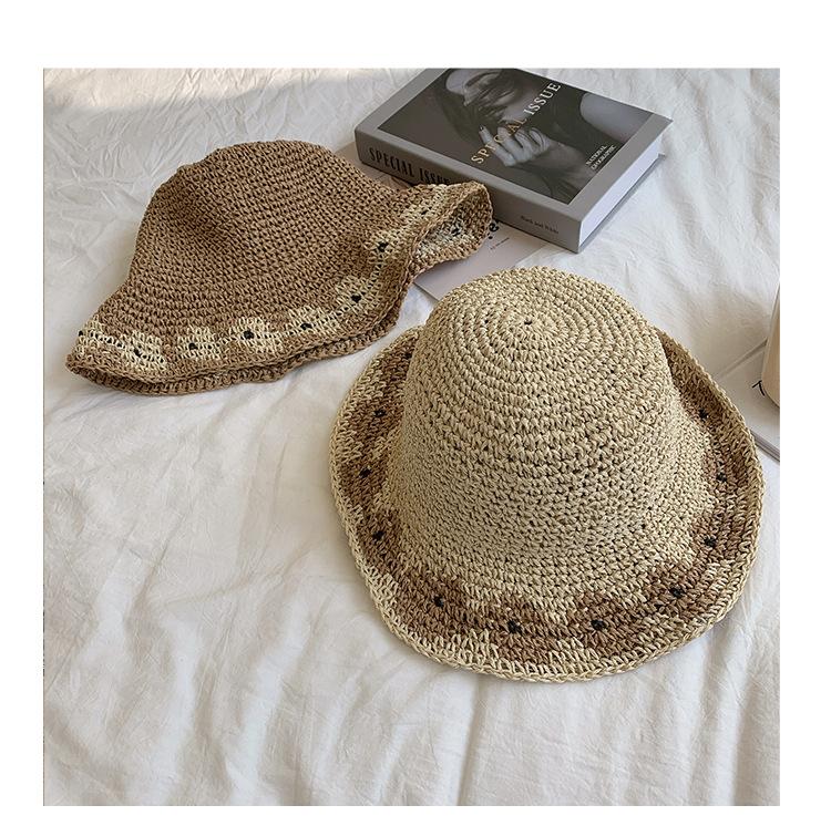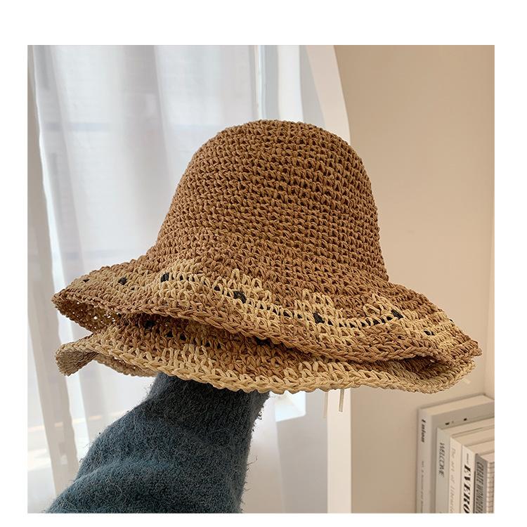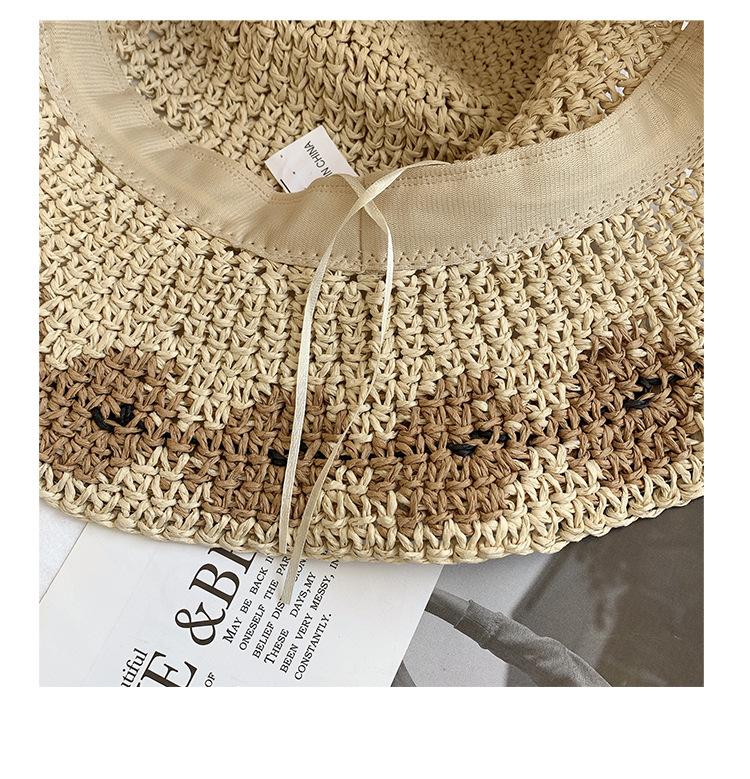 Sombrero de paja de ala ancha de verano, tejido a mano, para exteriores, vacaciones, playa, protector solar, resistente a los rayos UV, sombrero de protección facial, moda femenina