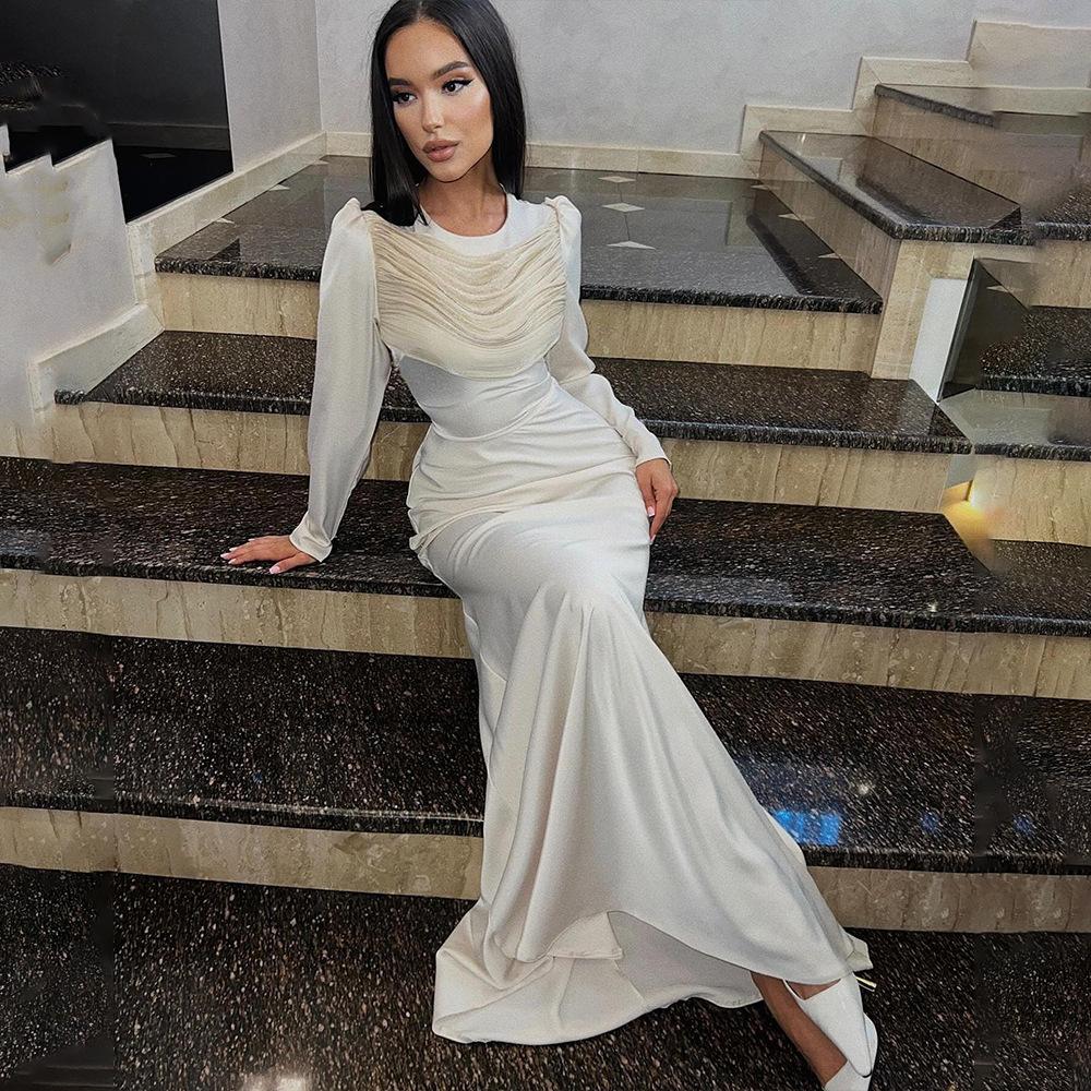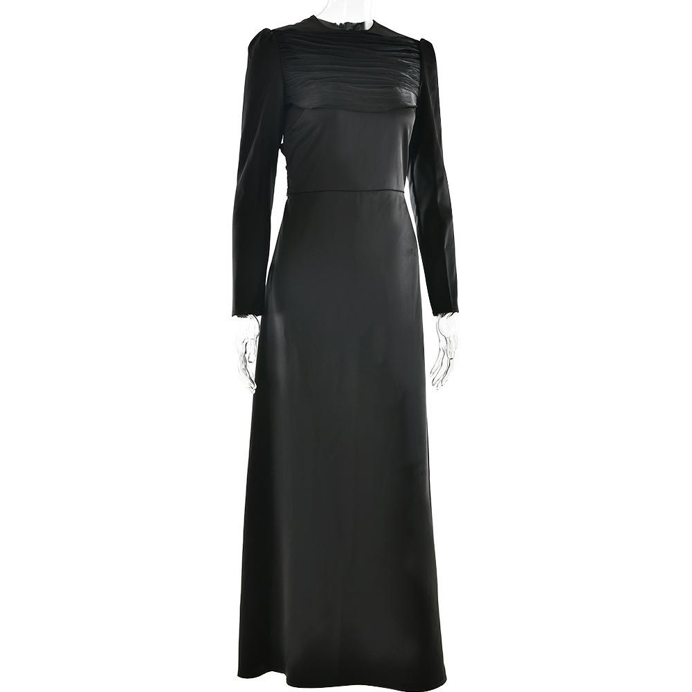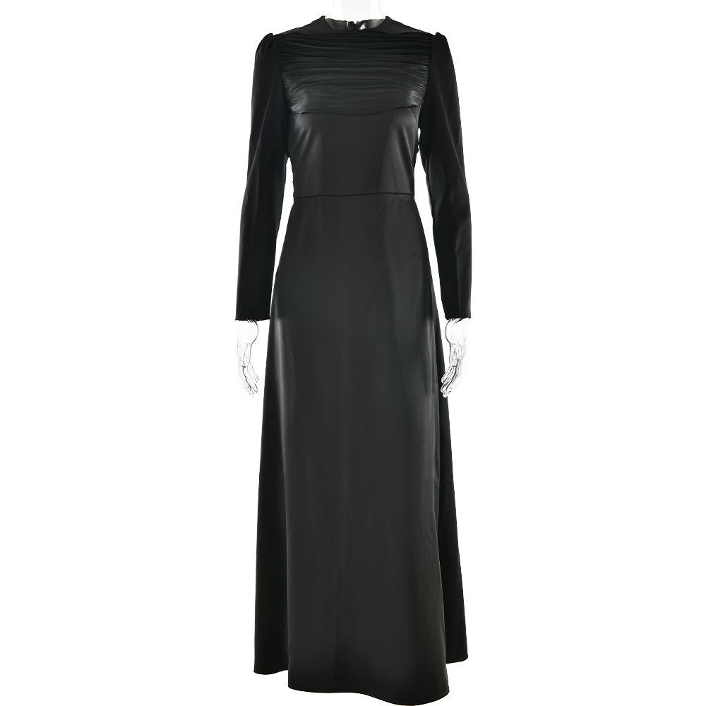 Vestido de Mujer Europeo y Americano Amazon 2025 Primavera Transfronterizo de Alta Gama Temperamento Ajustado con Cordones Plisado de Manga Larga