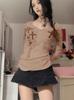 2025 Nueva Camiseta de Manga Larga con Ombligo Descubierto para Mujer Primavera Estampada Top Ajustado a la Moda Combinable