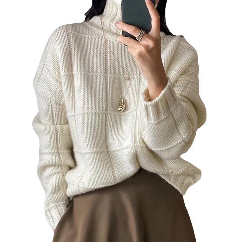 Suéter holgado informal de cuello alto para mujer, jersey de punto, estilo holgado, combinable, para otoño e invierno, 2023