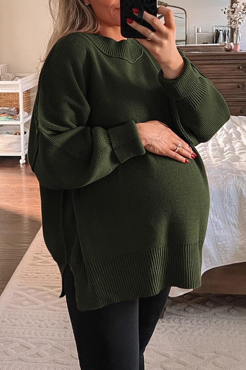 Amazon Transfronterizo Europeo y Americano Comercio Exterior Cuello Redondo Manga Larga de Murciélago Otoño Tejido Abertura Lateral Suéter Holgado de Punto para Mujer