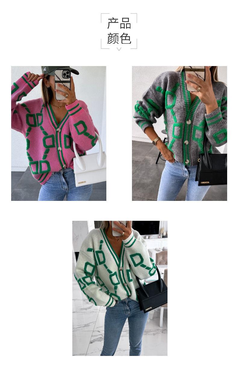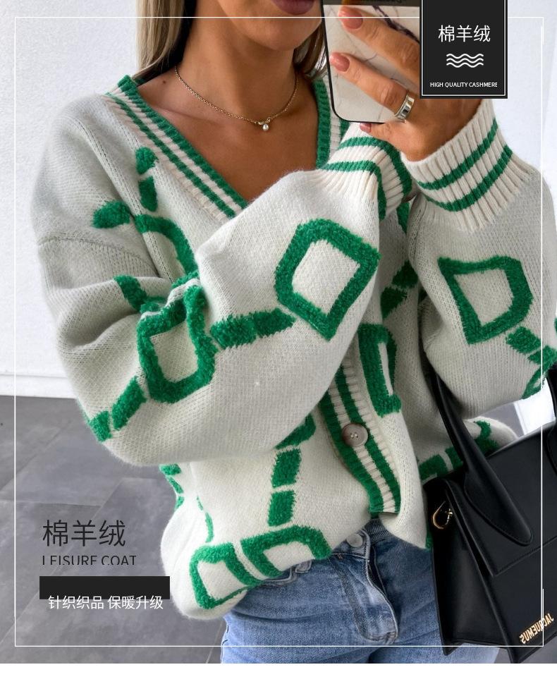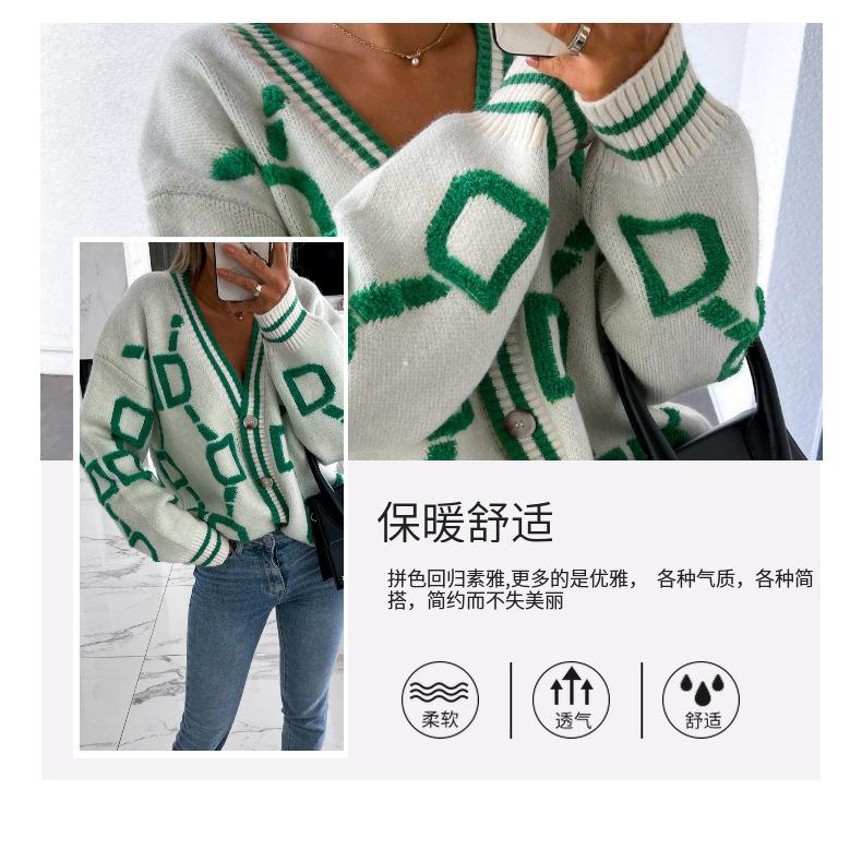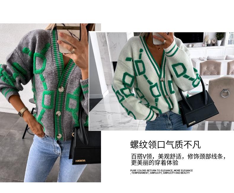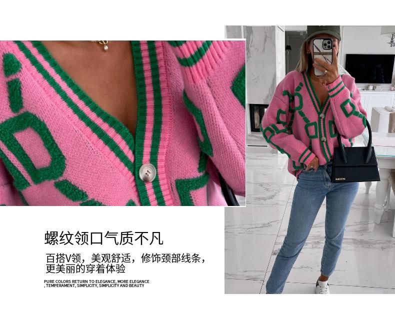 Suéter de comercio exterior transfronterizo de Amazon, abrigo de toalla con cuello en V bordado, cárdigan de punto suelto para otoño e invierno, nuevo.