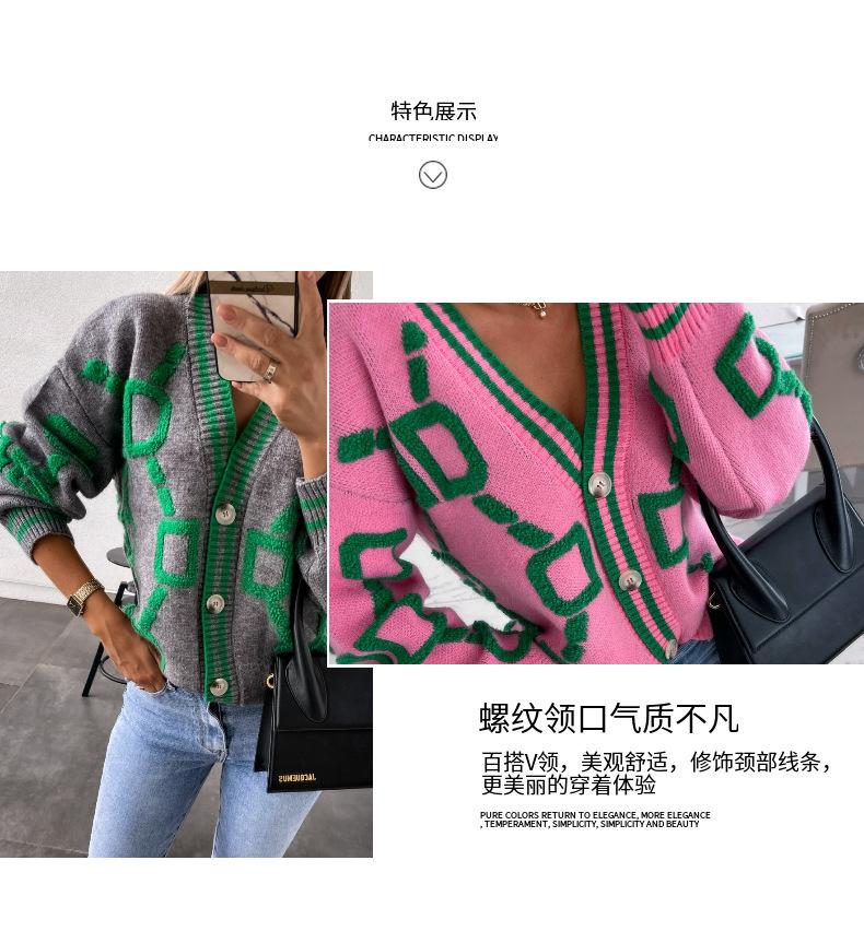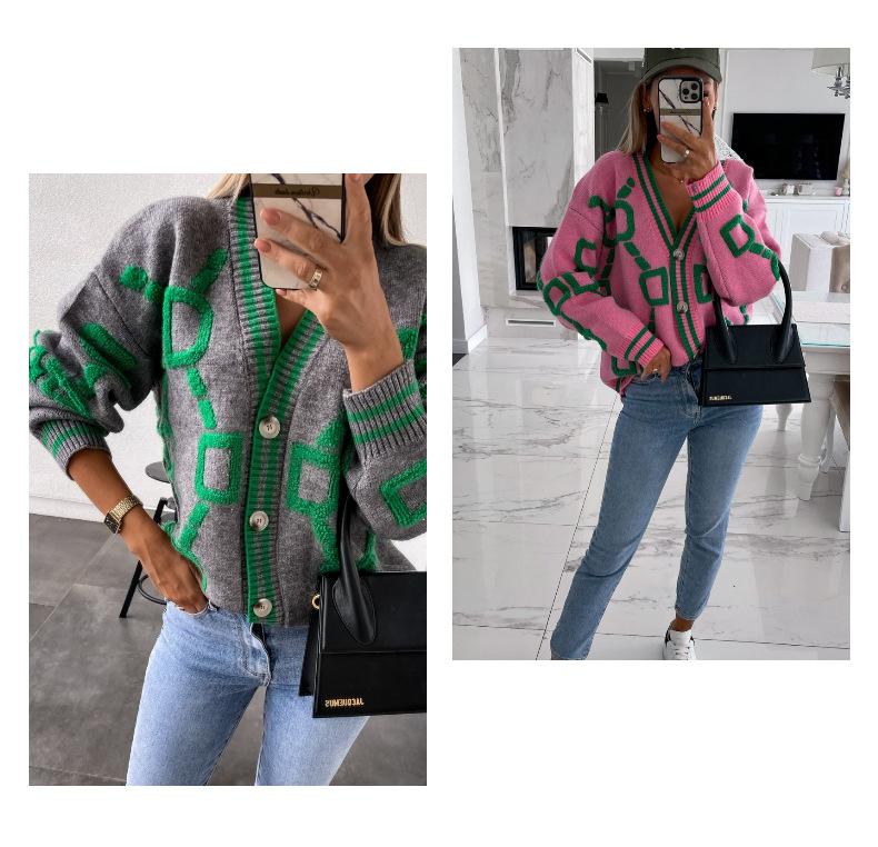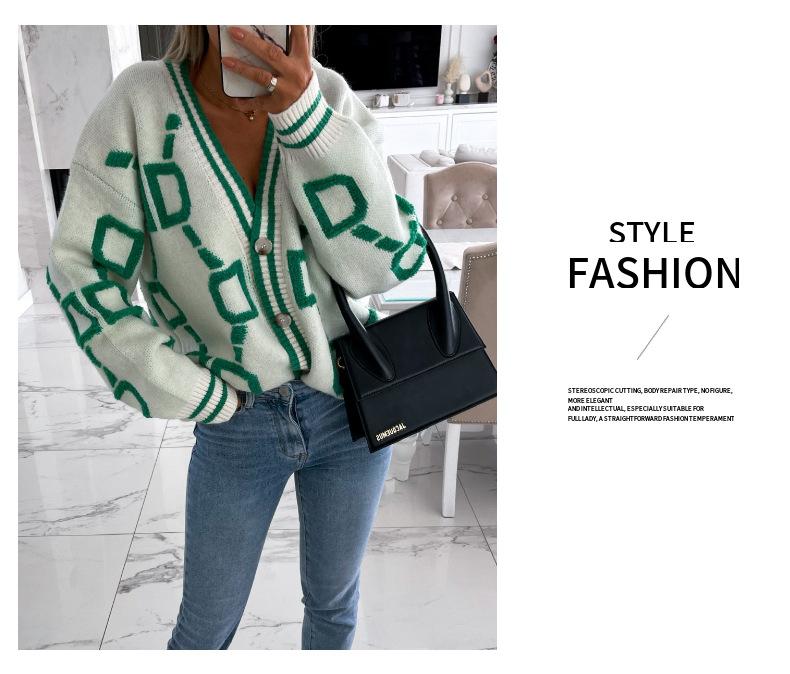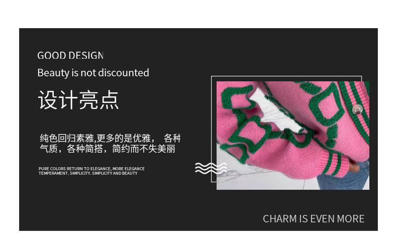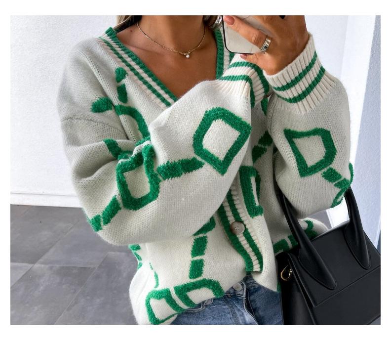 Suéter de comercio exterior transfronterizo de Amazon, abrigo de toalla con cuello en V bordado, cárdigan de punto suelto para otoño e invierno, nuevo.