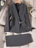 Gris oscuro Manga Larga Chaqueta Cuello Saco Pequeño Pantalón Falda Traje de Dos Piezas Casual Profesional Moda Elegante Ajustado