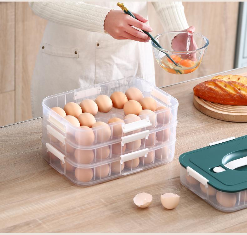 Caja Portátil Crisper para Almacenamiento de Huevos Cocina Refrigerador Sellada a Prueba de Polvo Plástico de Grado Alimenticio Almacenamiento Multicapa Huevo