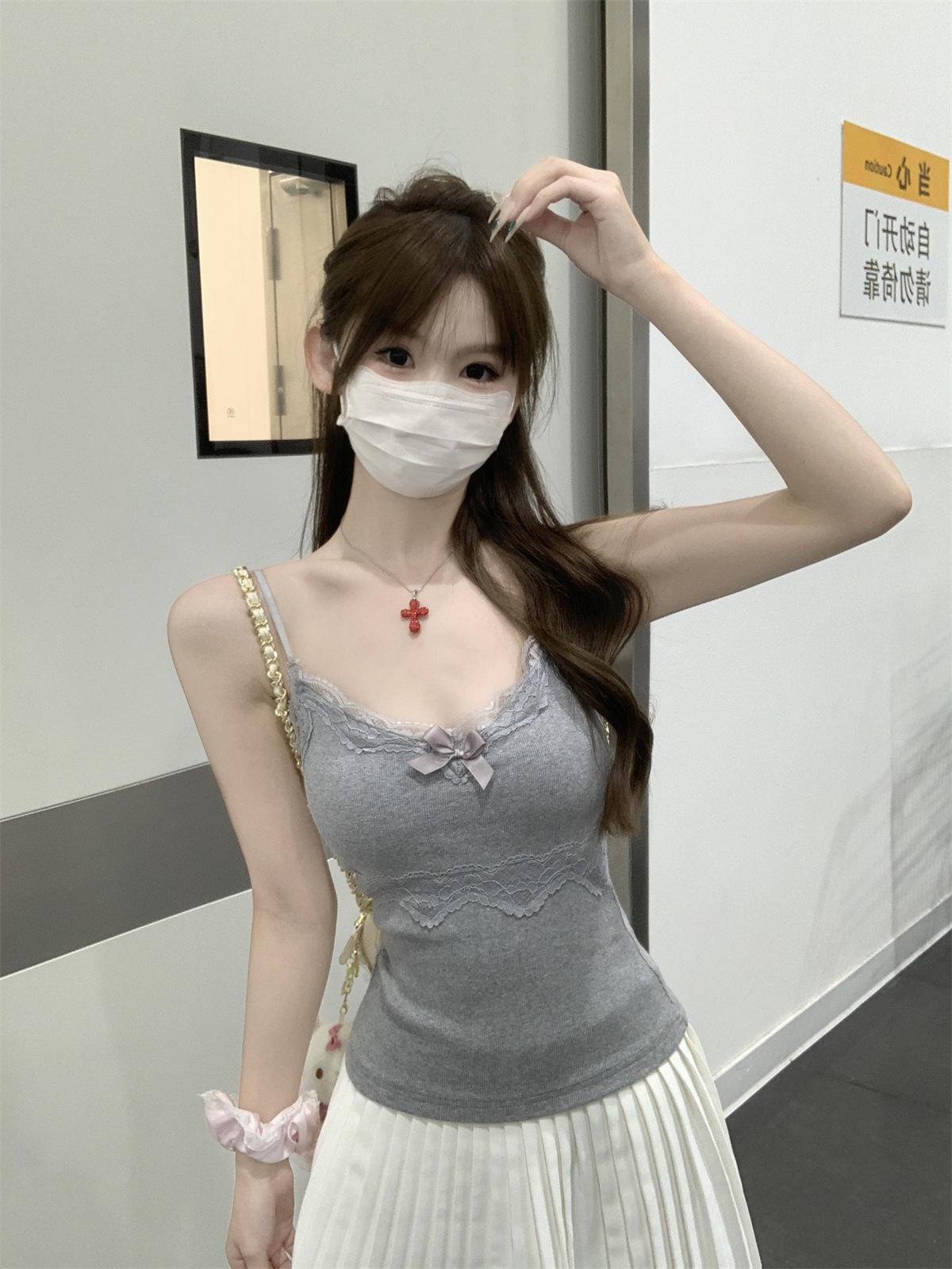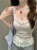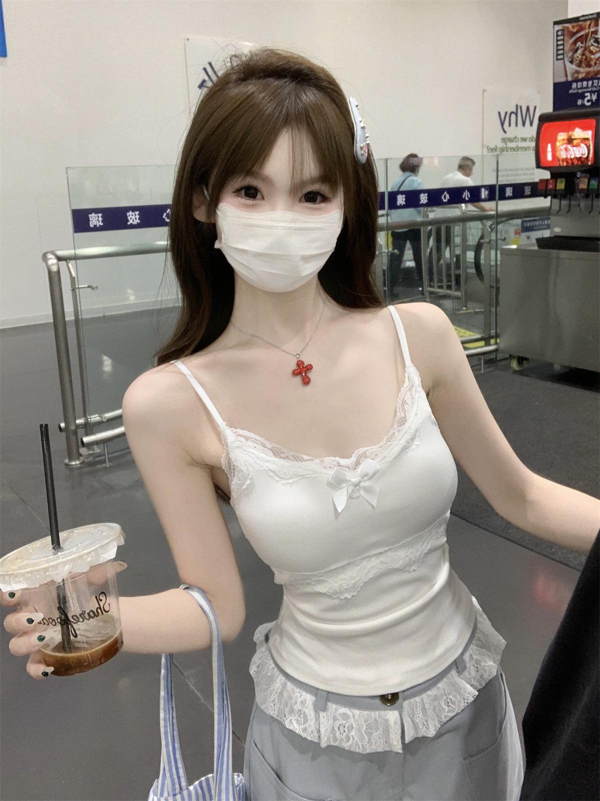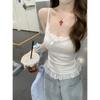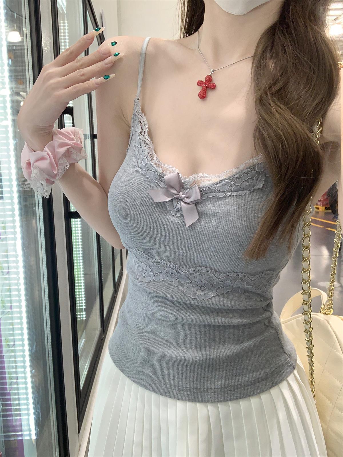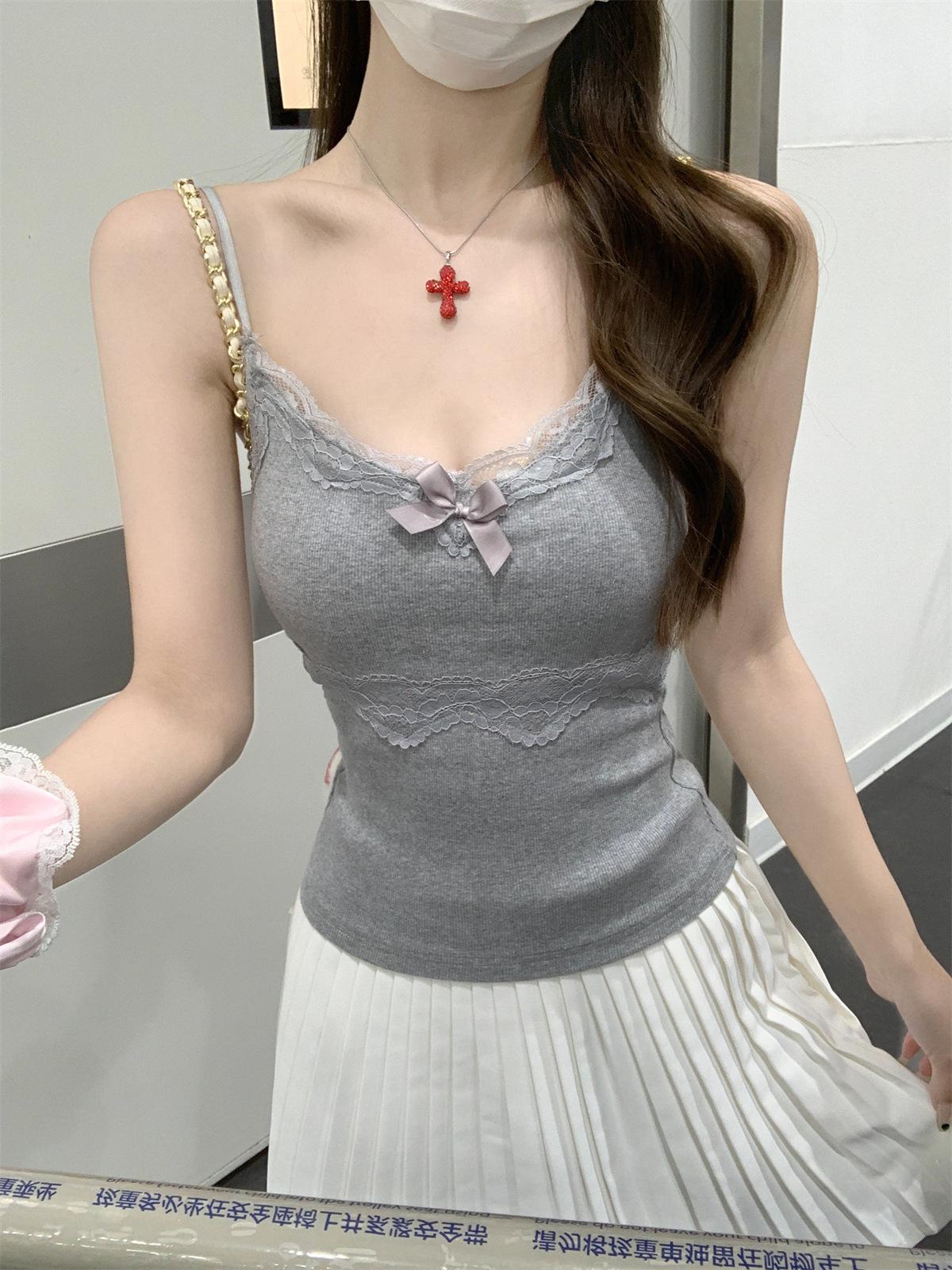 Francés 2025 Verano Estilo Coreano Deseo Puro Slim Costuras de Lazo Encaje Dulce Camiseta Interior de Tirantes