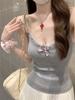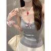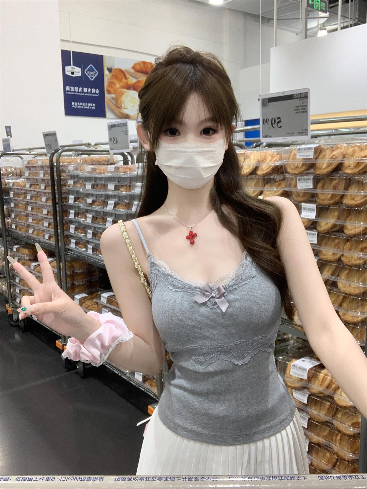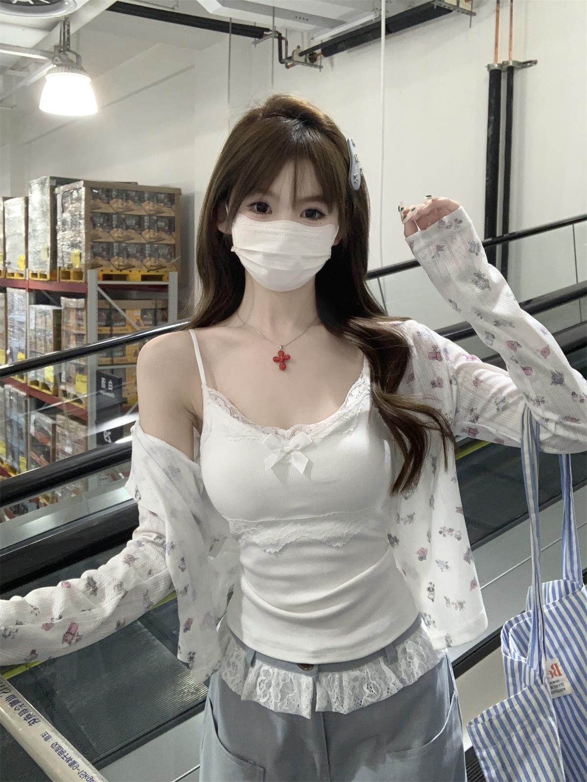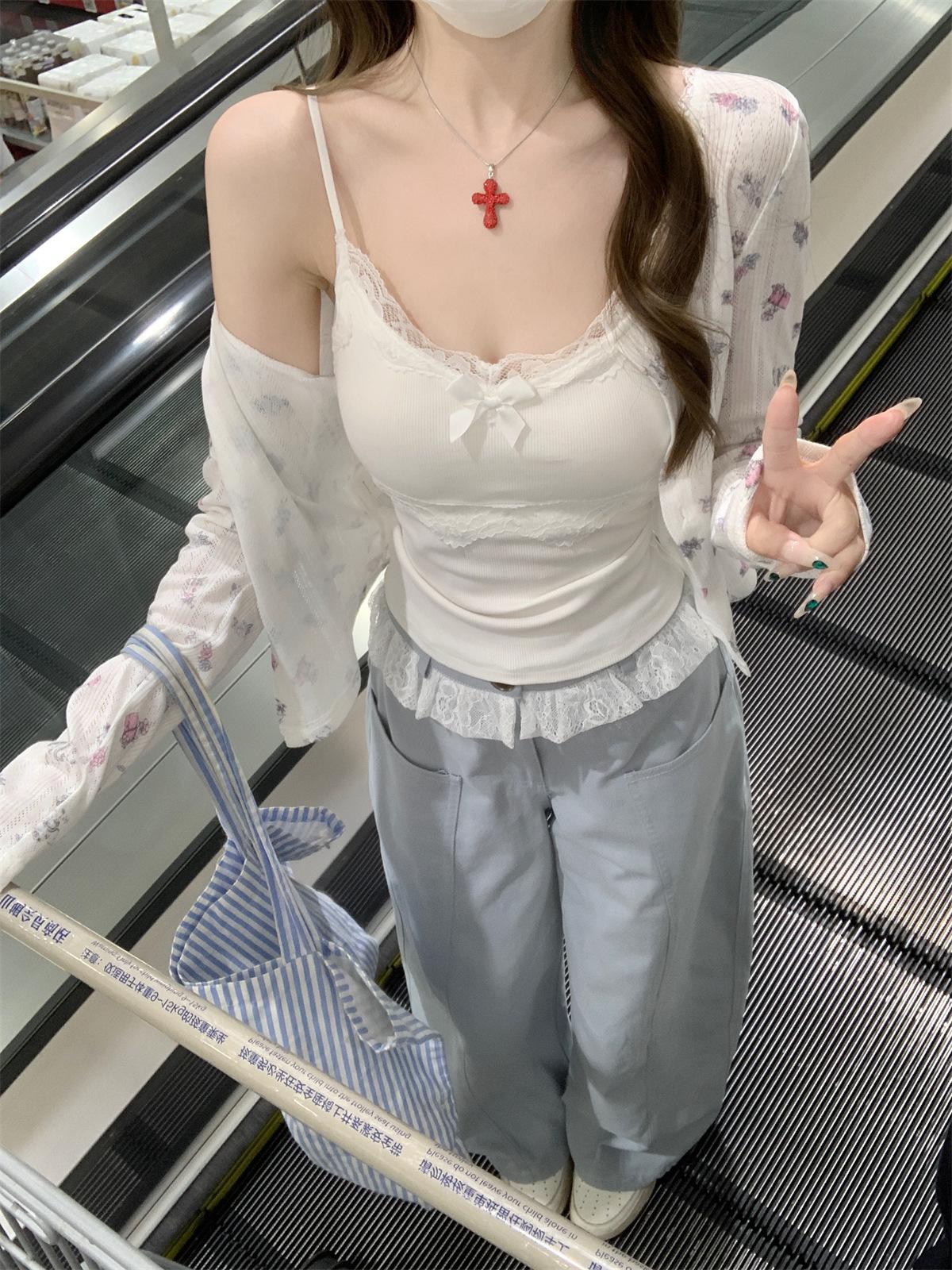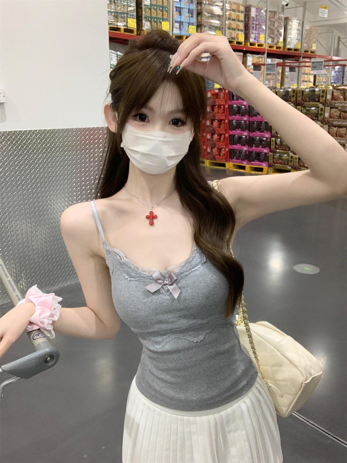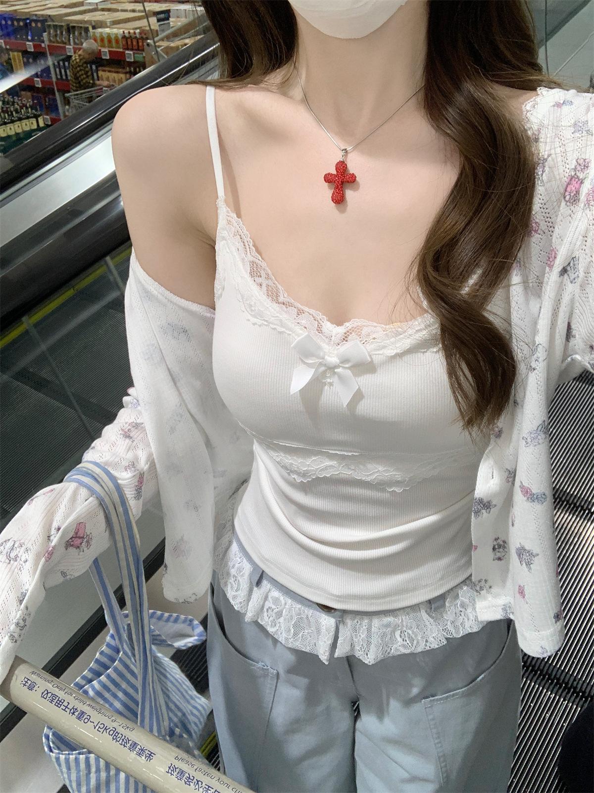 Francés 2025 Verano Estilo Coreano Deseo Puro Slim Costuras de Lazo Encaje Dulce Camiseta Interior de Tirantes