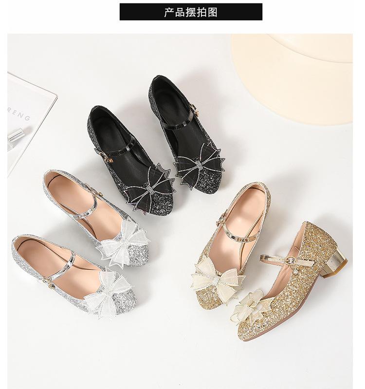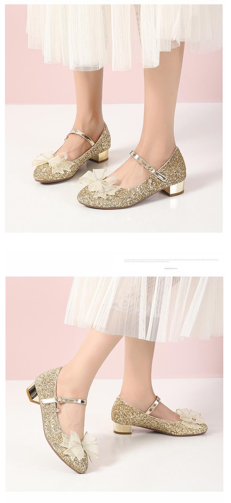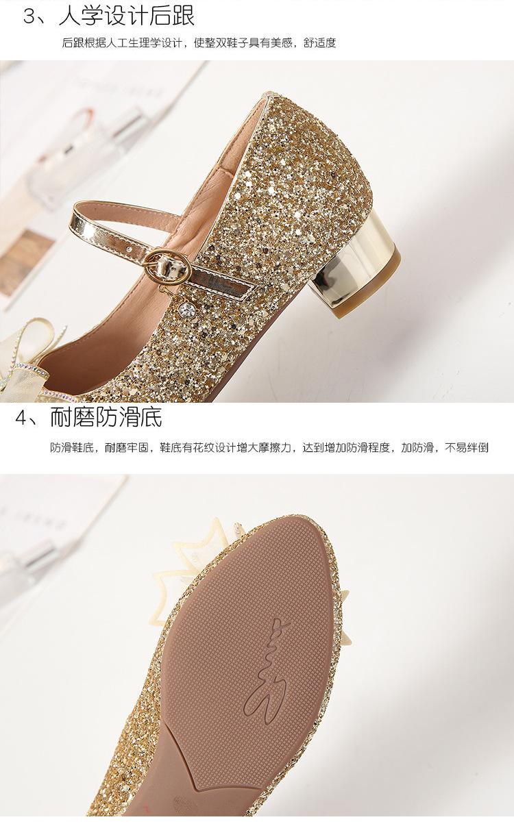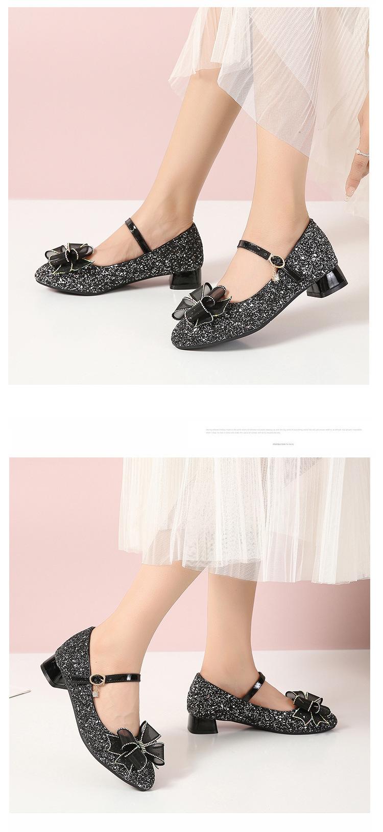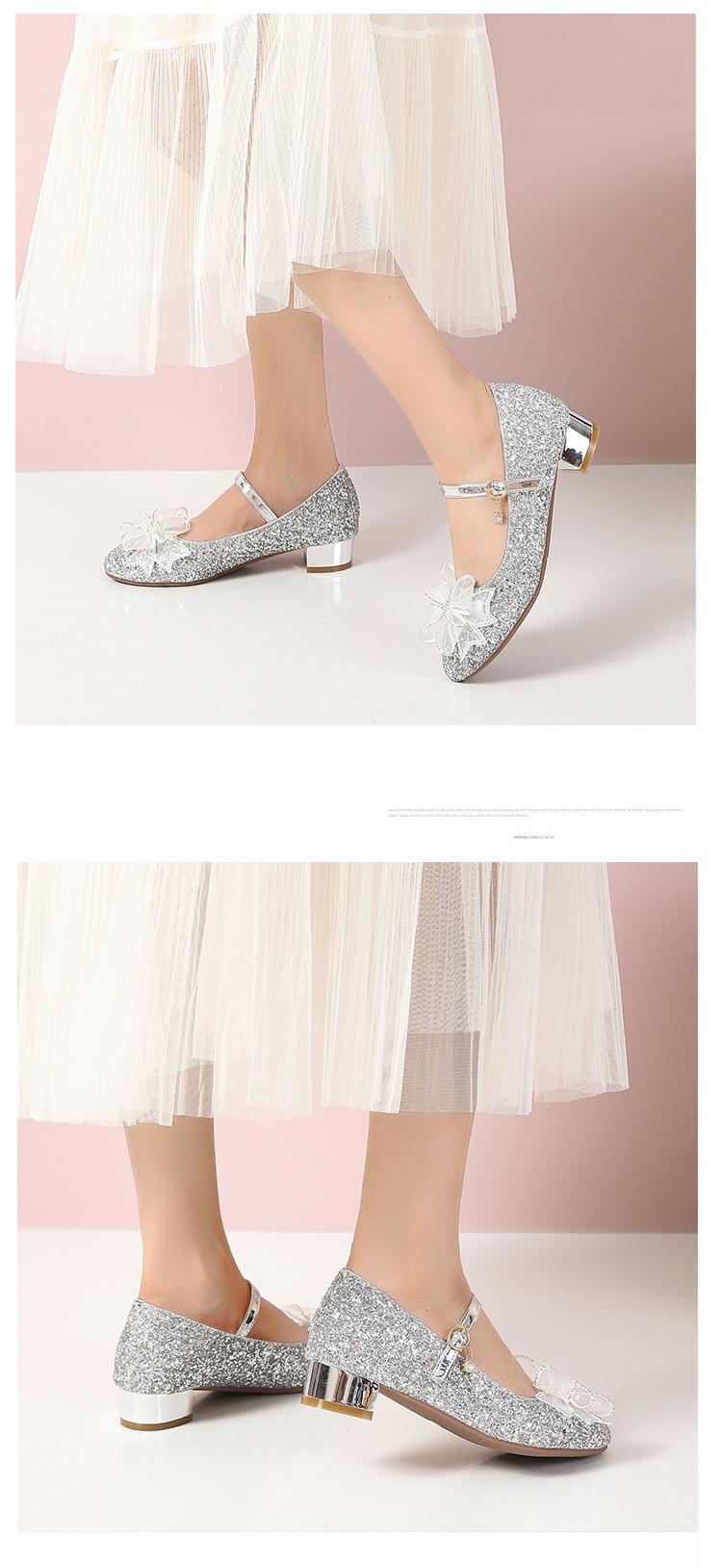 Zapatos de princesa para niñas Primavera y Otoño nuevos zapatos de una sola capa para niños medianos y grandes, estudiante, actuación, anfitrión, pasarela, tacones altos de cristal para niños