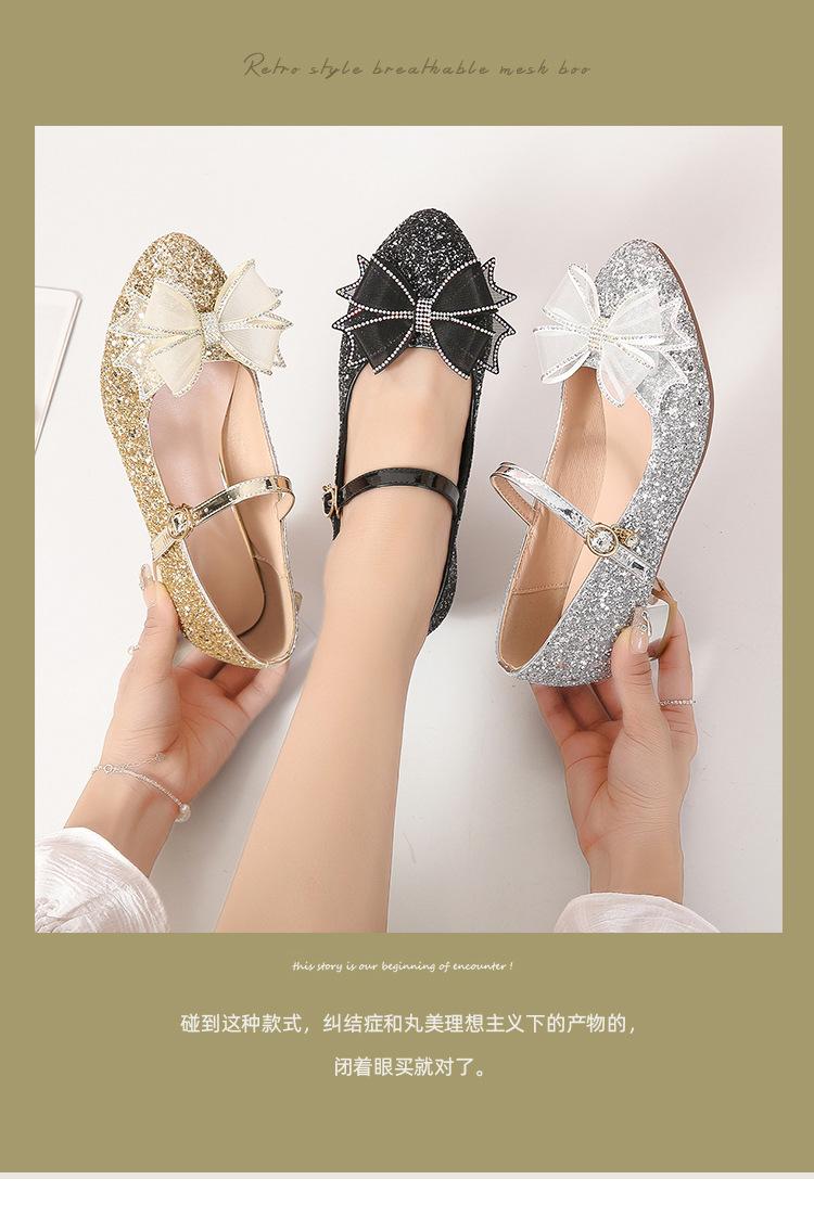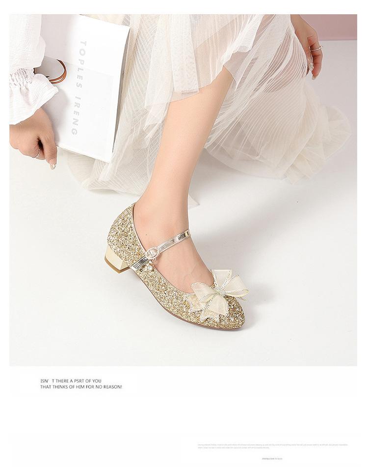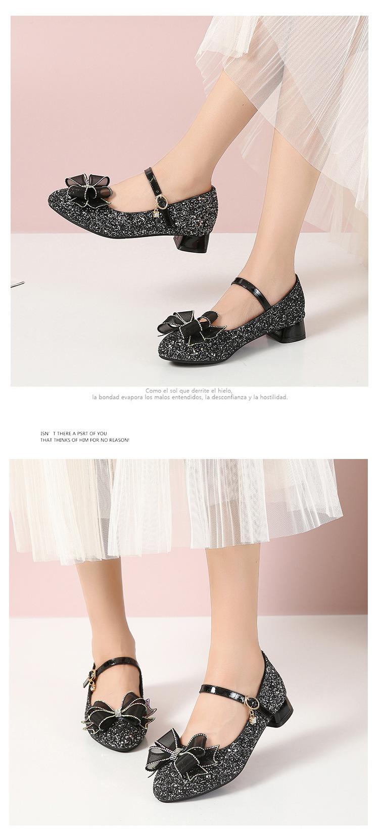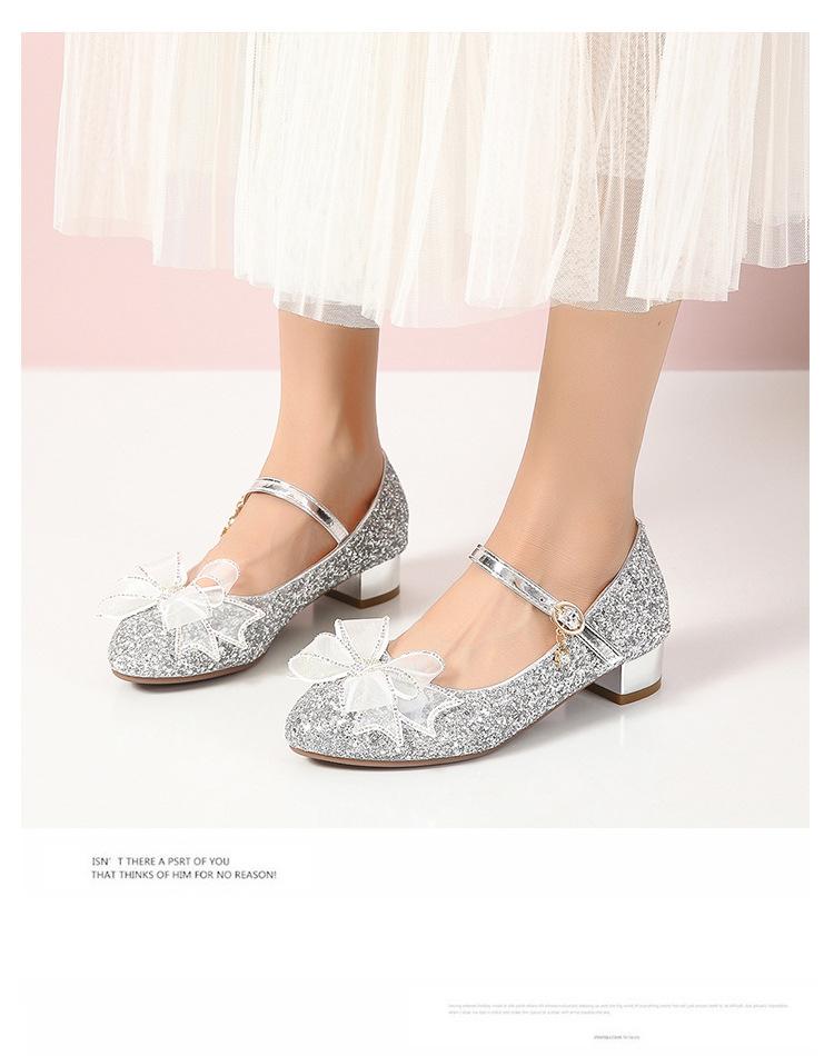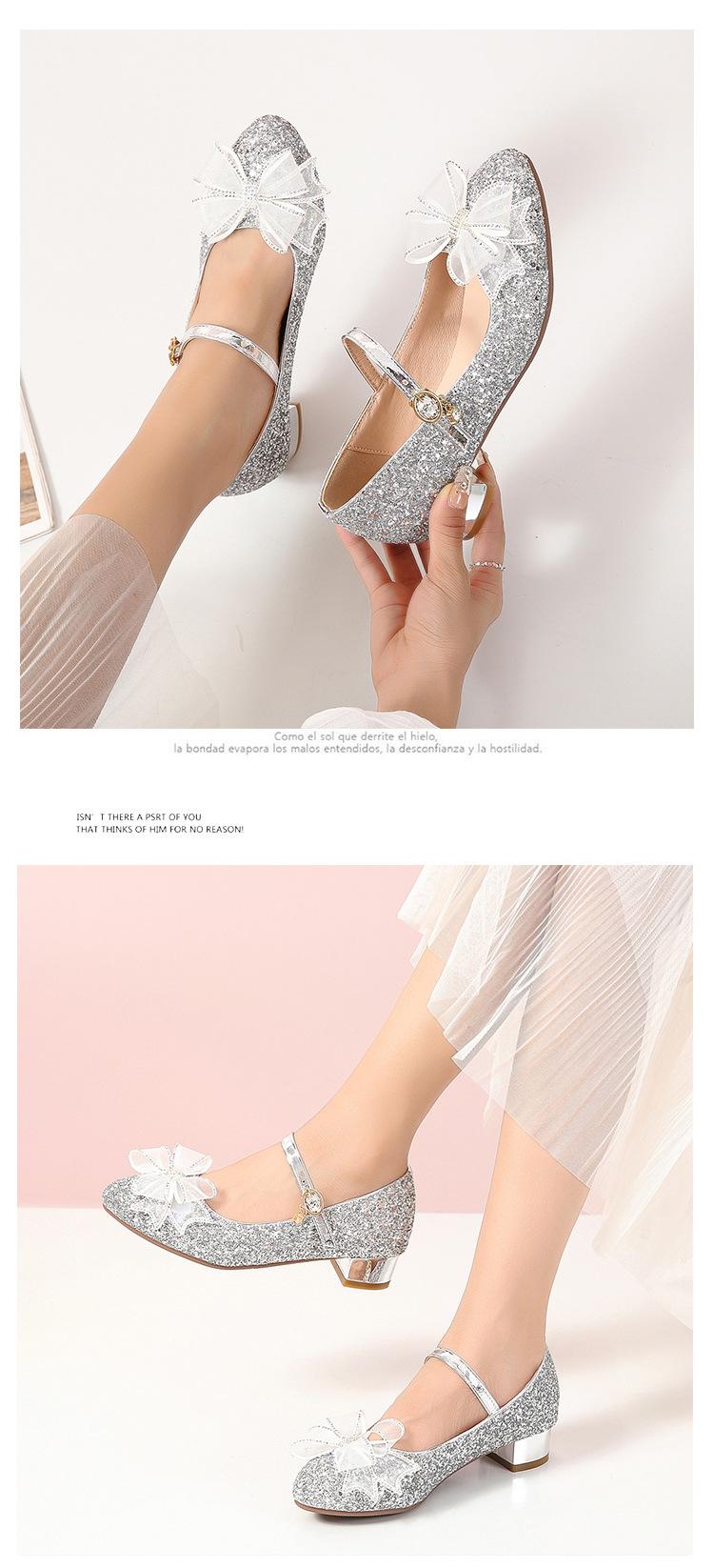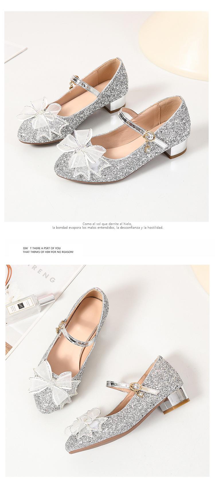 Zapatos de princesa para niñas Primavera y Otoño nuevos zapatos de una sola capa para niños medianos y grandes, estudiante, actuación, anfitrión, pasarela, tacones altos de cristal para niños
