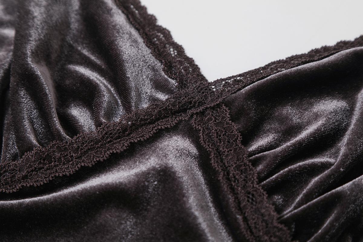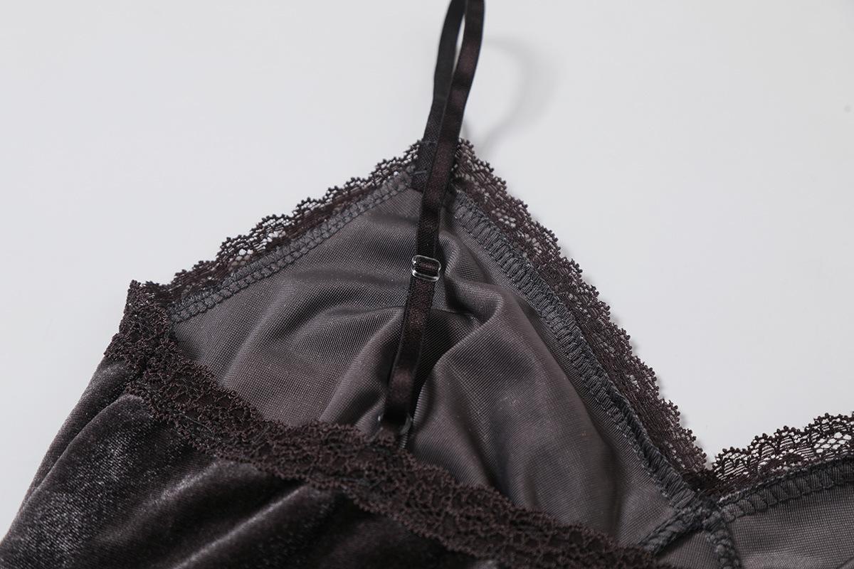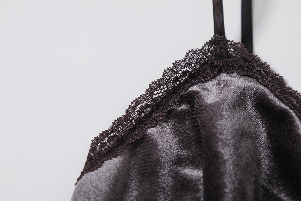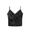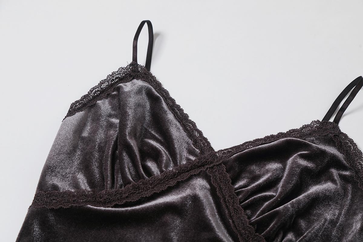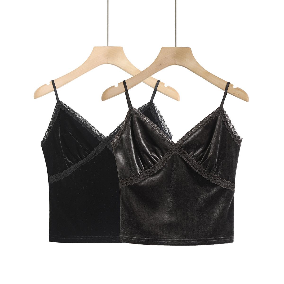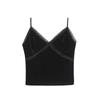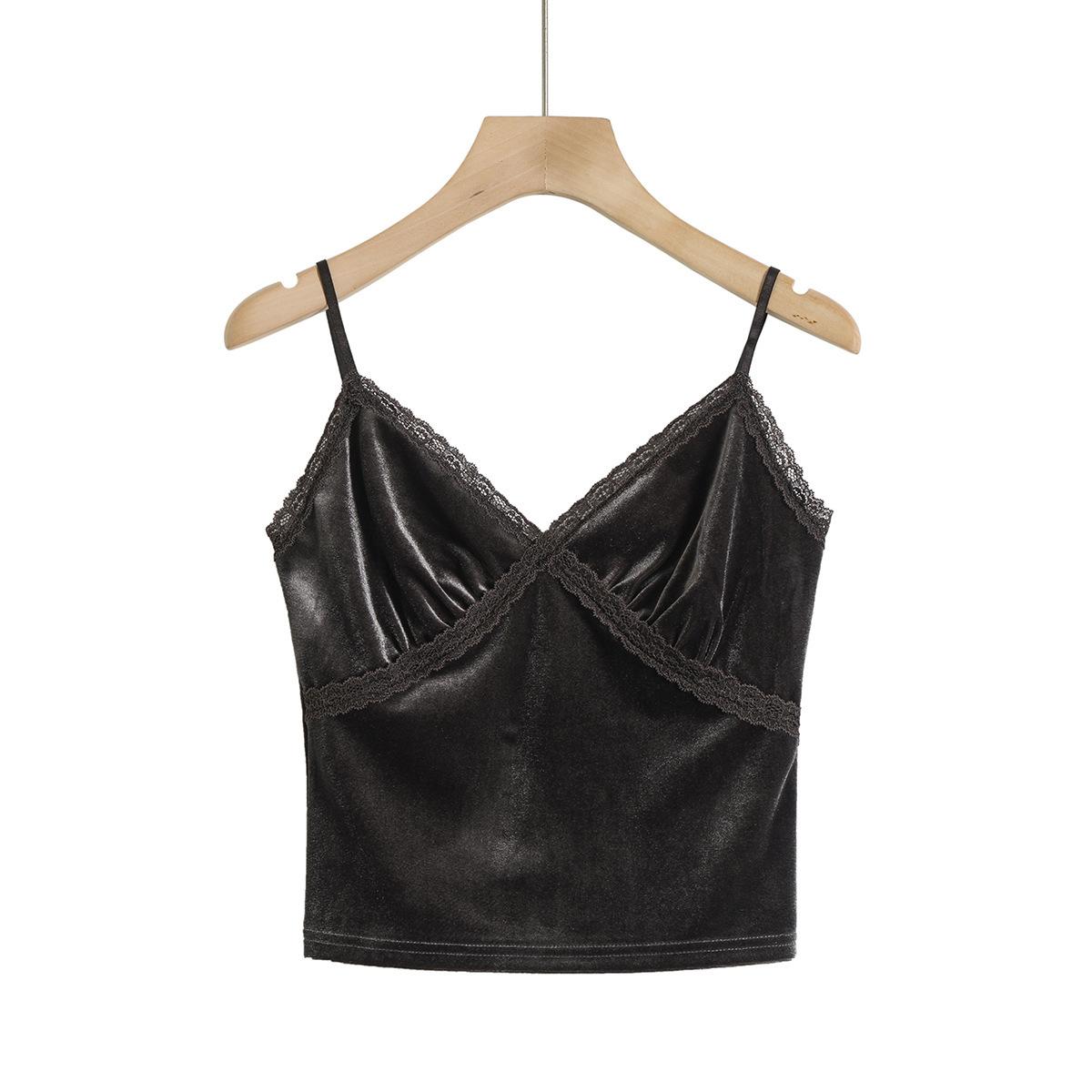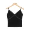 Estilo Francés Sexy Cuello en V Profundo Terciopelo Sin Espalda Sin Mangas Top Corto Camisola Interior de Encaje para Exterior de Mujer