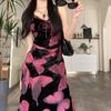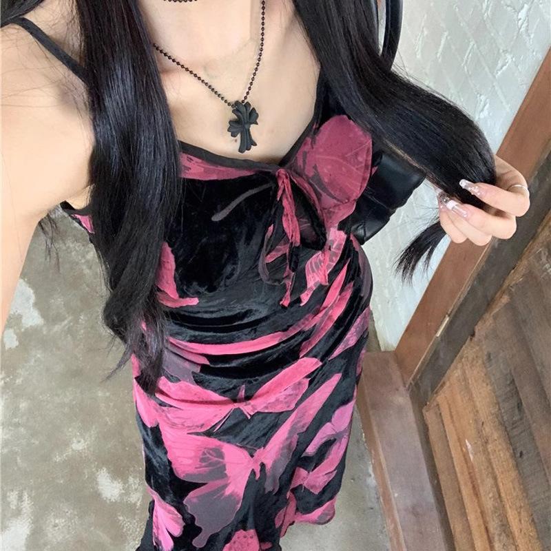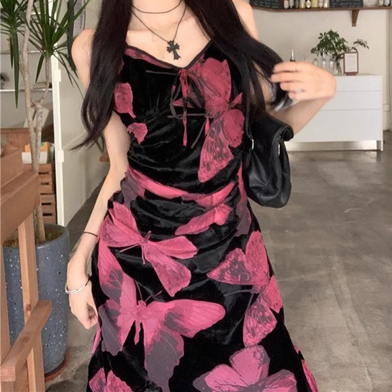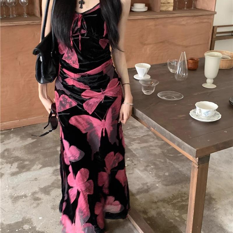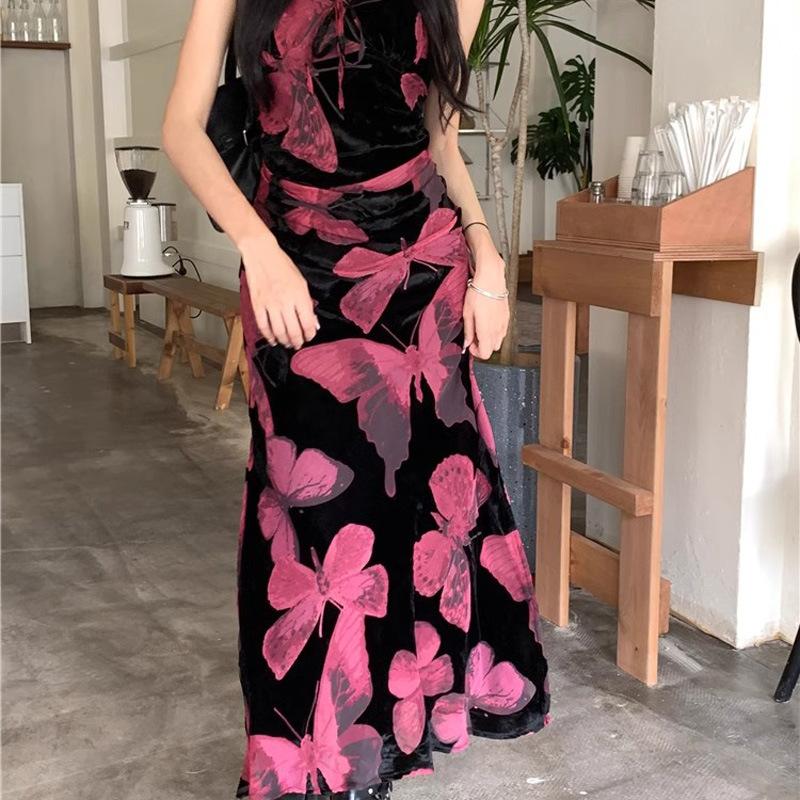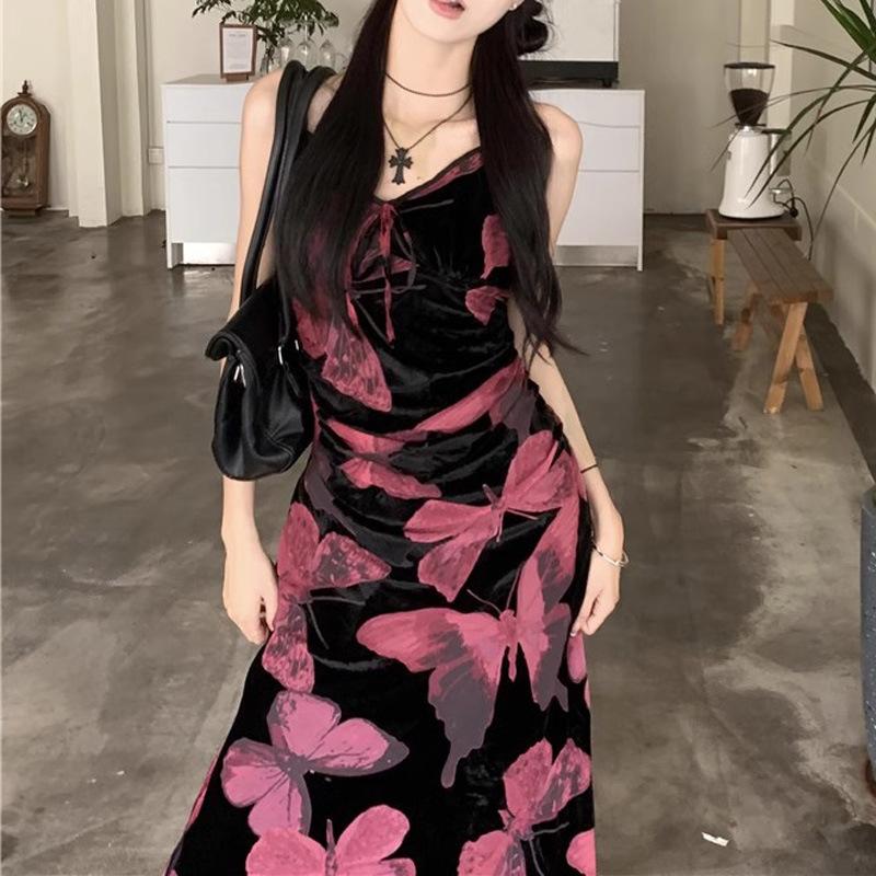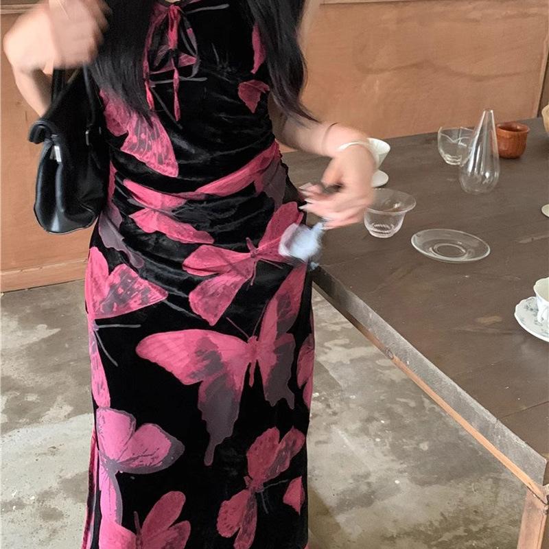 Vestido elegante de estilo francés con estampado de mariposas negras para mujer, verano 2025, nuevo vestido largo ajustado y adelgazante, moderno
