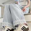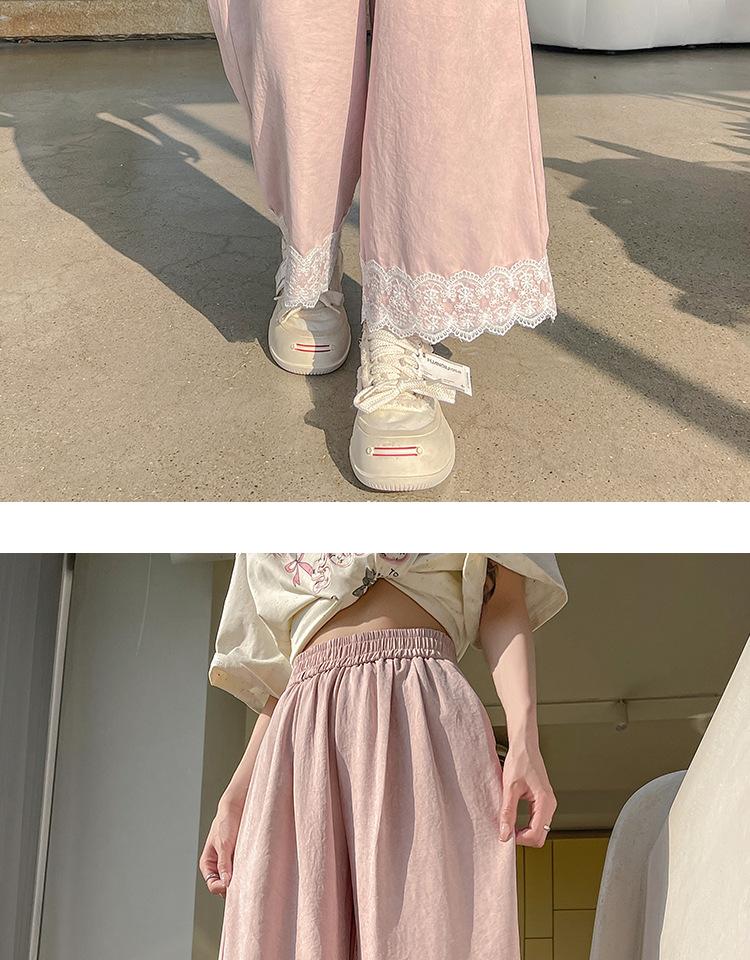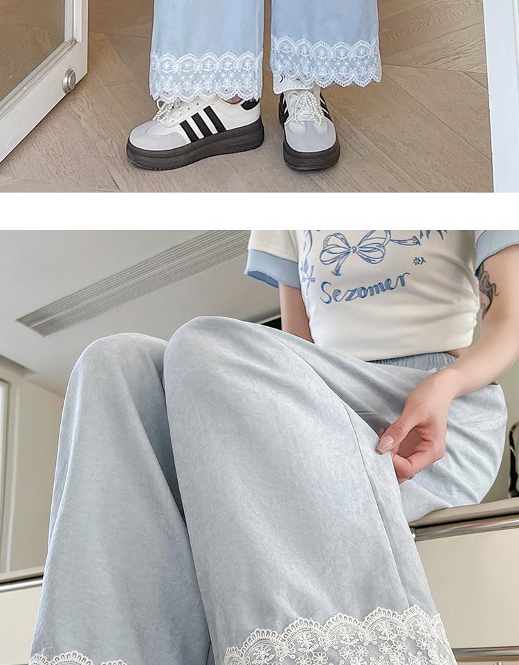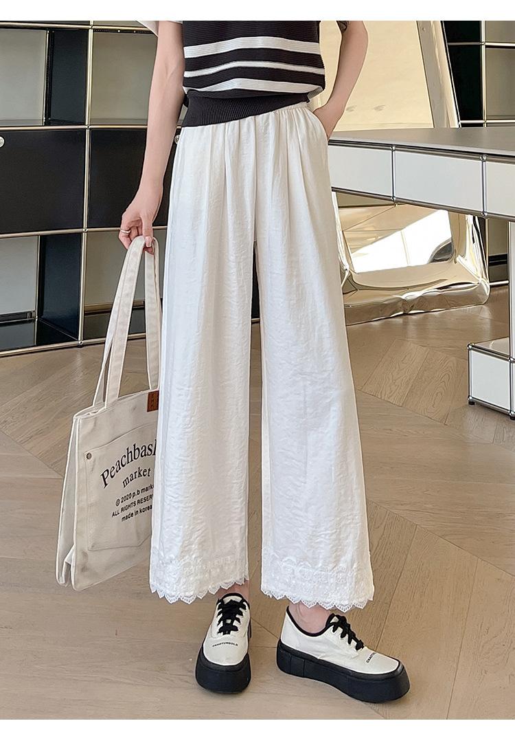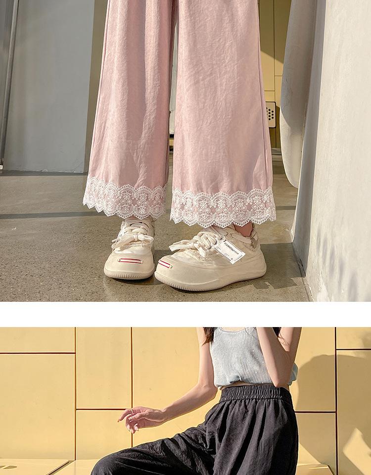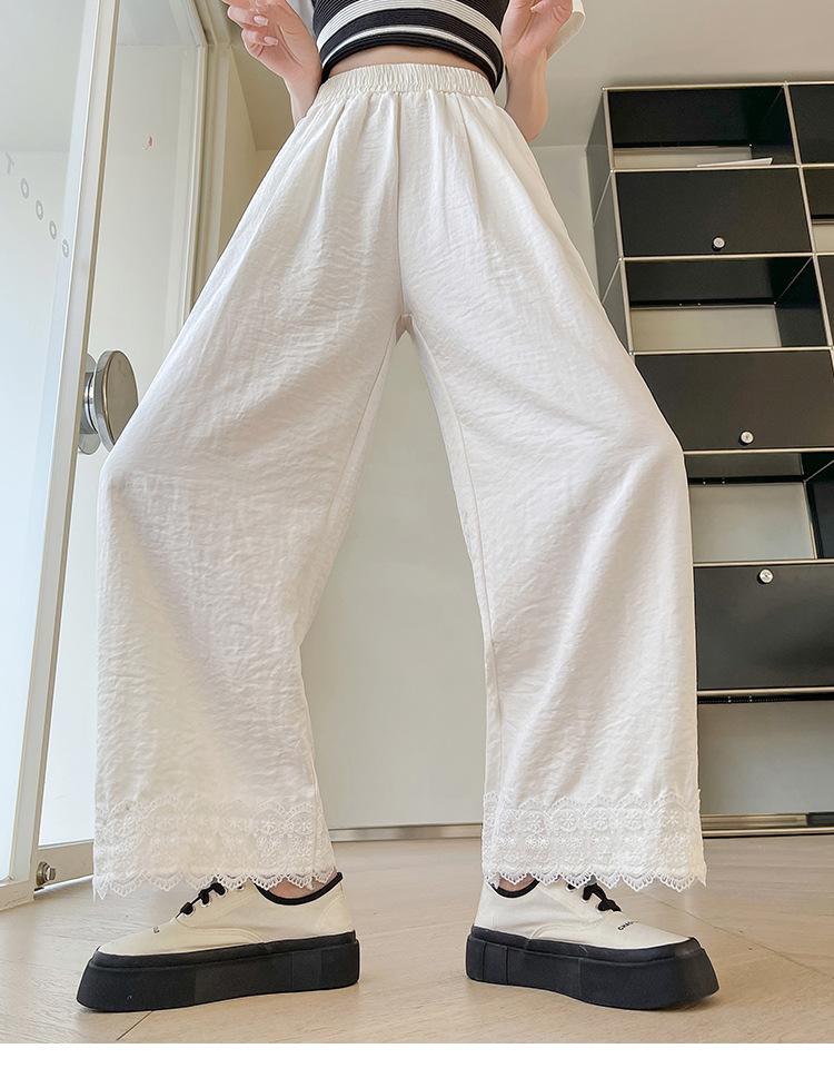 Lazy Lace Encaje Pierna Ancha Niña 2025 Verano Cintura Alta Rectos Hielo Seda Leche Pantalones Pequeños Casuales