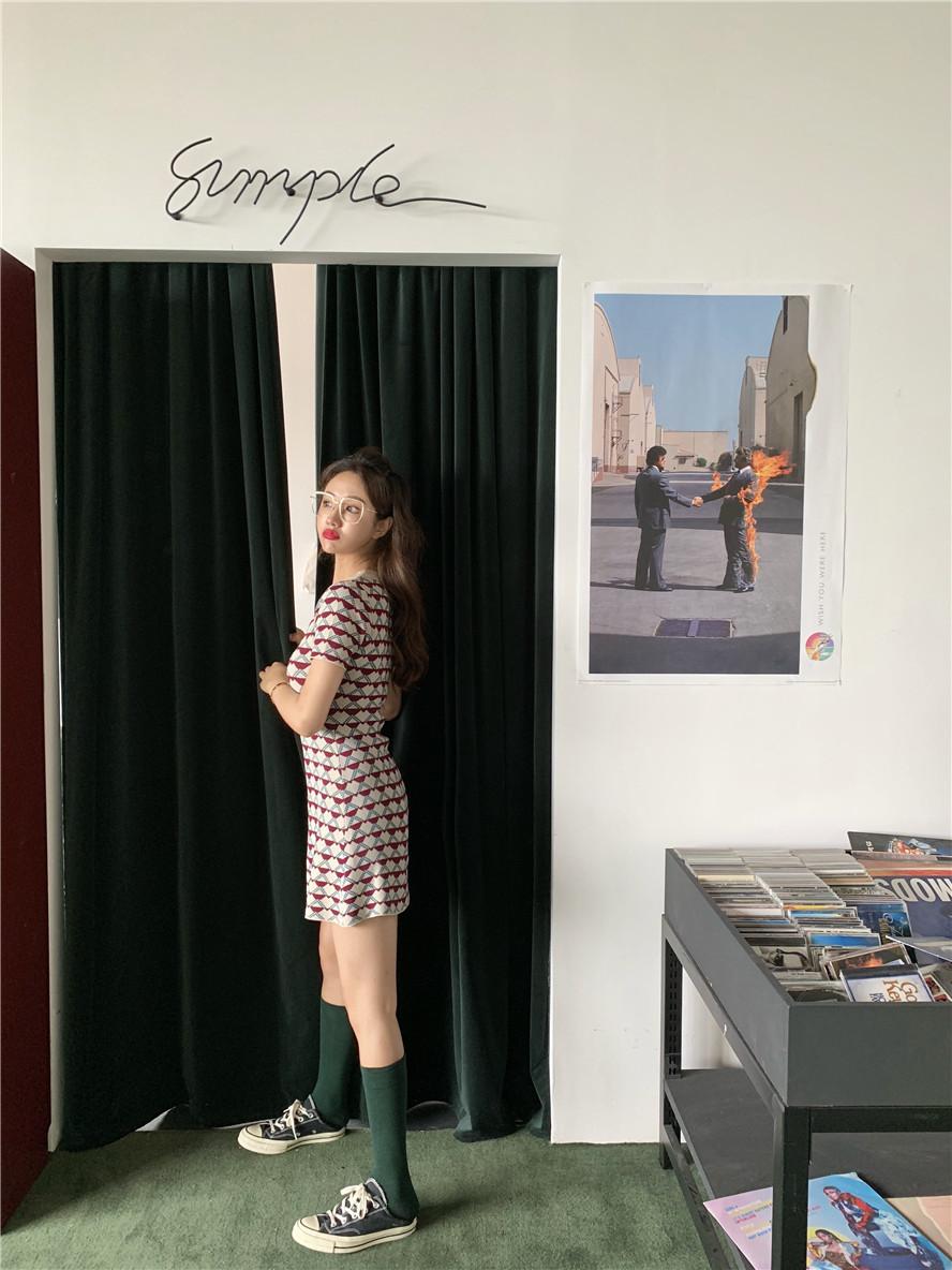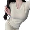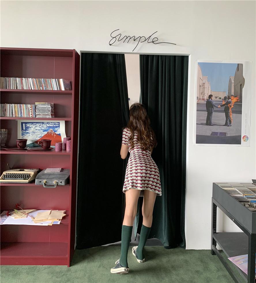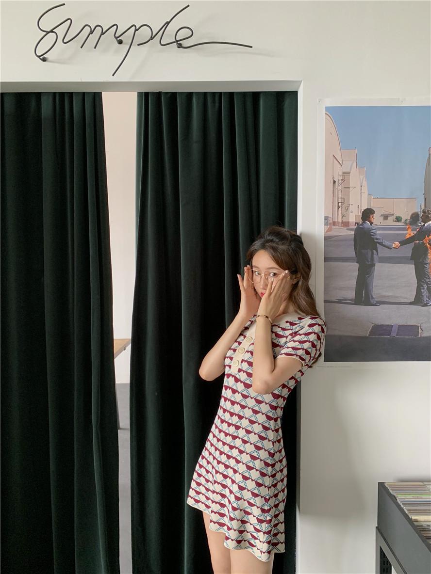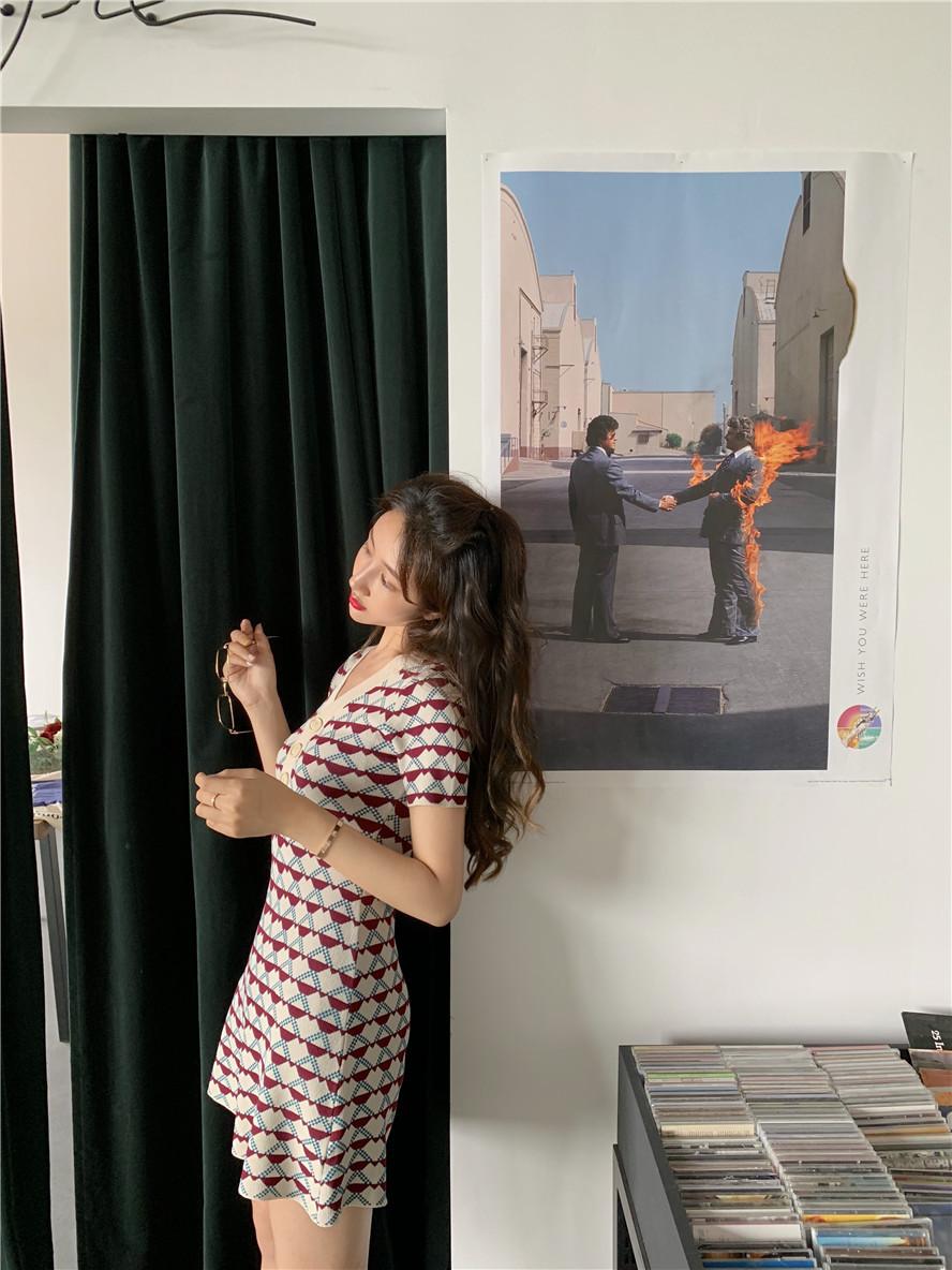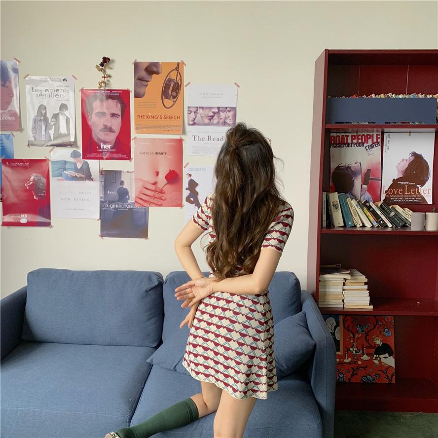 Vestido de Punto de Manga Corta Delgado y Elegante para Mujer Cuello en V Delgado Cintura Alta Falda Corta Verano y Otoño 2024 Nuevo Falda Línea A