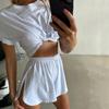 Traje de pijama casual europeo y americano transfronterizo 2025 Verano Diseño de color sólido Manga corta Shorts Pijama para el hogar para mujer