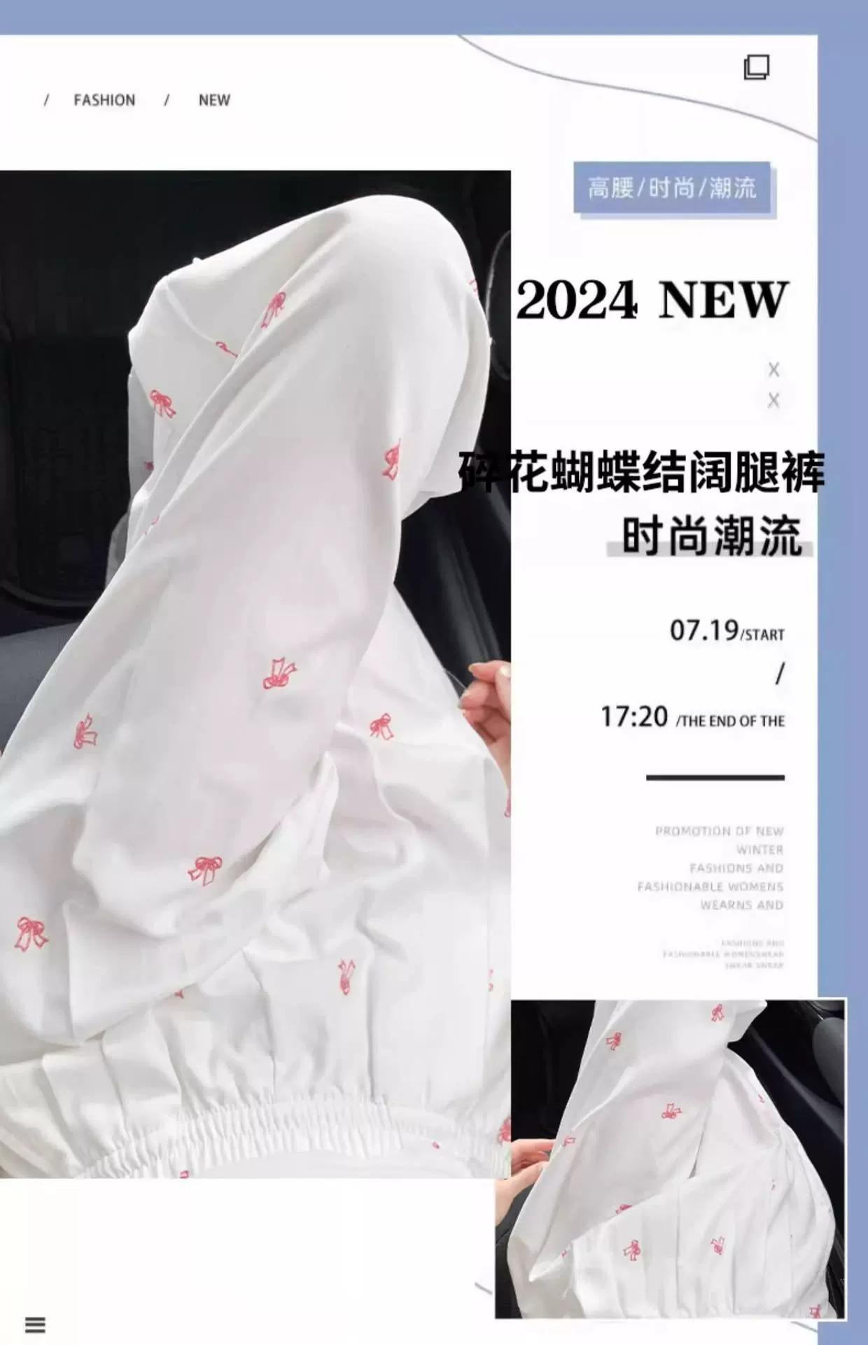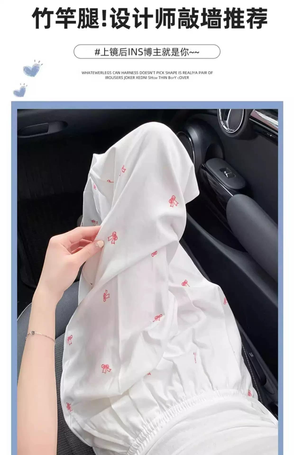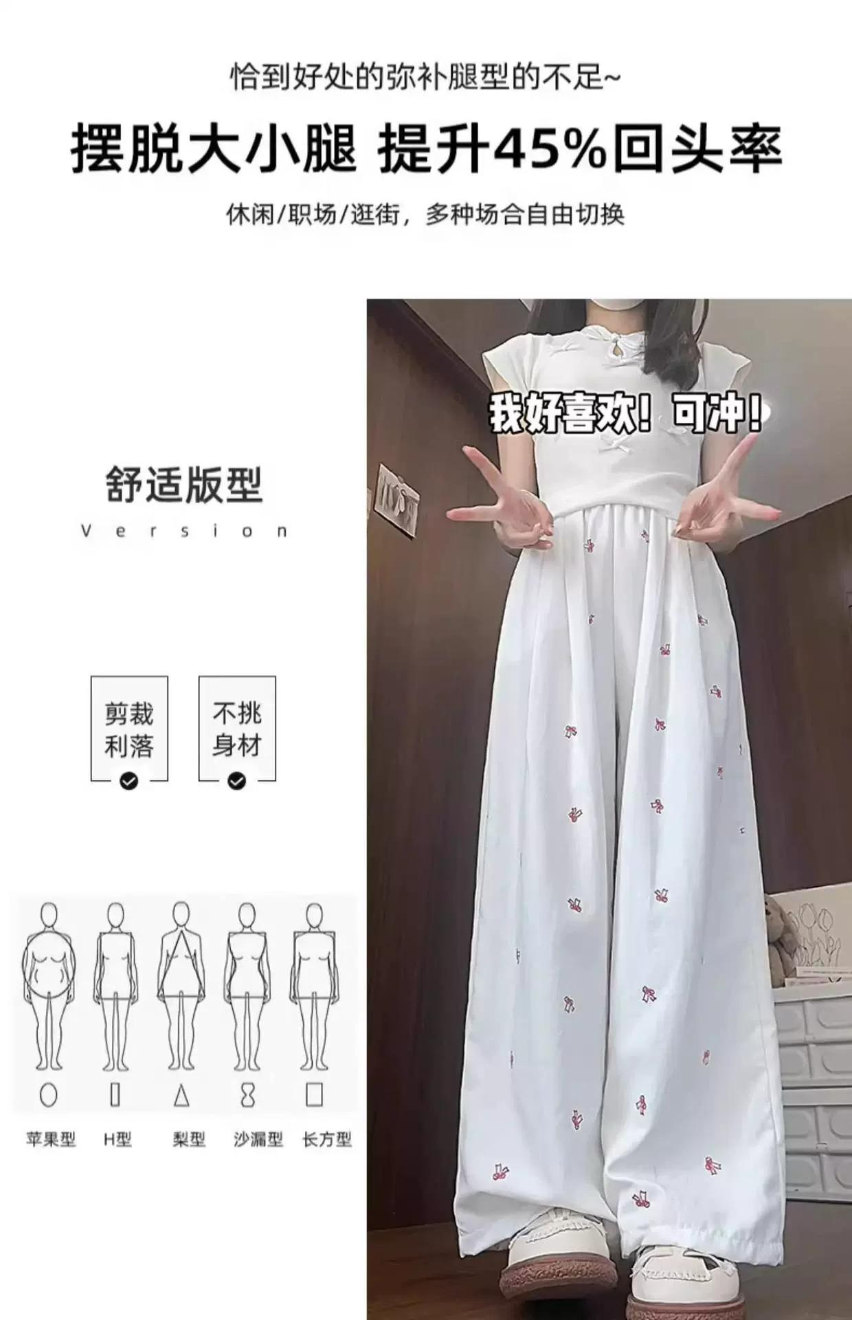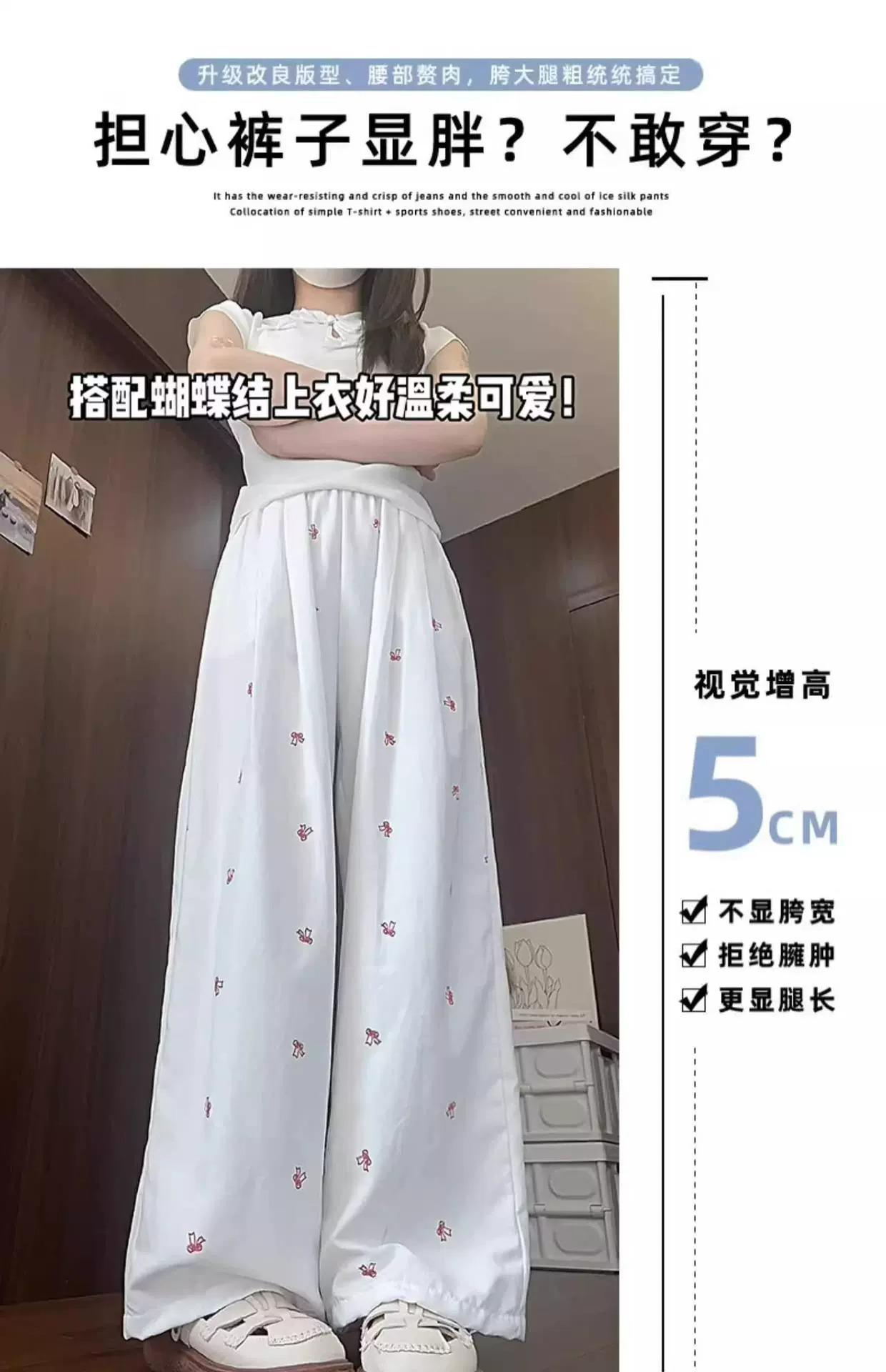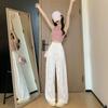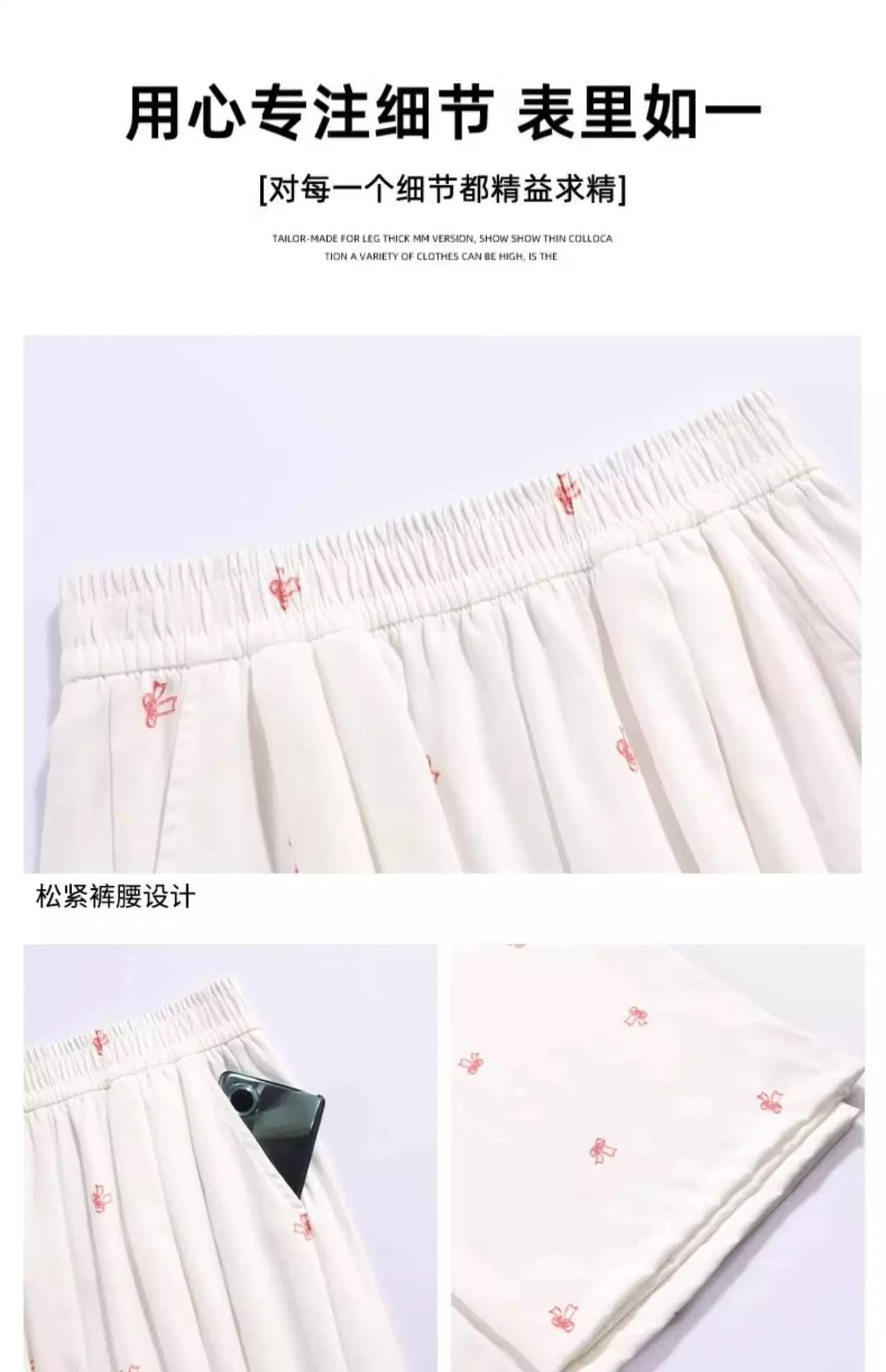 Pantalones Deportivos Florales Blancos Pequeños para Mujer Verano 2025 Nuevos Yamamoto Casual Lazo Seda Helada Pierna Ancha 145
