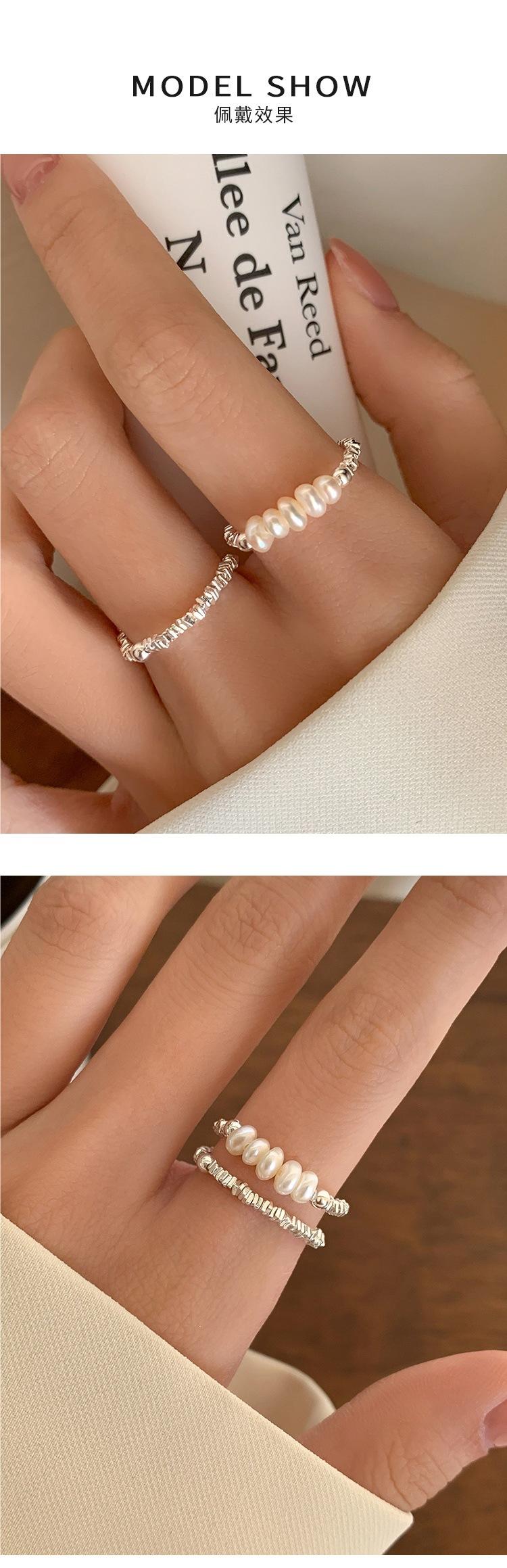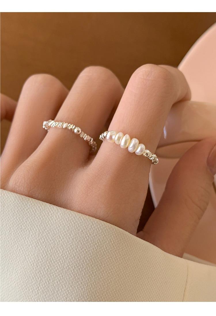 Dulces Anillos Cuadrados Apilables de Perla Falsa para Mujer, Modernos y Versátiles, Anillos Elásticos Creativos de Moda para el Dedo Índice