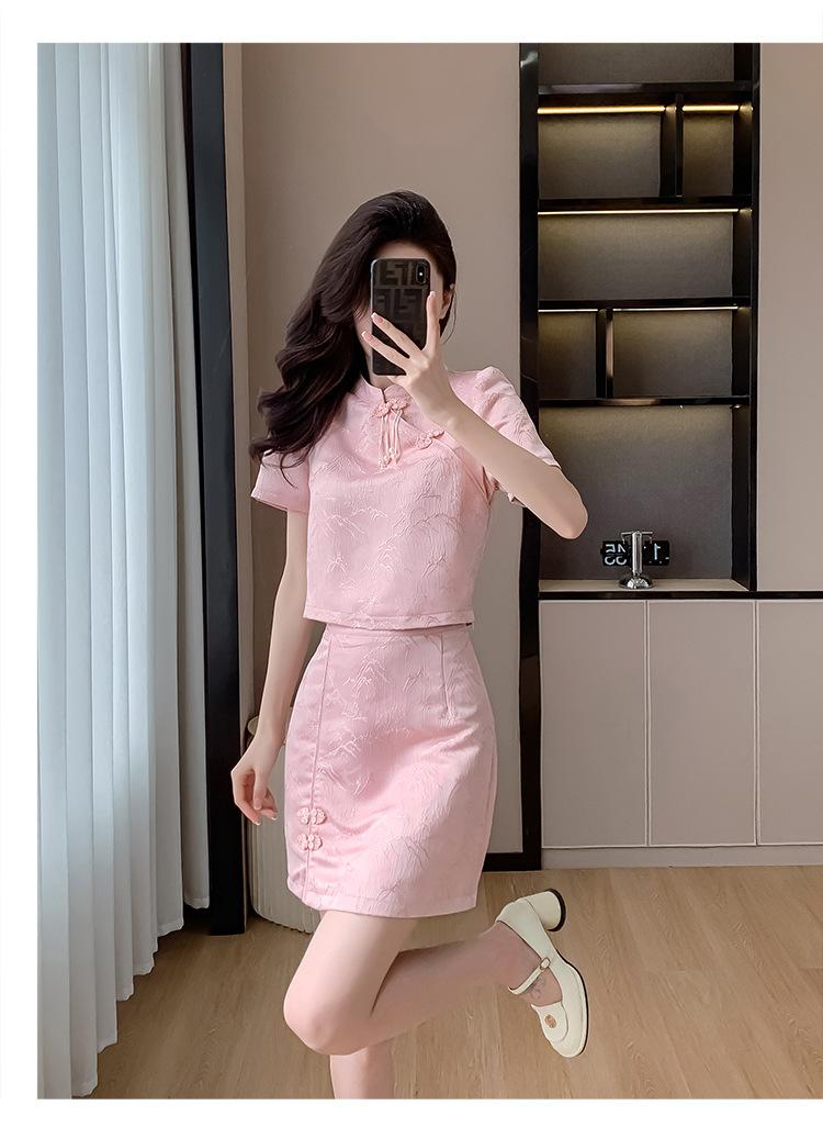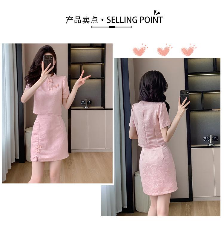 Traje de Lujo Ligero de Estilo Nacional Chino Nuevo 2024 Falda Jacquard de Verano para Mujer Falda Pequeña Elegante Conjunto de Dos Piezas