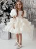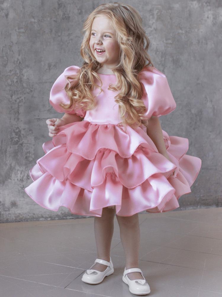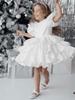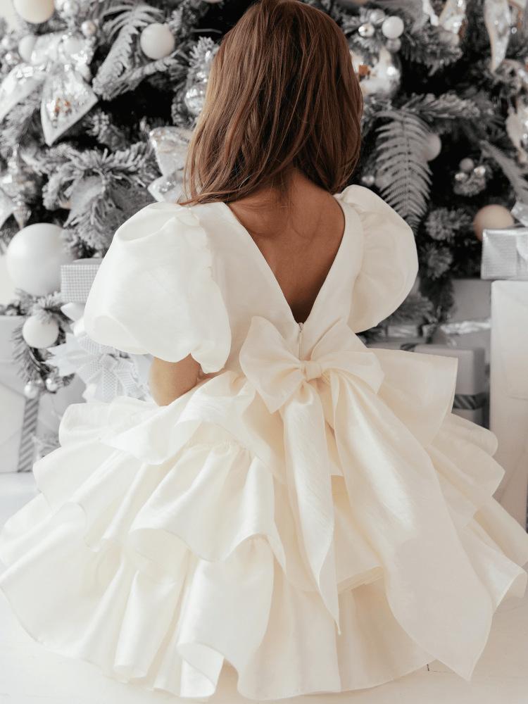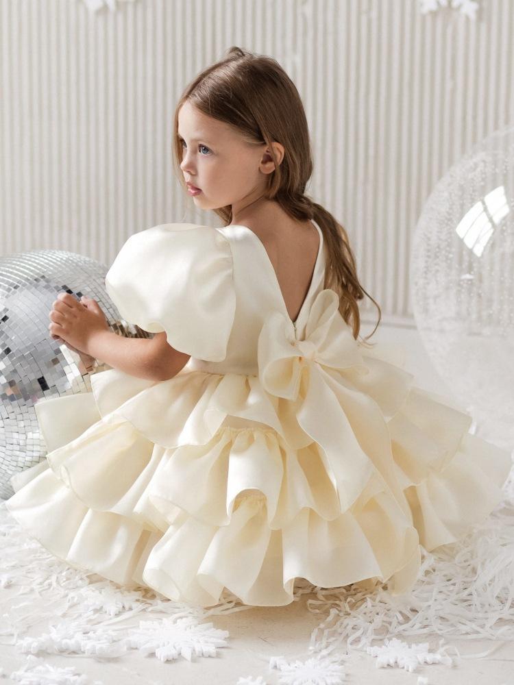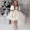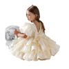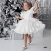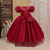Vestido de Niña de las Flores Transfronterizo Nuevo Manga Abullonada AliExpress Lazo Manga Corta Boda Fiesta de Cumpleaños Vestido de Niños
