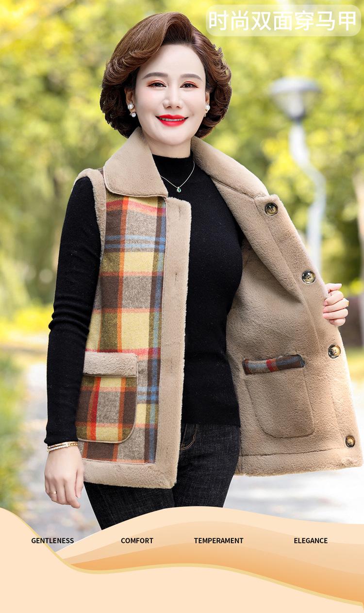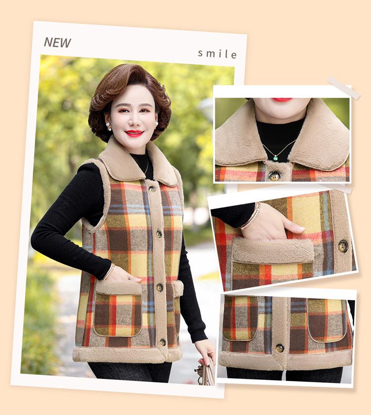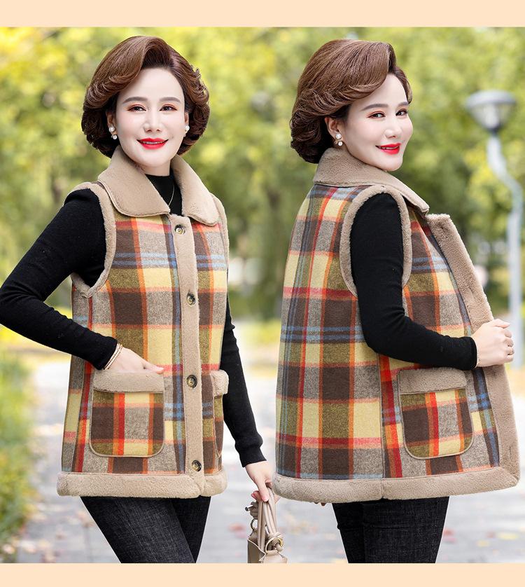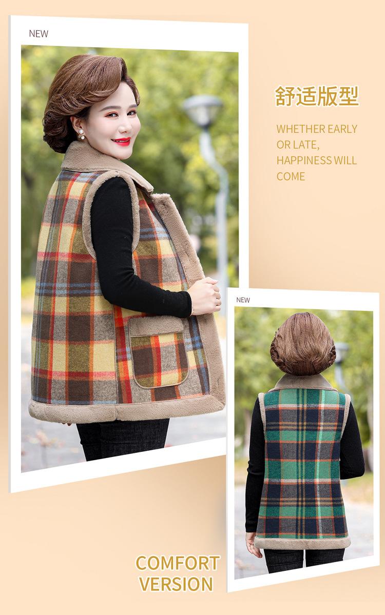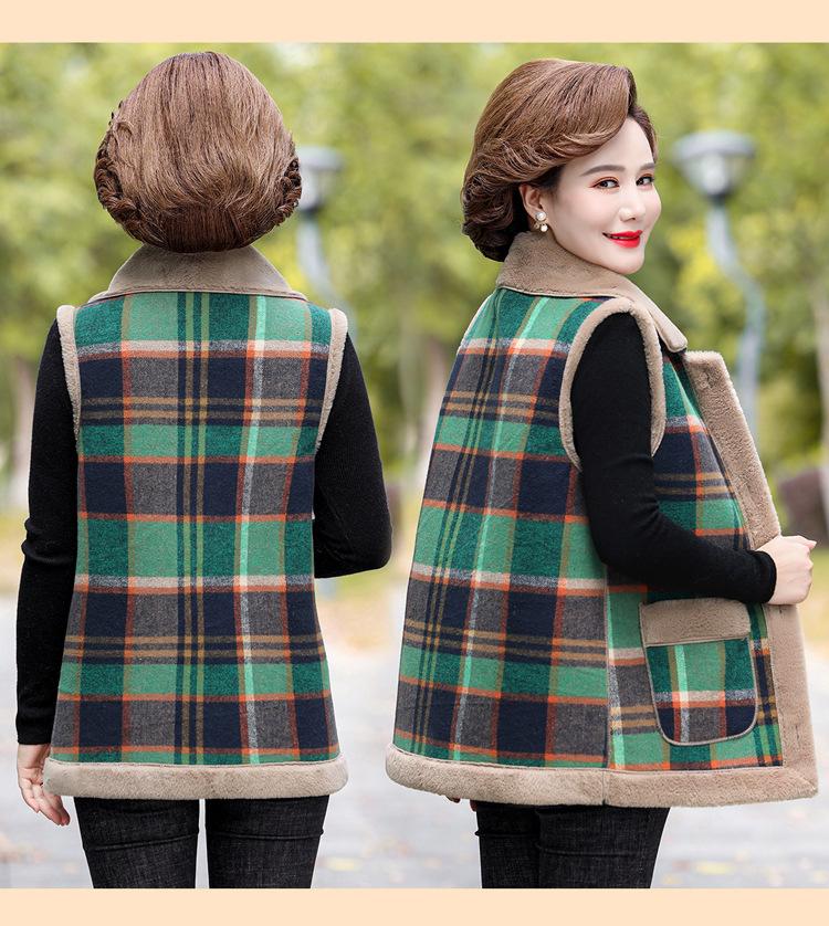 2022 otoño e invierno Nuevo Madre más terciopelo a cuadros moda chaleco acolchado de doble vista estilo extranjero chaleco cálido