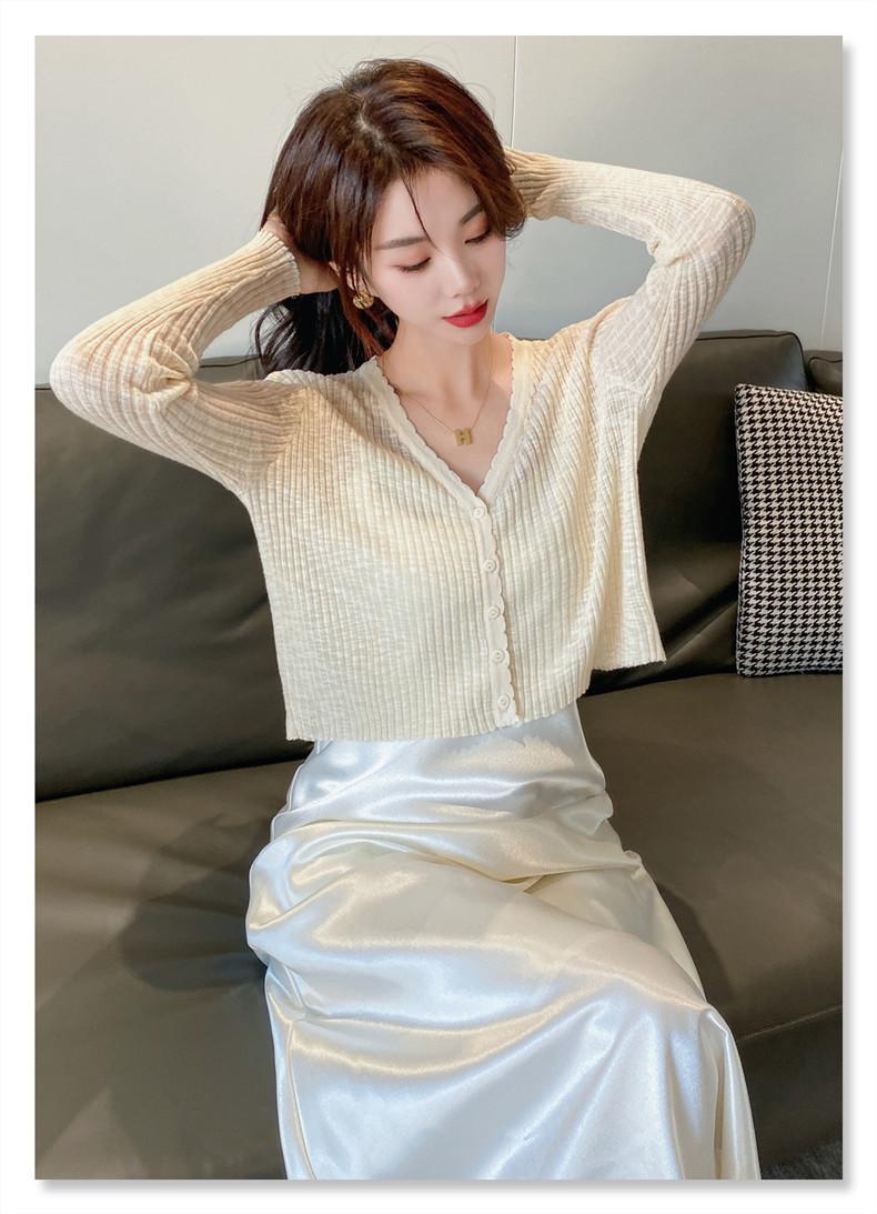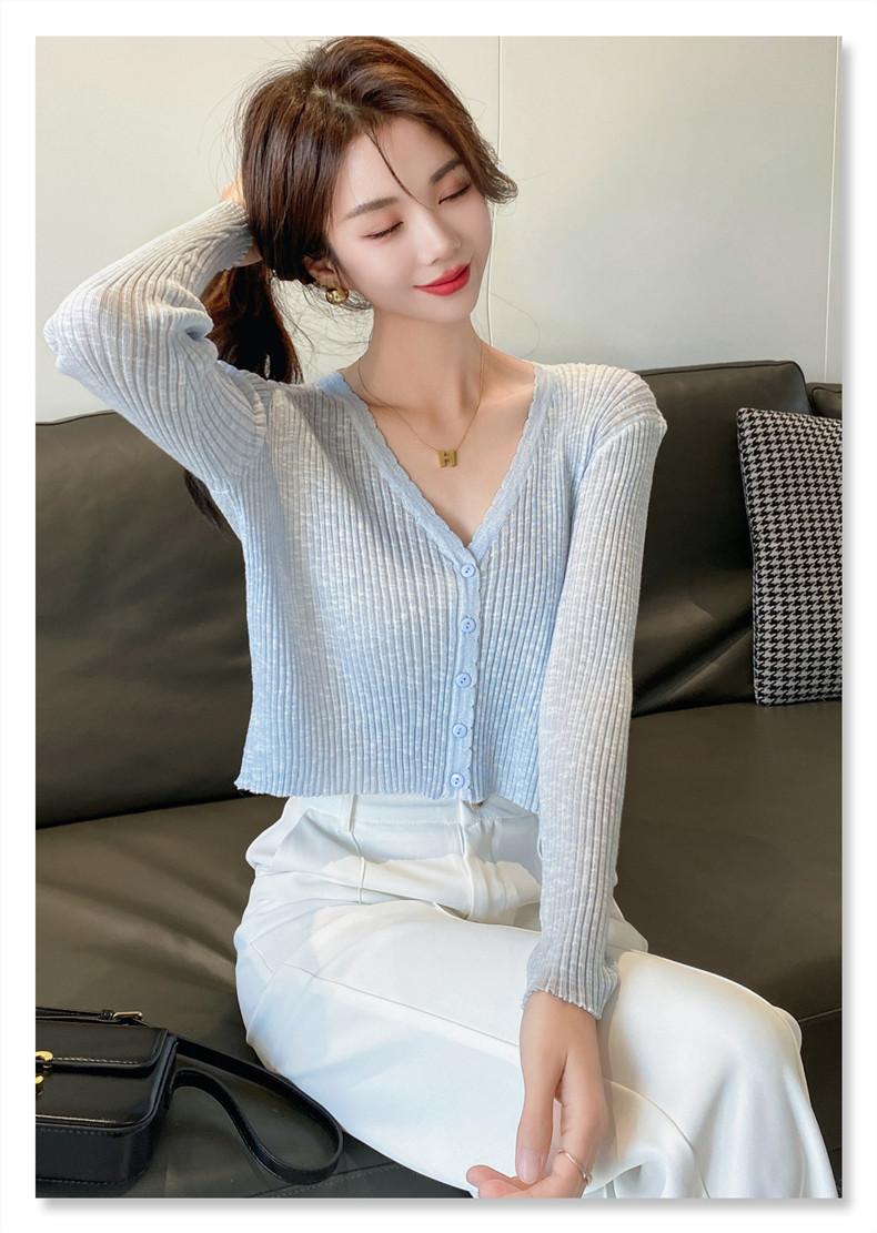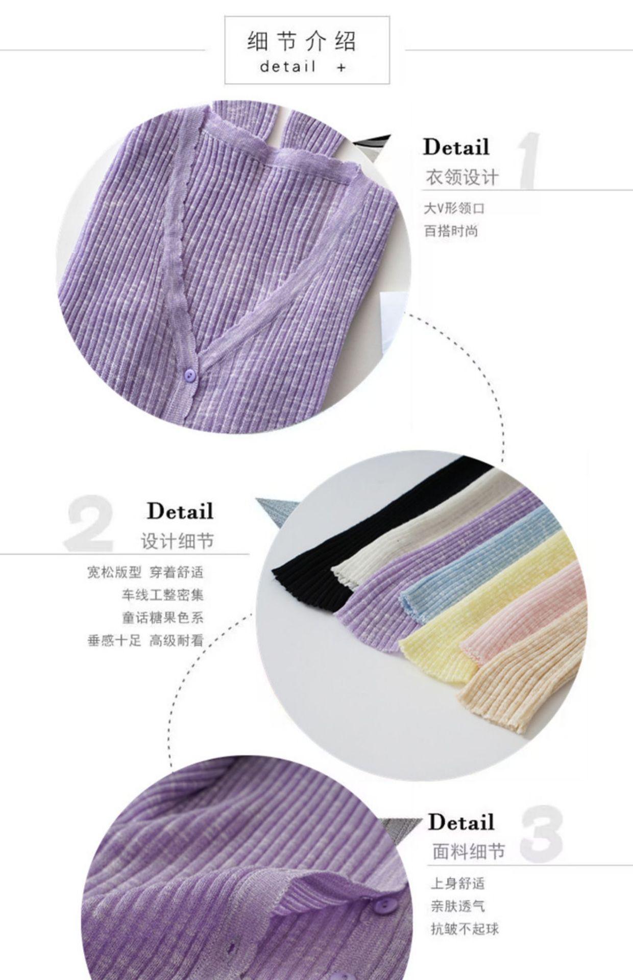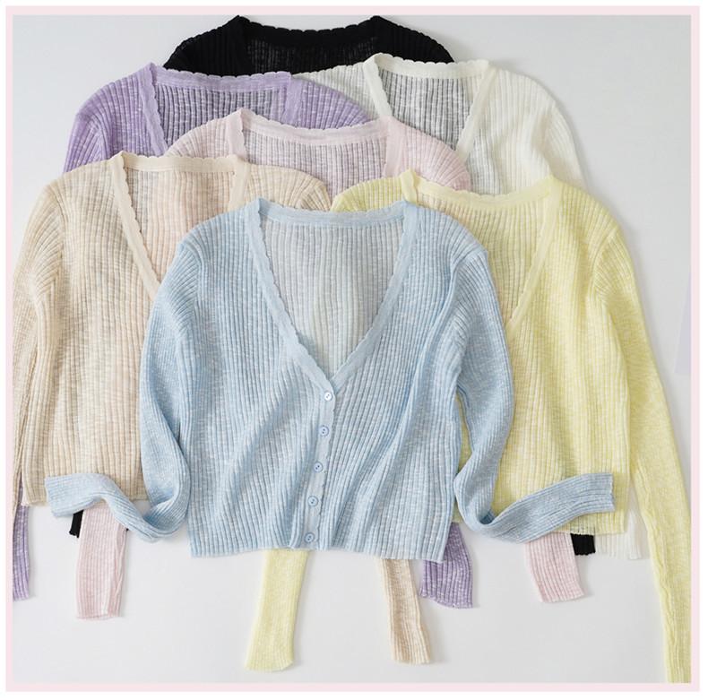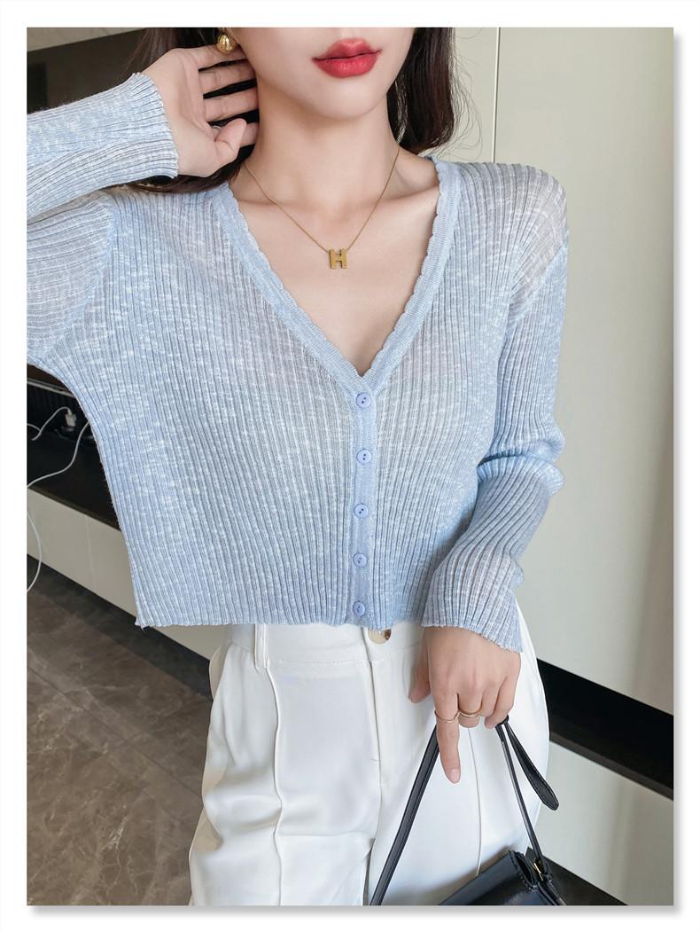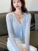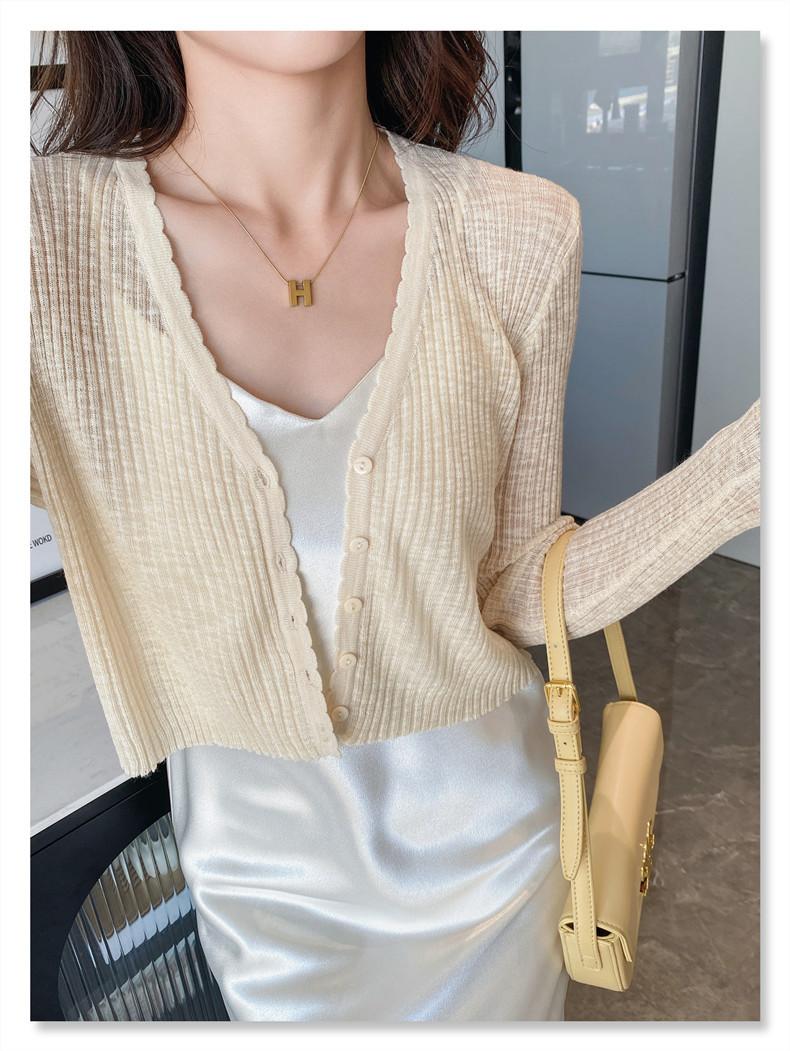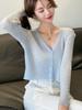 Chaqueta Cárdigan Tejida de Seda de Hielo con Cuello en V para Mujer Protección Solar Delgada Verano Nueva Chal Manga Larga Corta Camisa Top para Aire Acondicionado