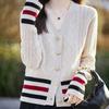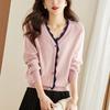 Cárdigan de mujer con cuello en V, otoño e invierno 2024, nuevo suéter corto holgado de estilo occidental, estilo coreano, elegante abrigo de punto.