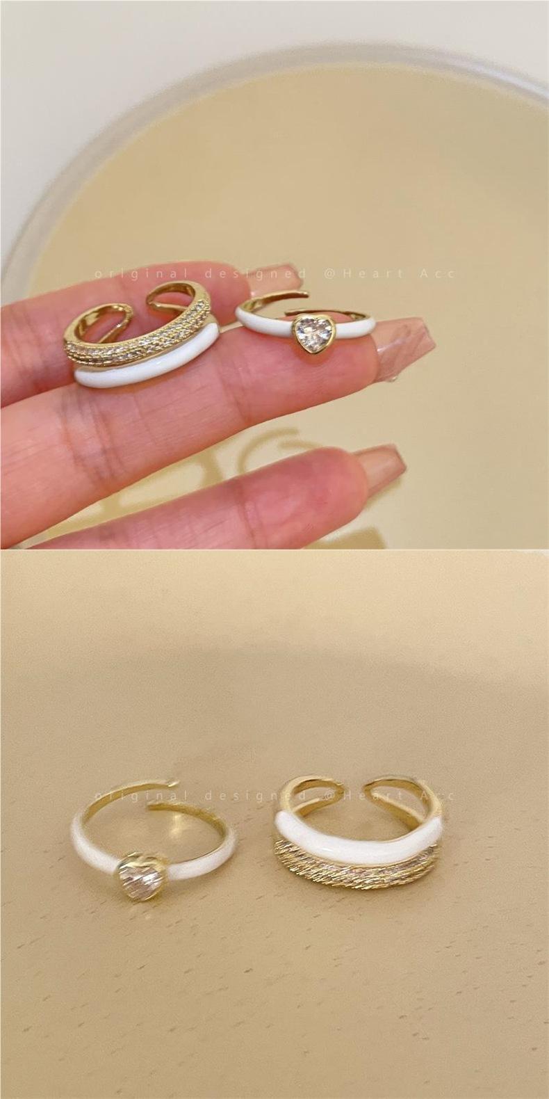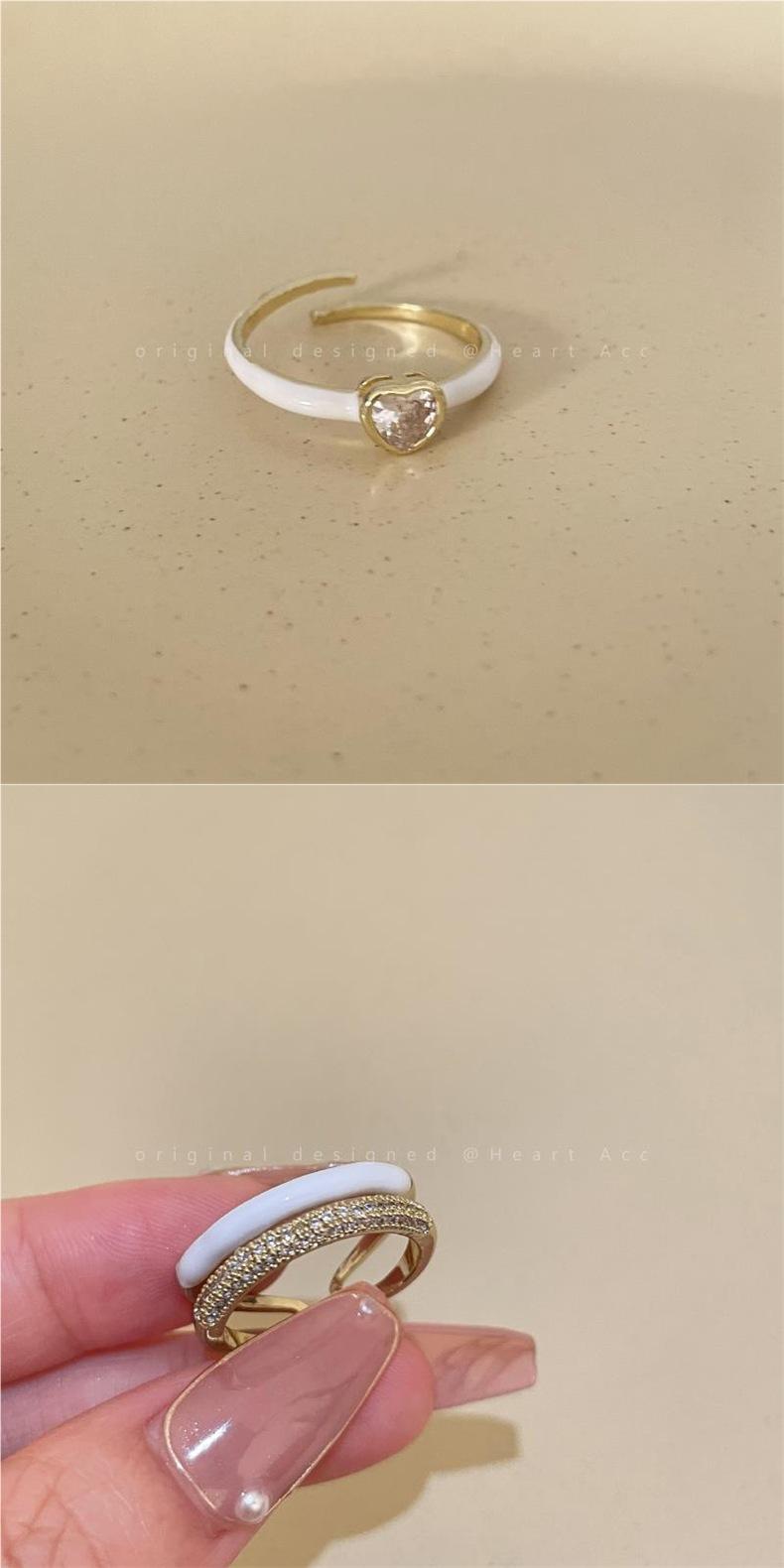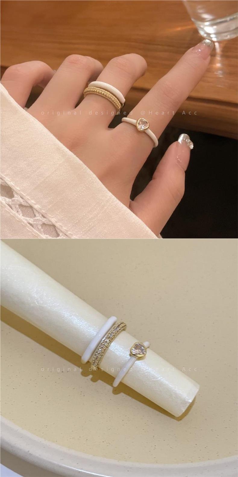 Anillo geométrico de doble capa para mujer, temperamento estilo coreano simple de amor, anillo abierto, corazón de durazno, estilo ins, anillo para dedo de comida, moda