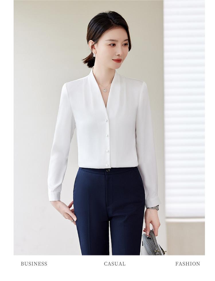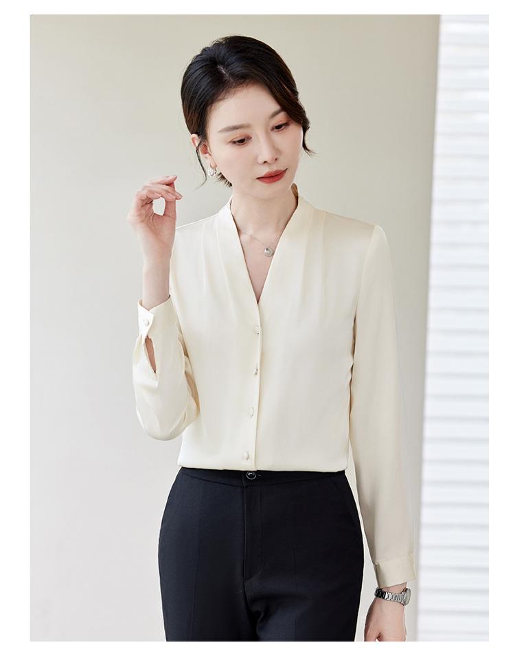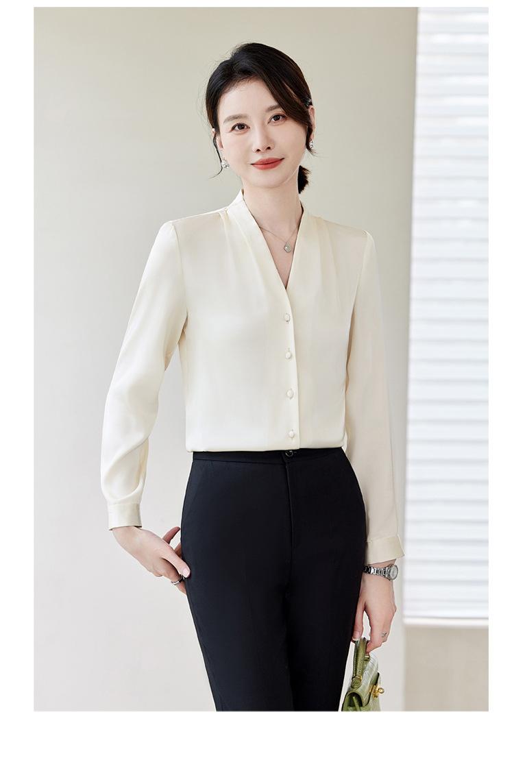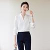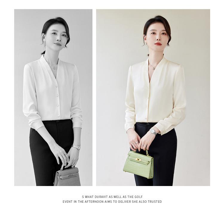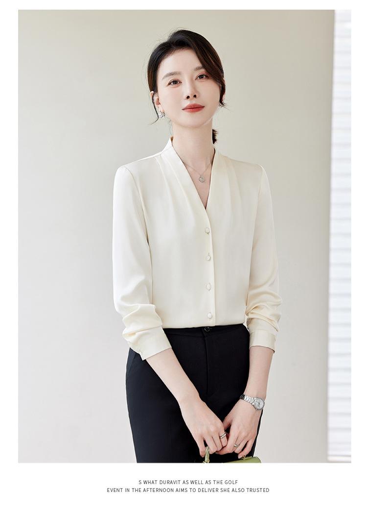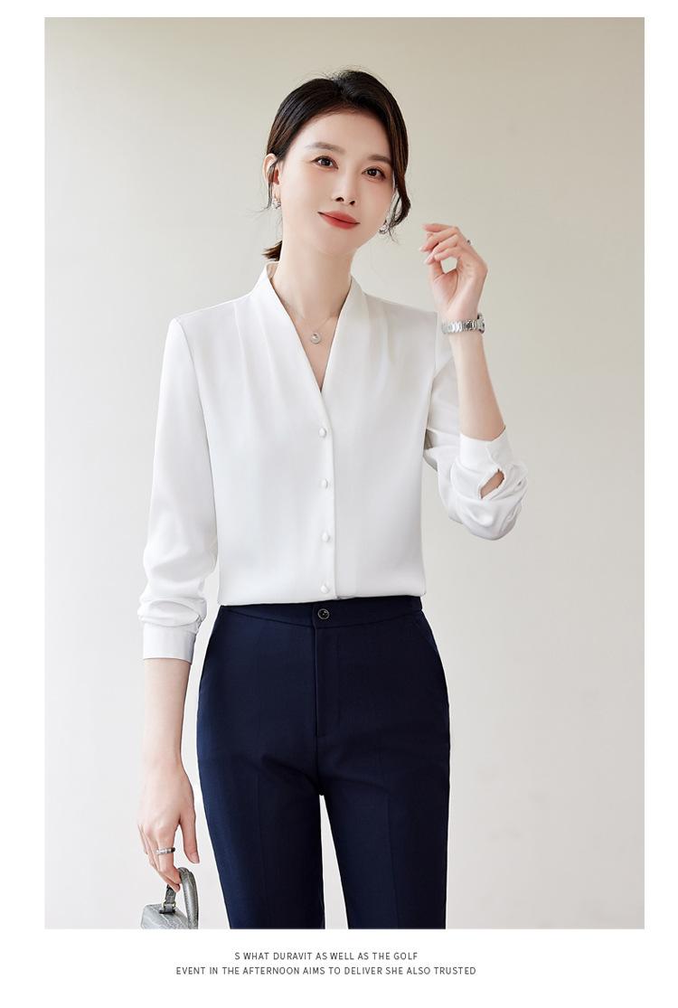 Venta al por mayor Otoño Nuevo Chifón Elegante Ropa de Trabajo Cuello en V con Camisa Cuello en V Entrevista Profesional Camisa Negra Mangas Largas para Mujer