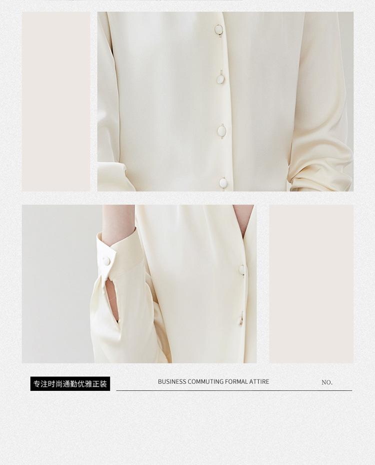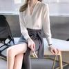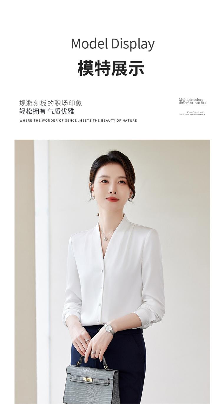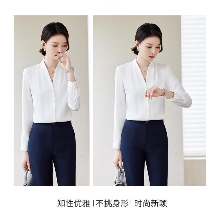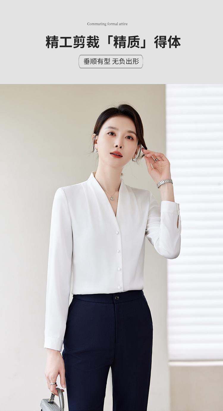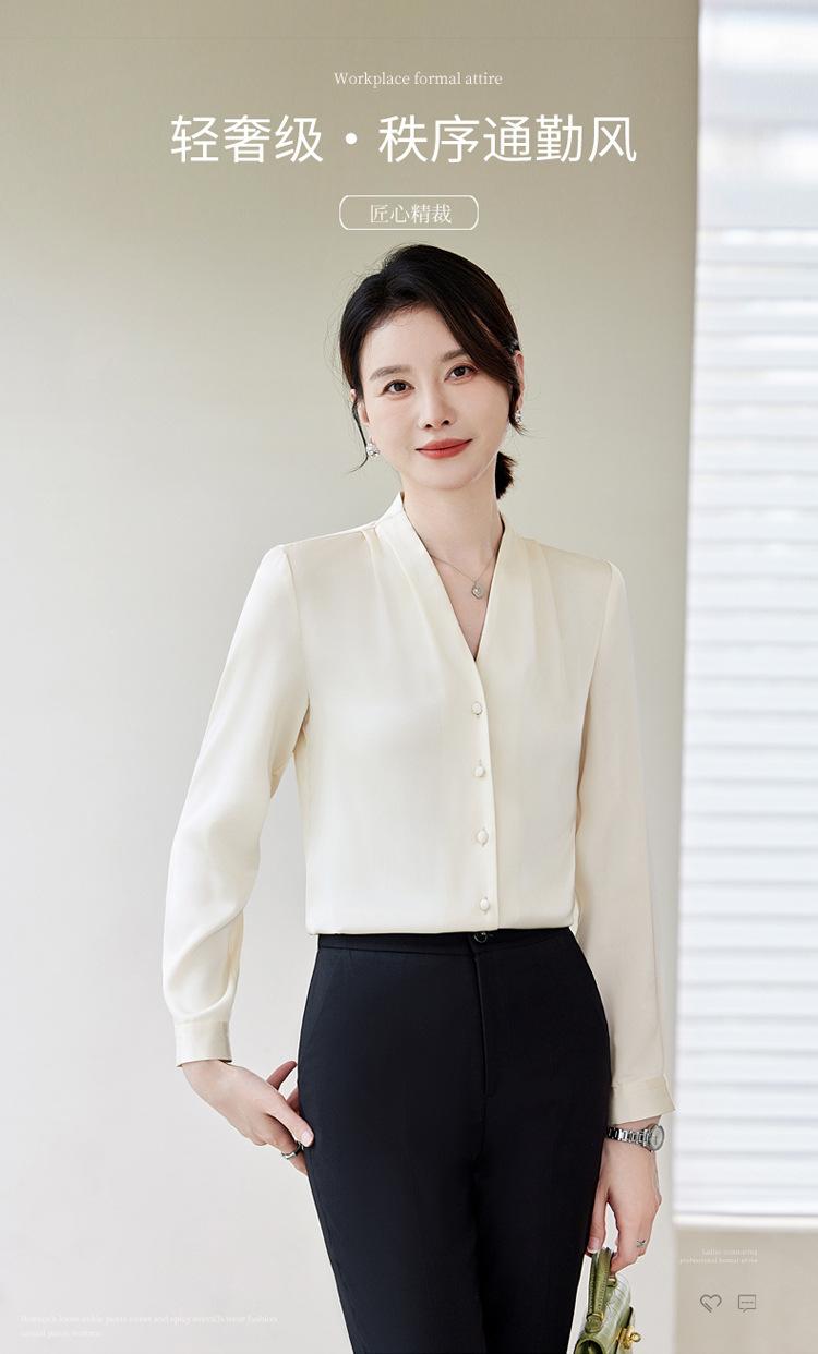 Venta al por mayor Otoño Nuevo Chifón Elegante Ropa de Trabajo Cuello en V con Camisa Cuello en V Entrevista Profesional Camisa Negra Mangas Largas para Mujer