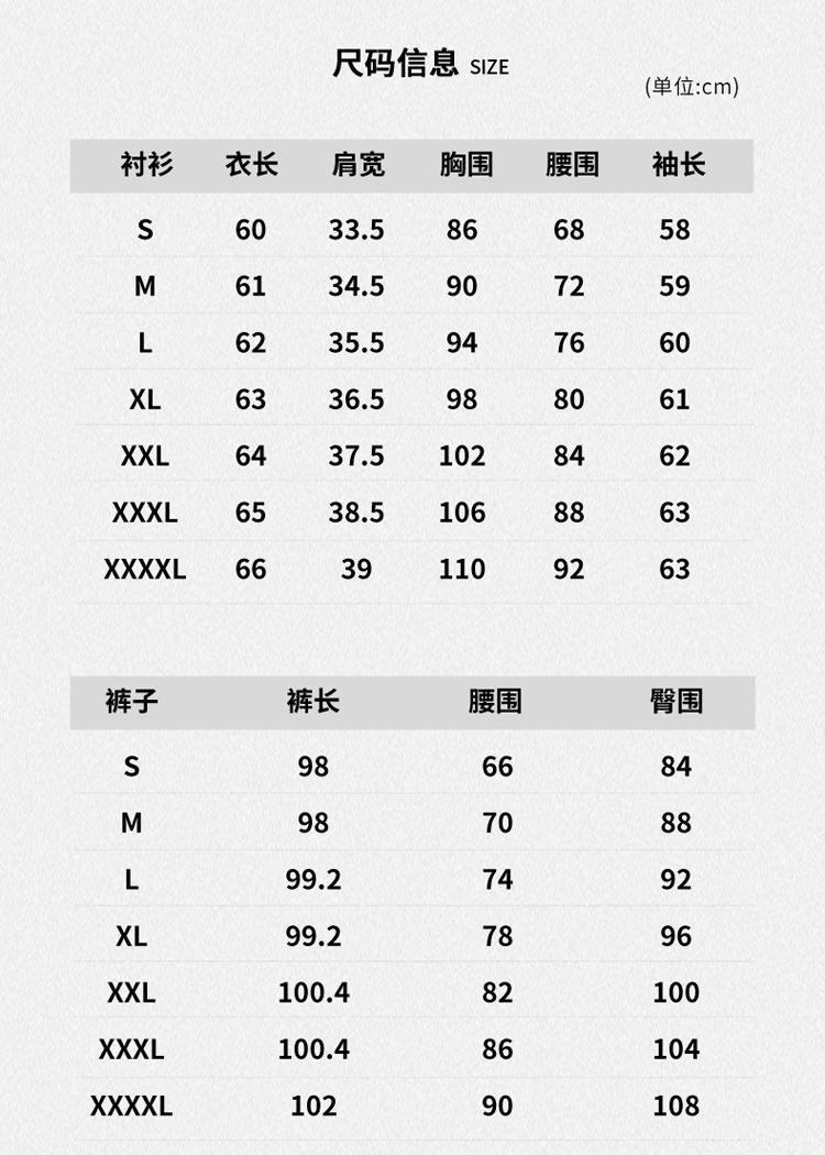 black one-piece shirt, white one-piece shirt, Apricot one-piece shirt, 1052 black pants, 1052 blue pants, 1052 gray pants