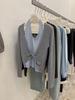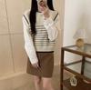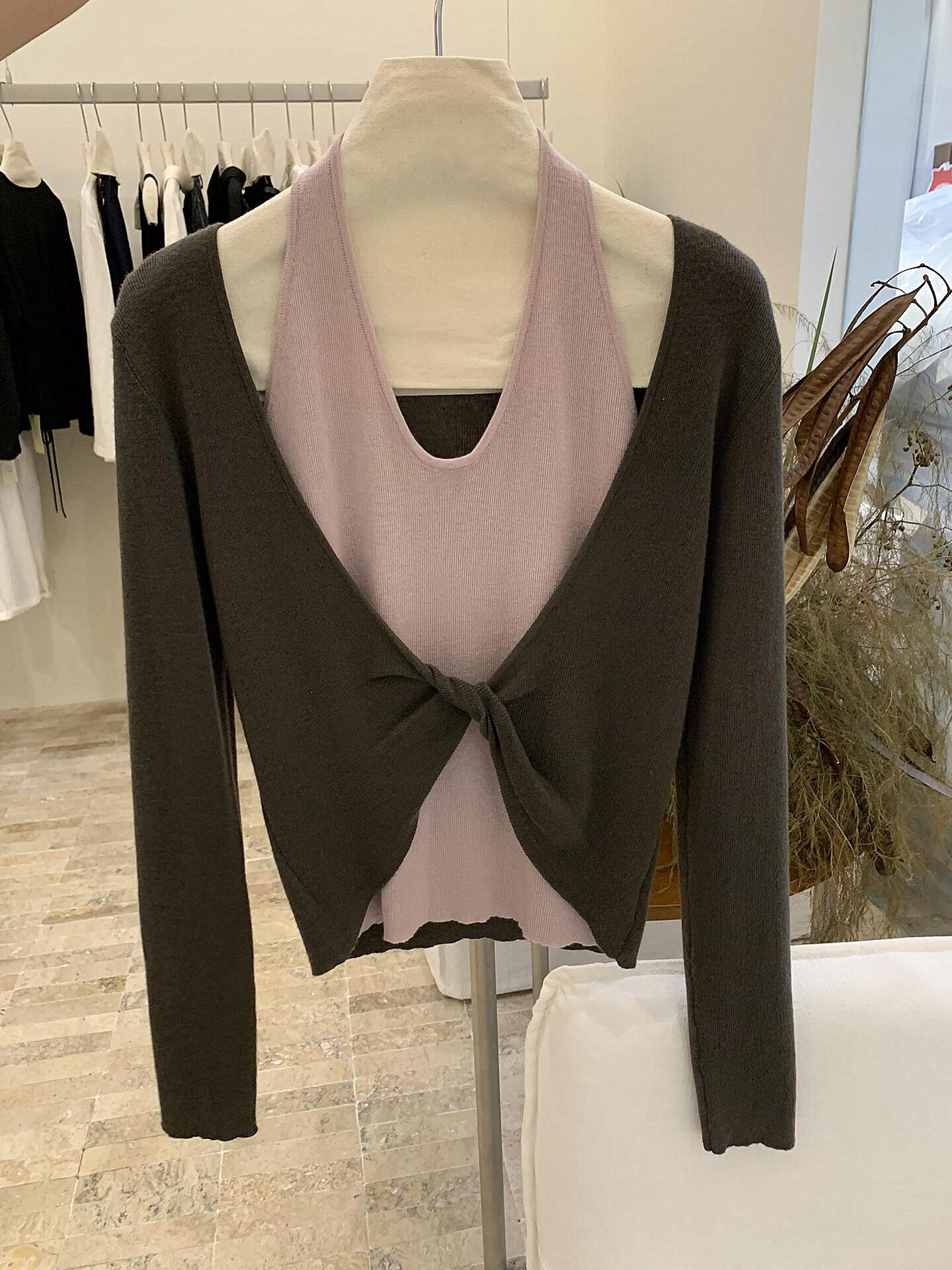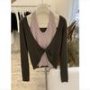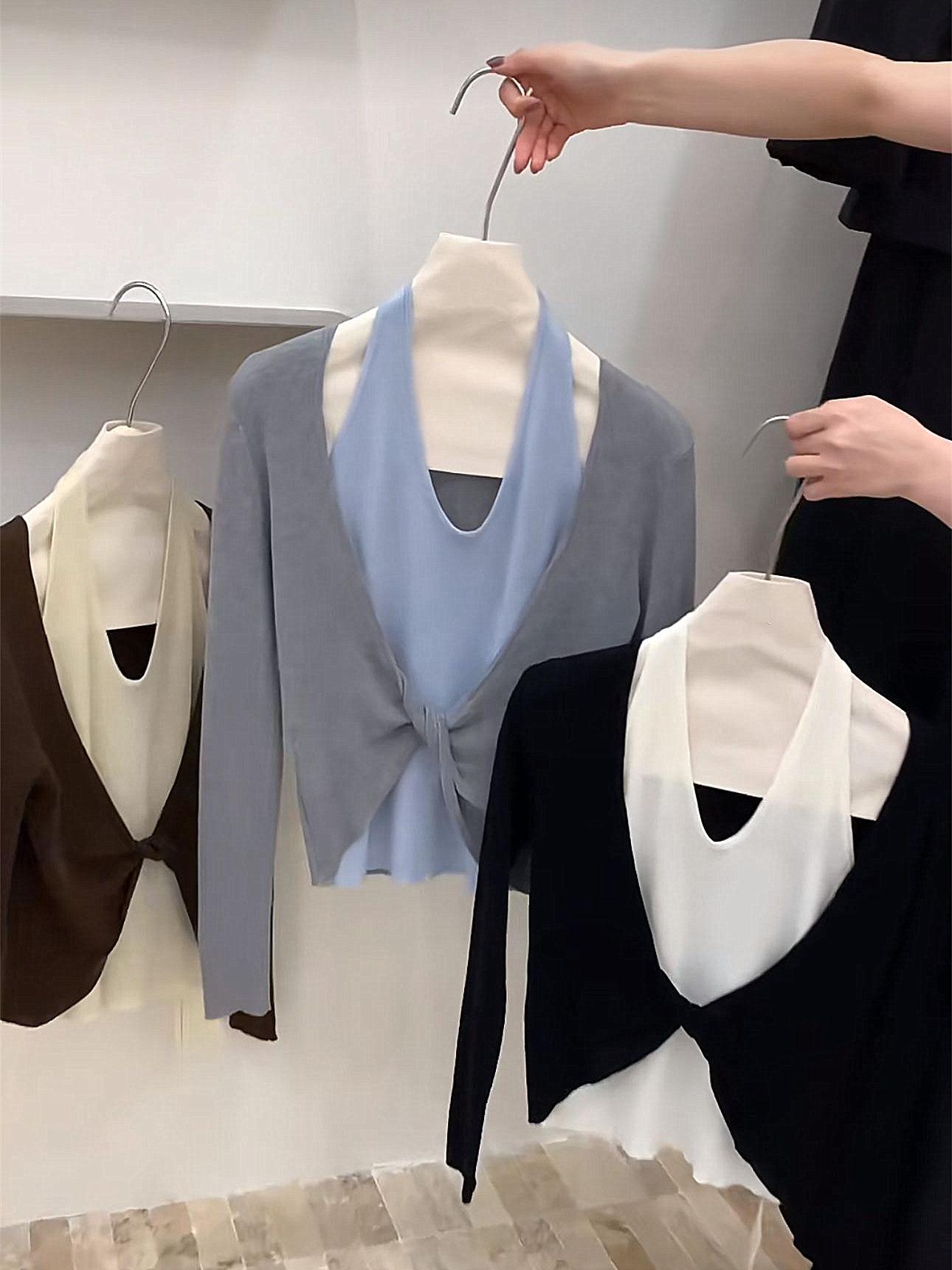 Tejido de punto para colgar del cuello de primavera temprana para mujer, estilo coreano chic de primavera temprana, único, nicho, contraste de color, top falso de dos piezas