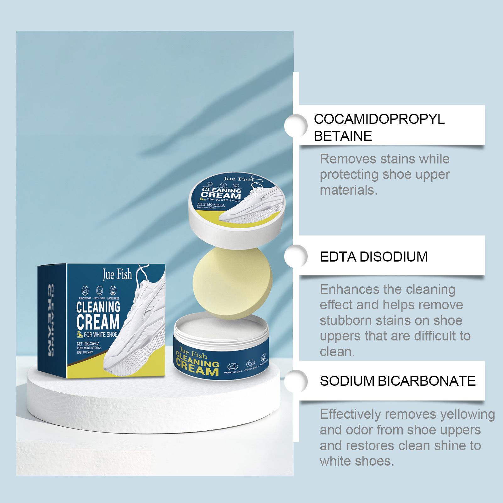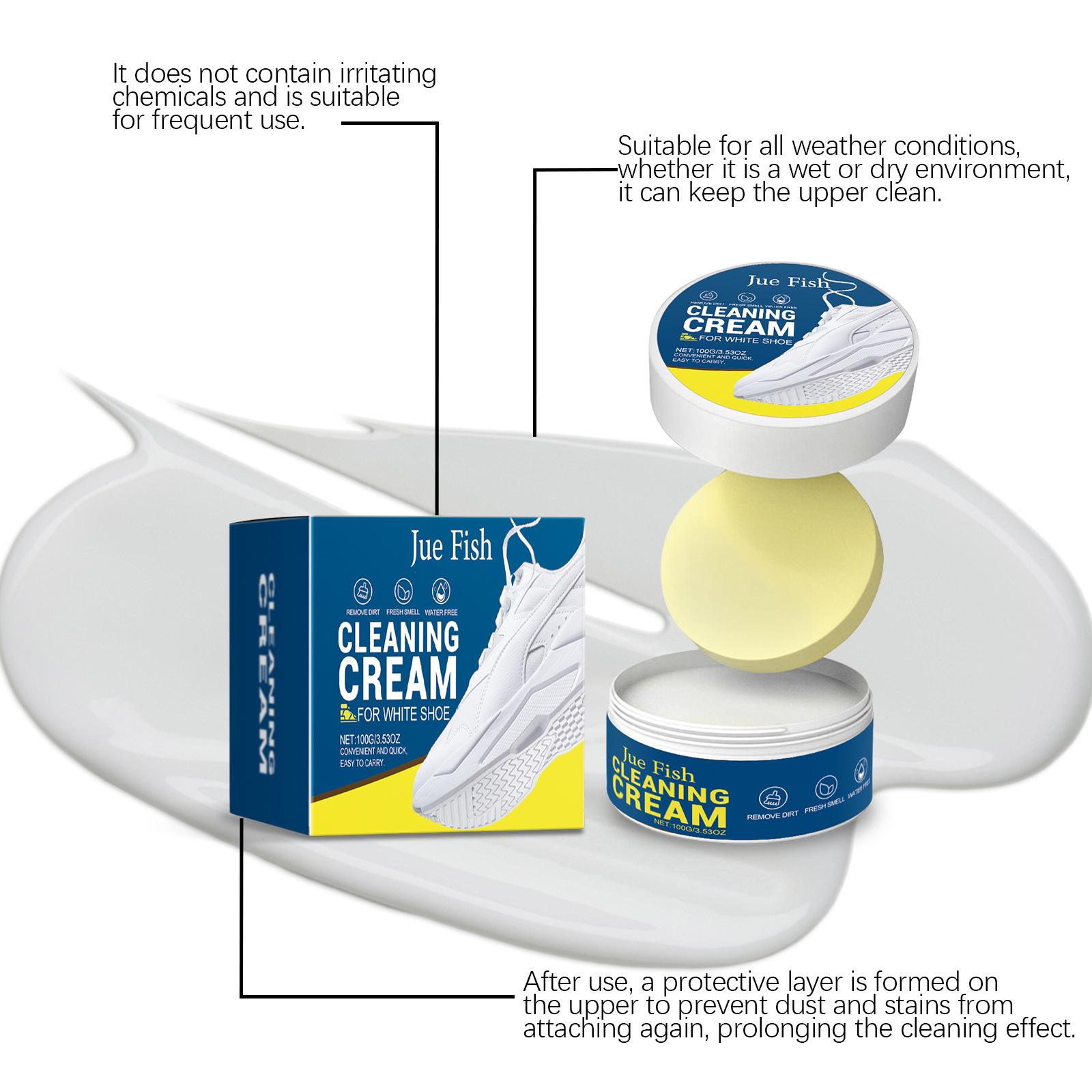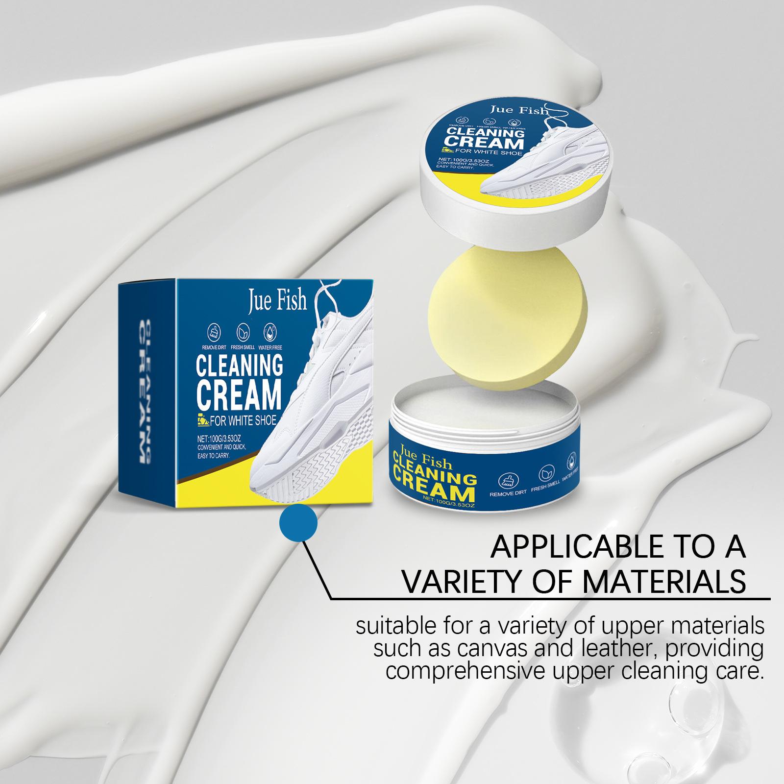 Crema limpiadora para zapatos blancos JUE FISH, para zapatillas de lona, sin agua, quitamanchas, multifuncional.