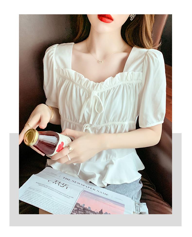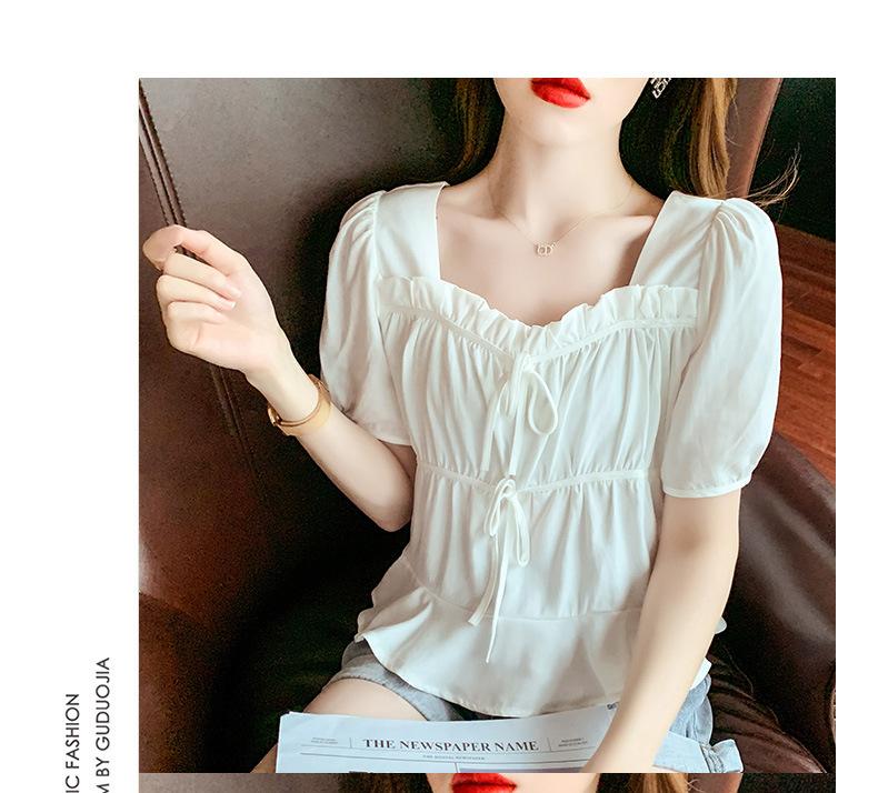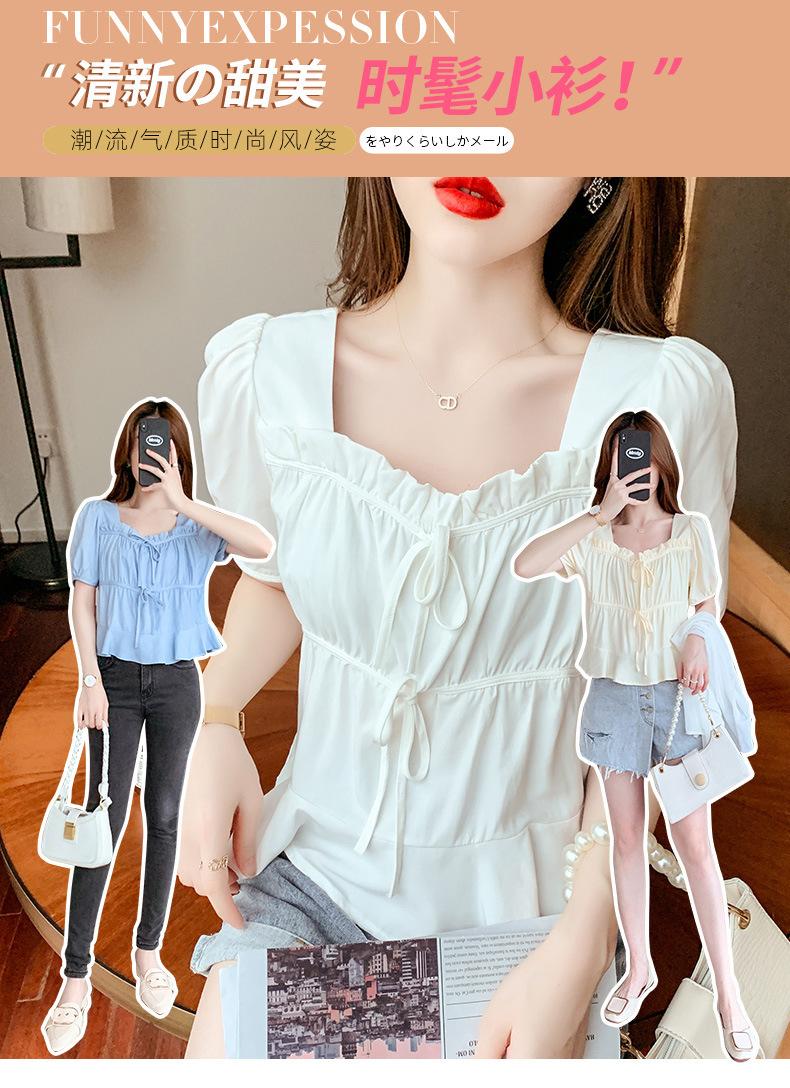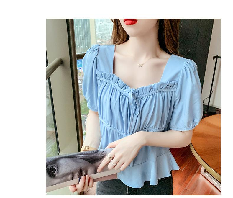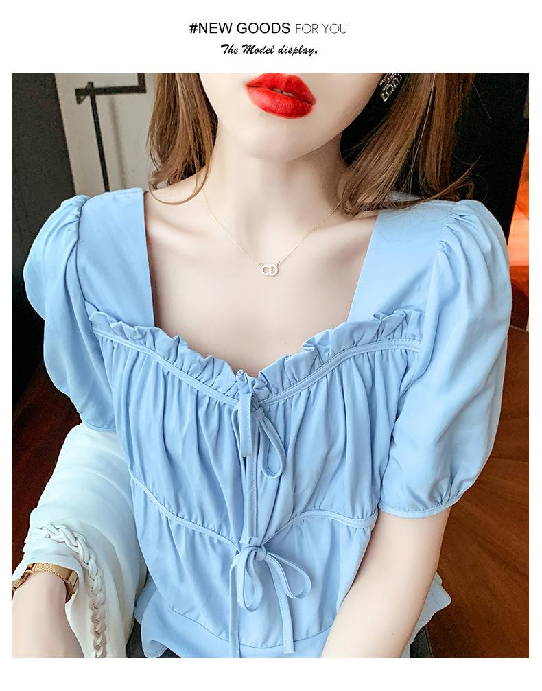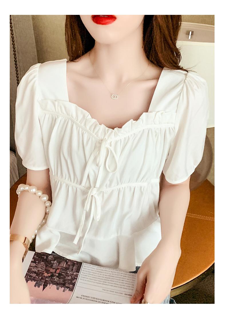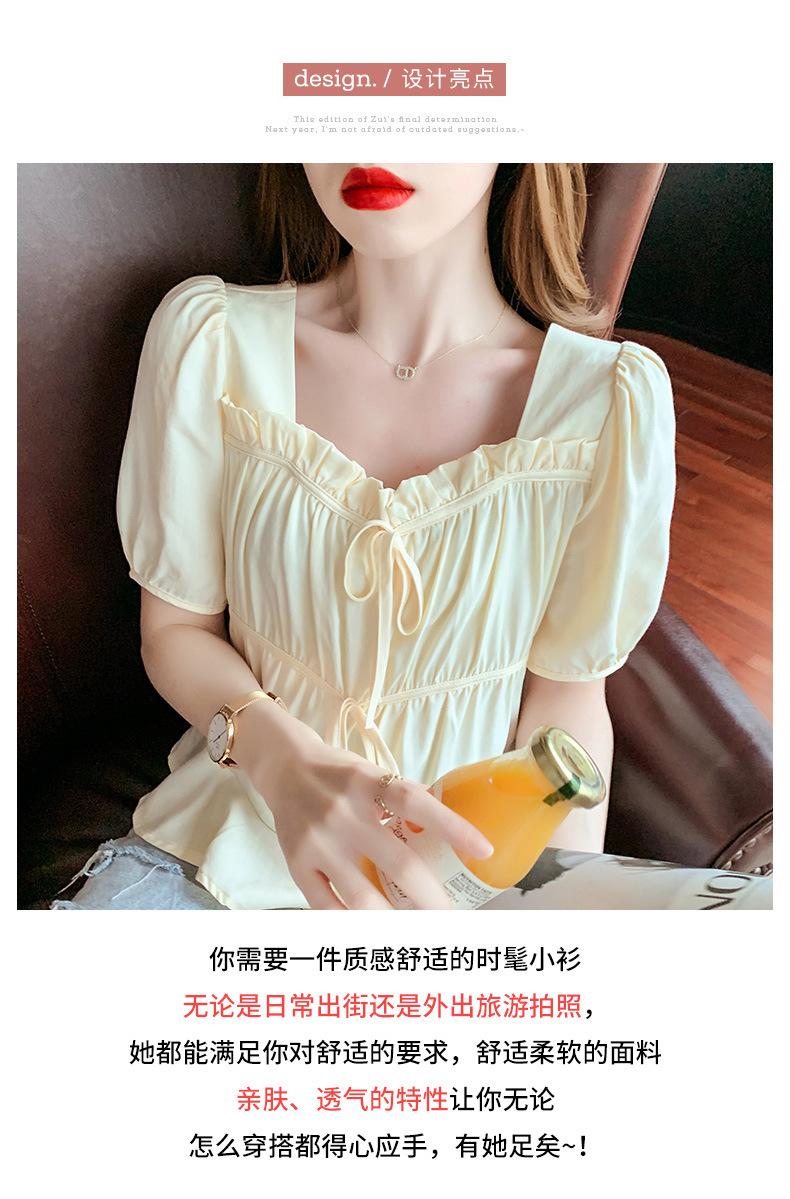 Camisa de gasa francesa con cuello cuadrado y mangas abullonadas de tiro real para mujer, diseño de verano de manga corta, camisa de gasa de cintura alta con tendencia