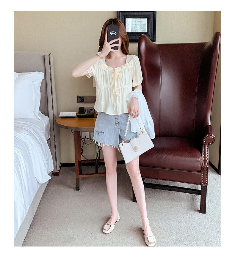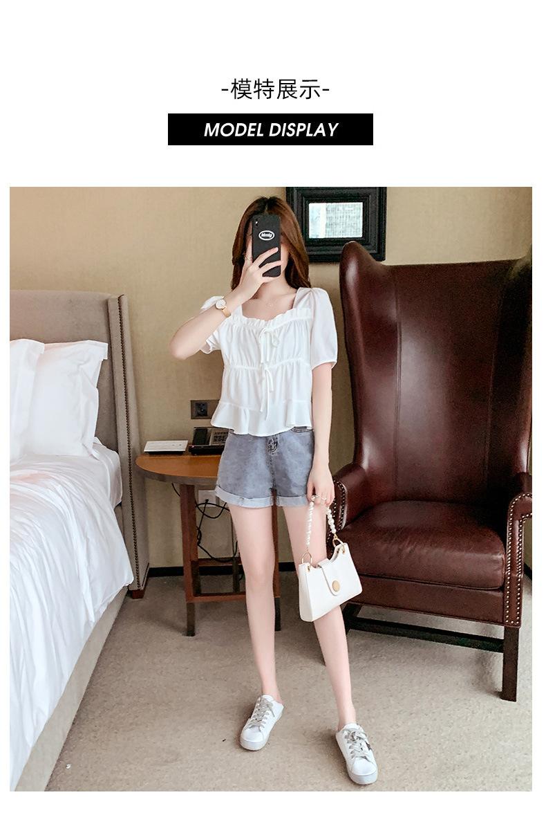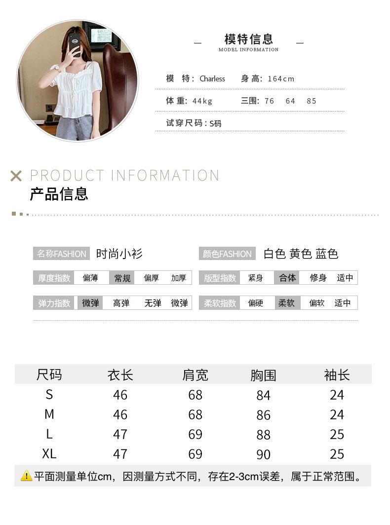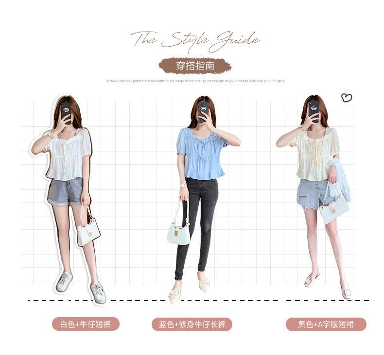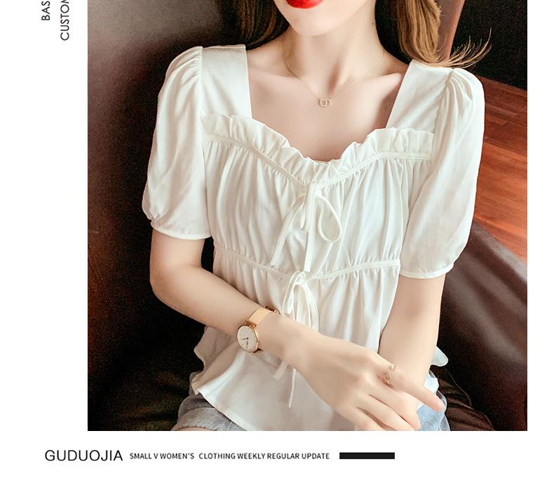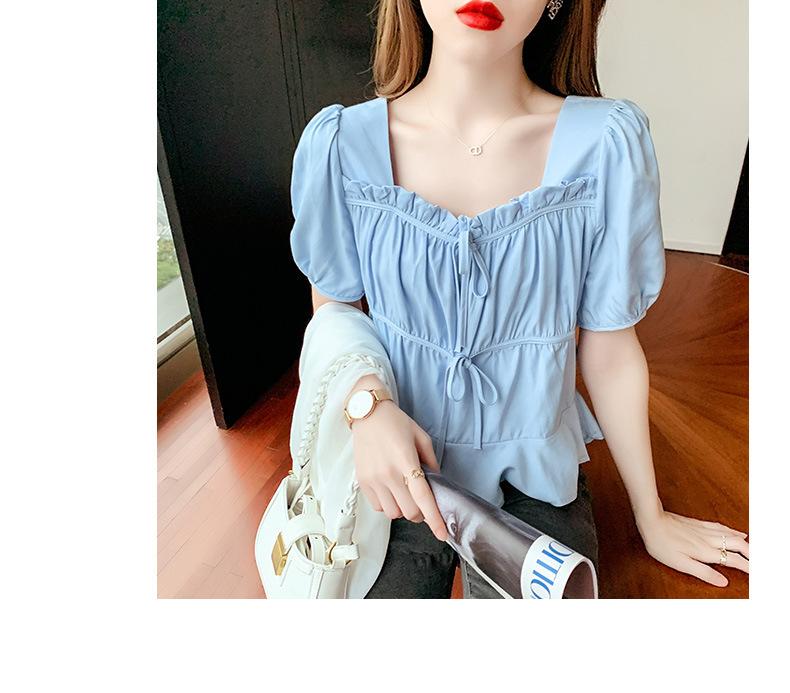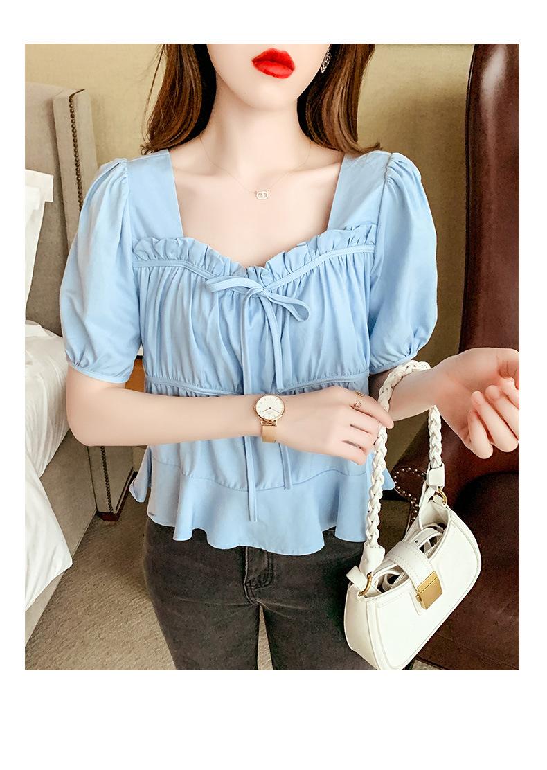 Camisa de gasa francesa con cuello cuadrado y mangas abullonadas de tiro real para mujer, diseño de verano de manga corta, camisa de gasa de cintura alta con tendencia