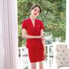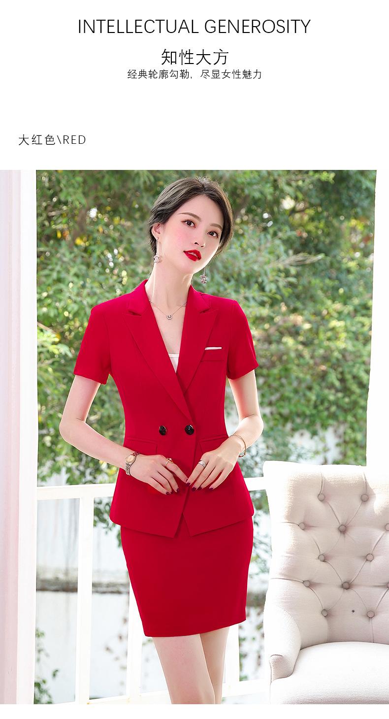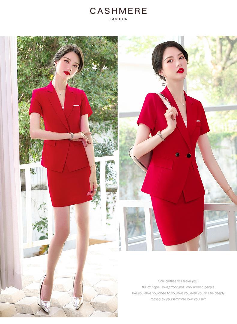 Traje de verano de manga corta grande rojo pequeño con cuello abrigo falda de mujer falda de moda profesional traje de verano de dos piezas para viajeros